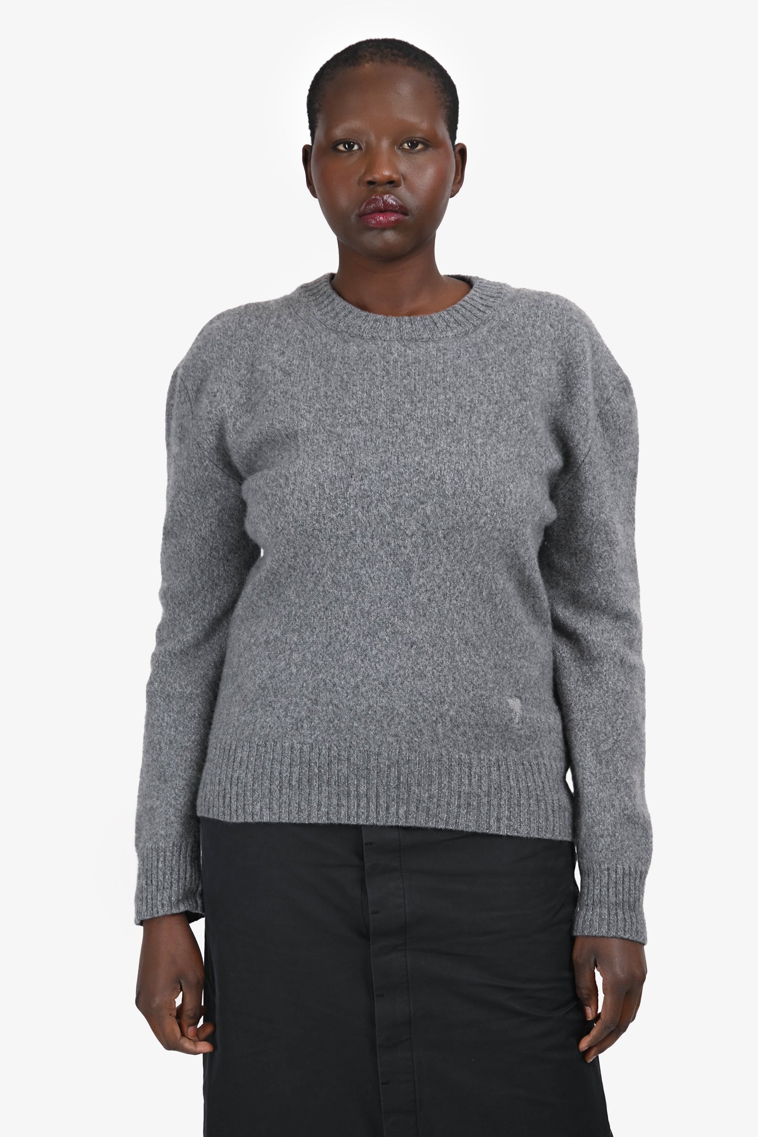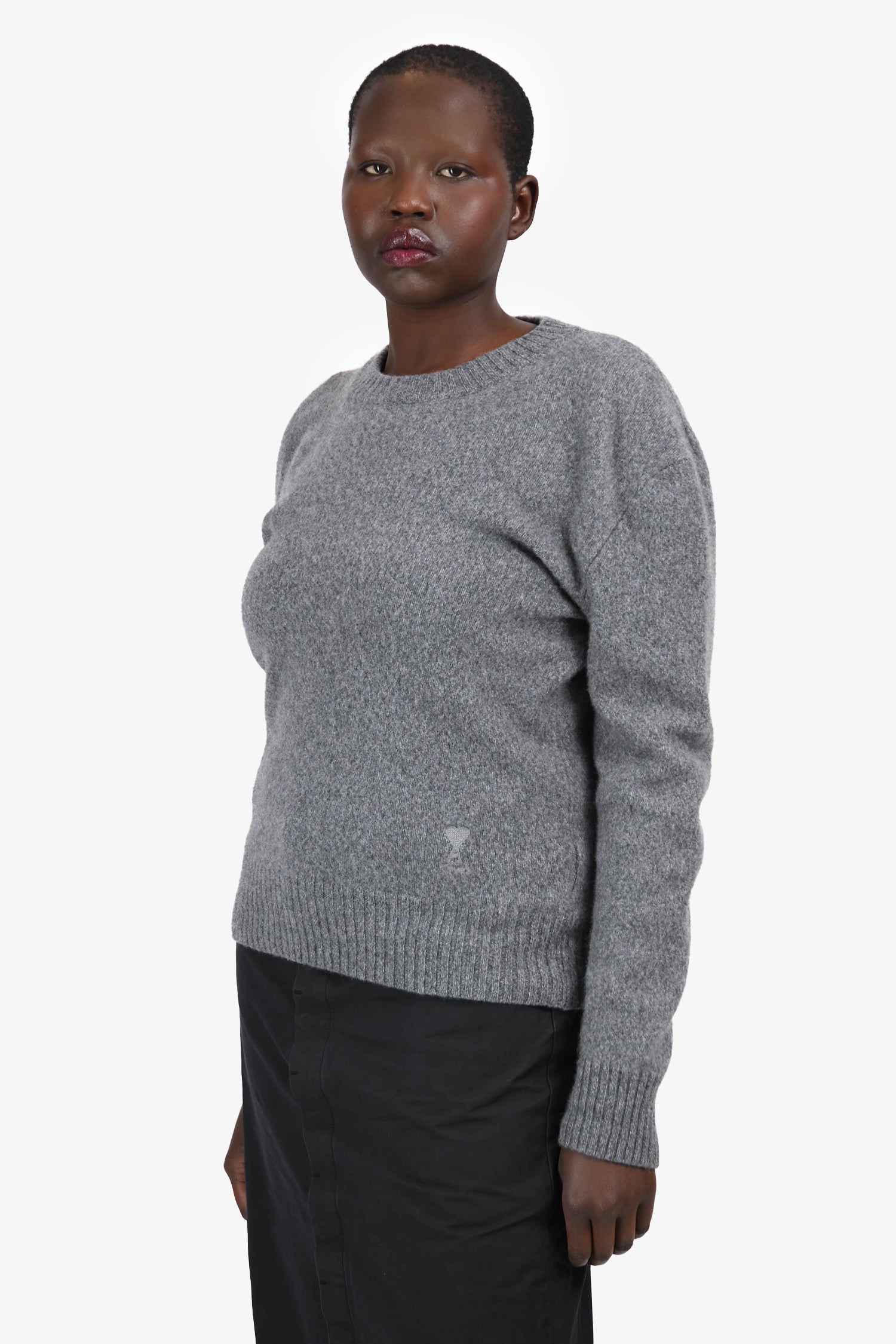 Ami Grey Cashmere/Wool Logo Sweater Size XL