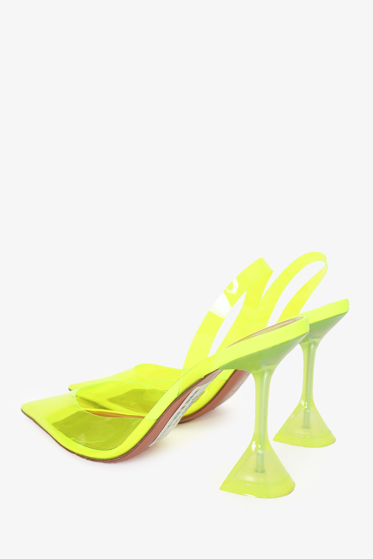 Refresh availabilityAmina Muaddi Neon Yellow Holli Glass PVC Slingback Pumps. Pointed toe. Tonal stitching.
