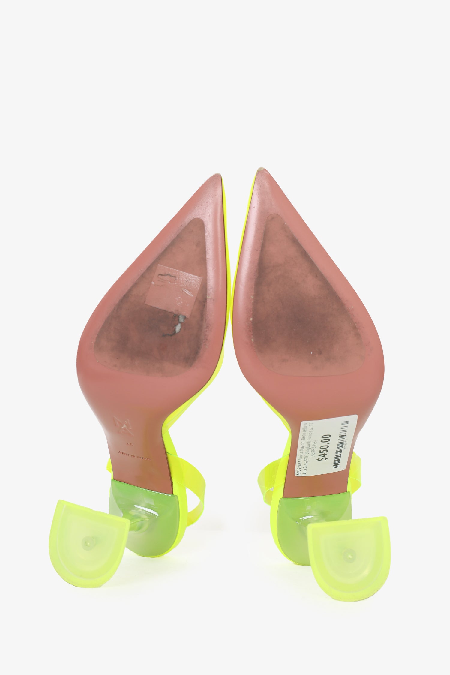 Amina Muaddi Neon Yellow Holli Glass PVC Slingback Pumps Size 37
