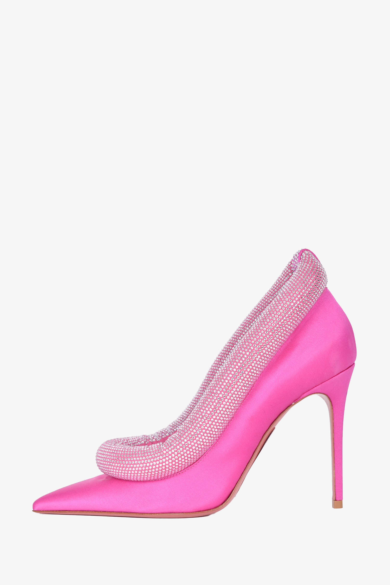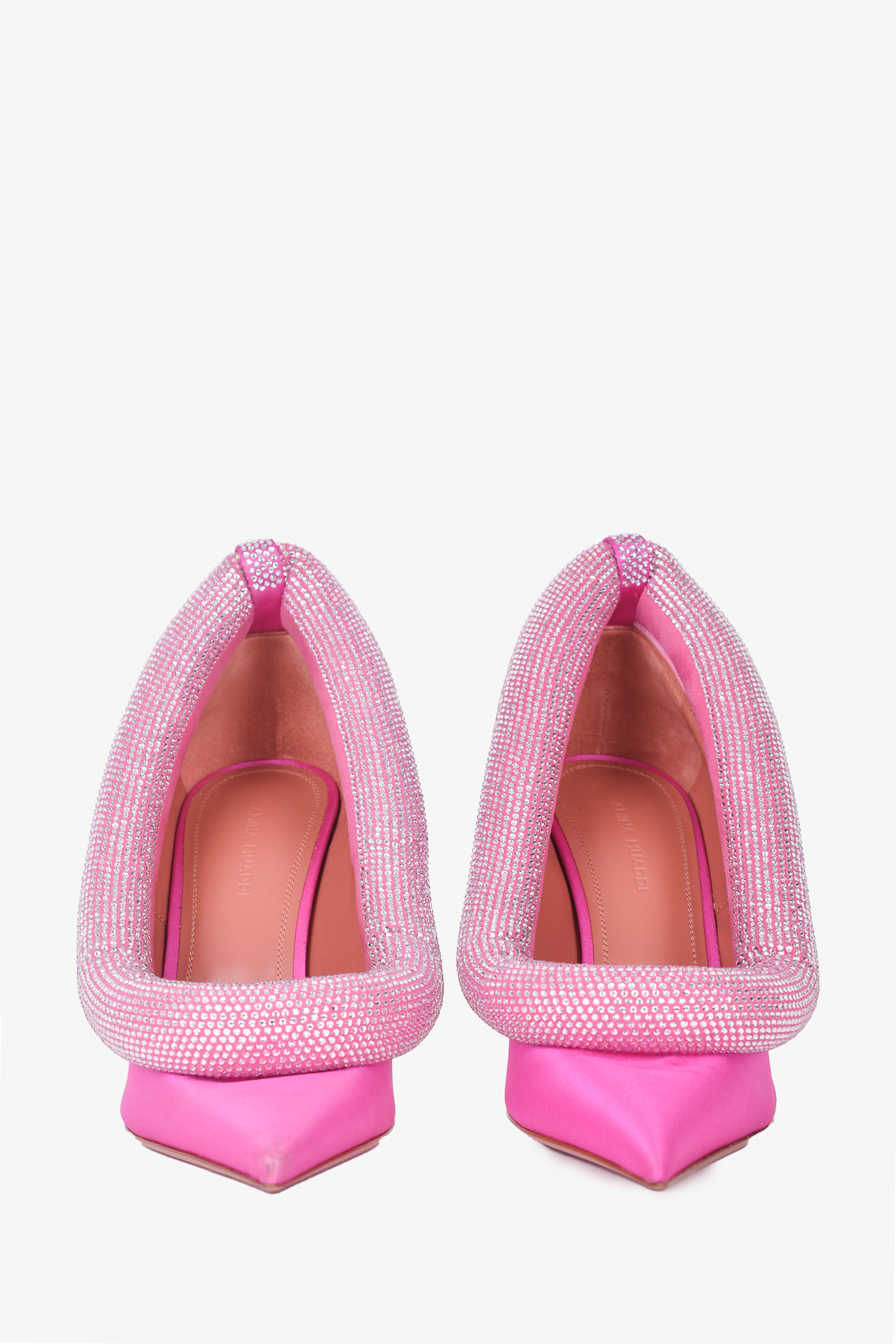 Refresh availabilityAmina Muaddi Pink Yoon Crystal Padded Satin Pumps. Stiletto heels. Pointed Toe. Tonal stitching.