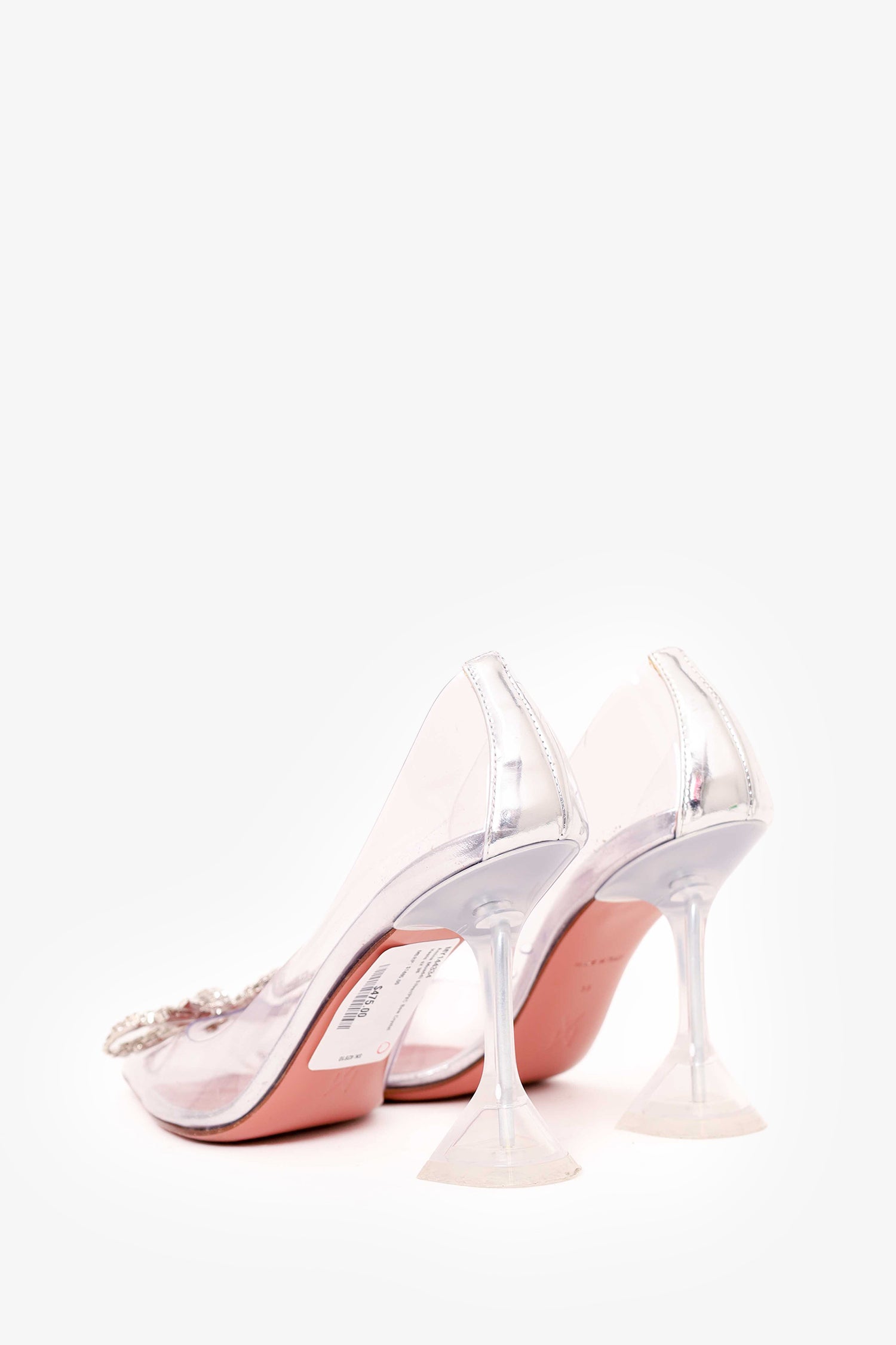 Amina Muaddi Silver/PVC Bow Crystal Heels Size 38