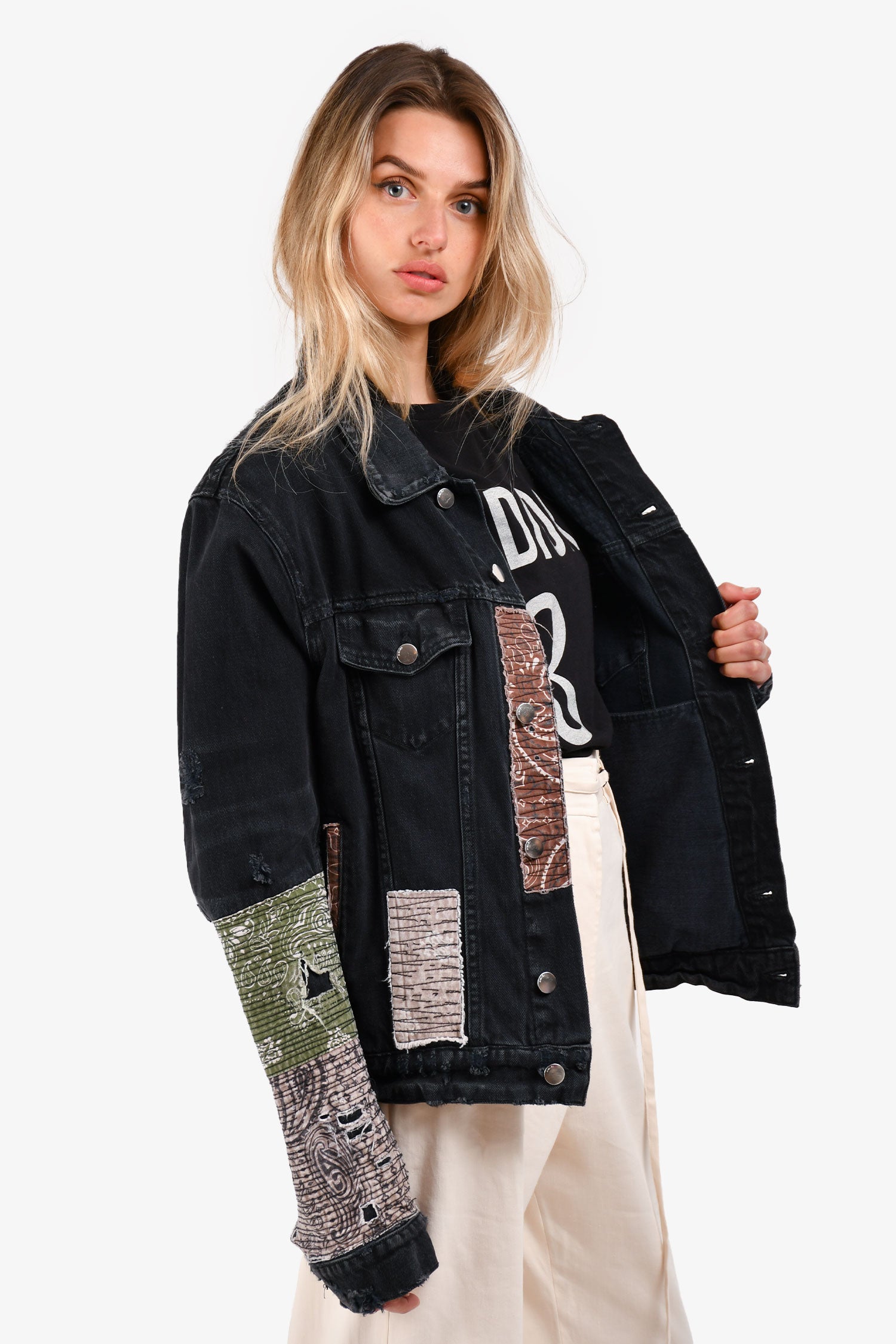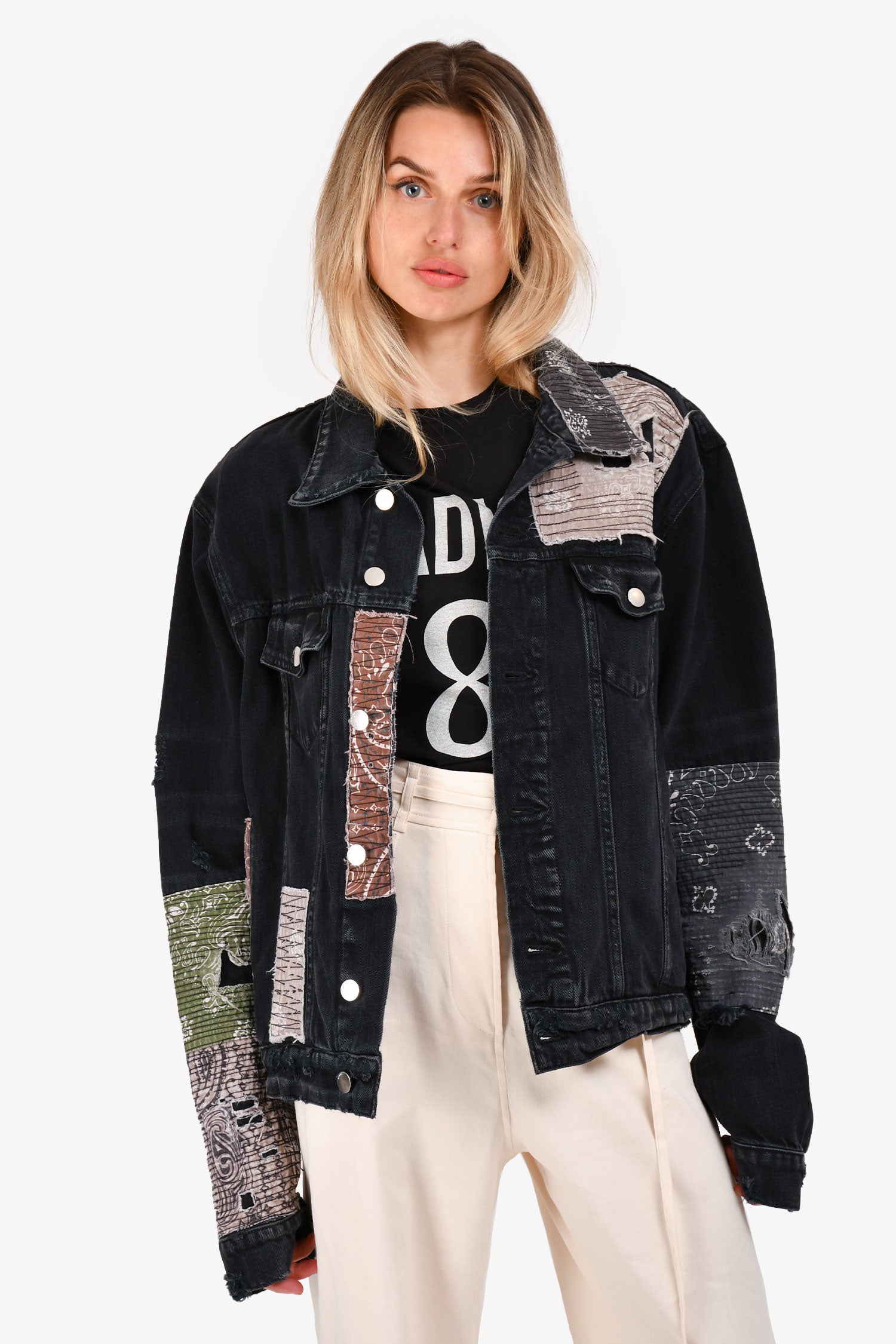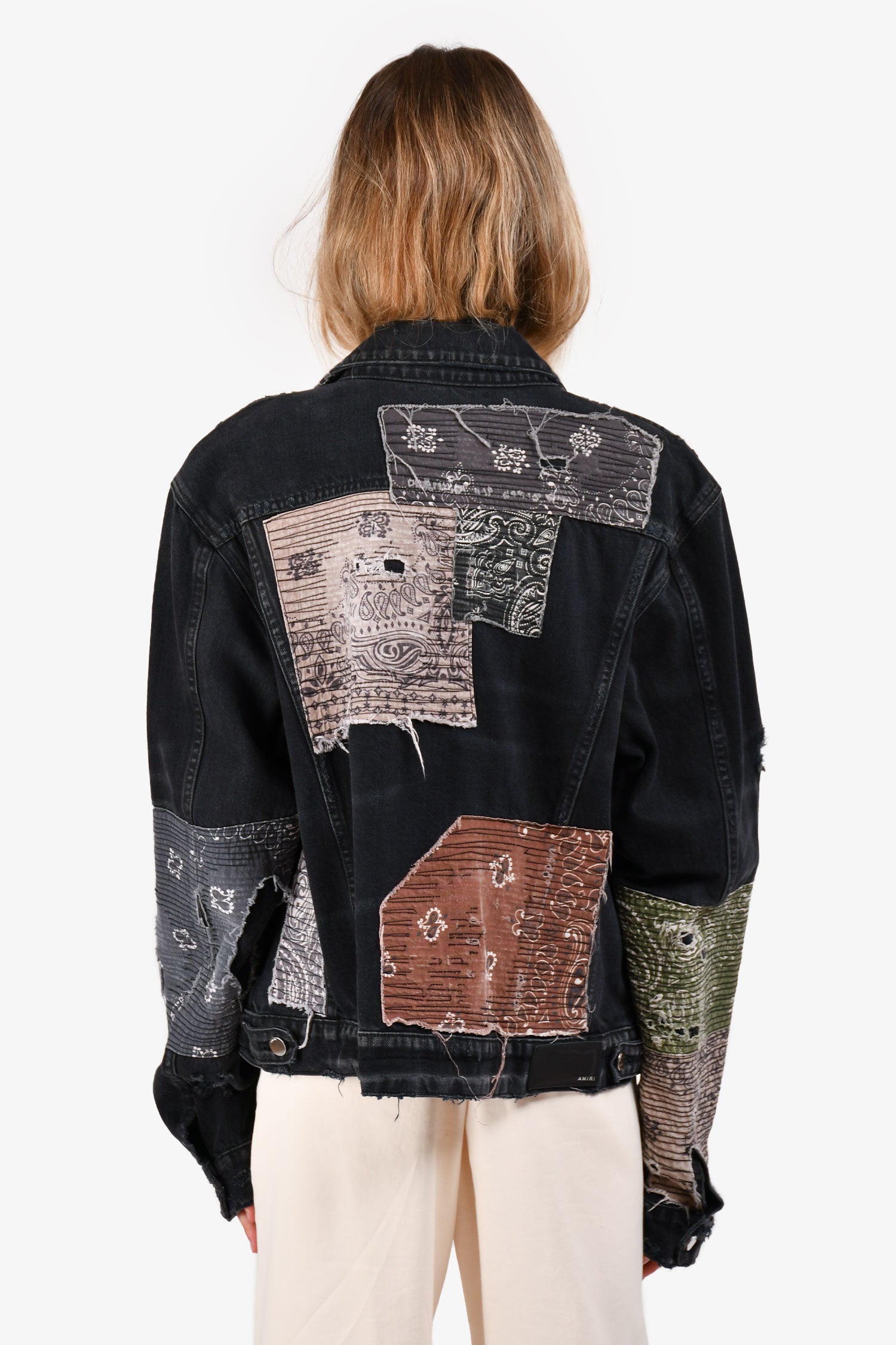Amiri Black Denim Bandana Patch Jacket Size XL