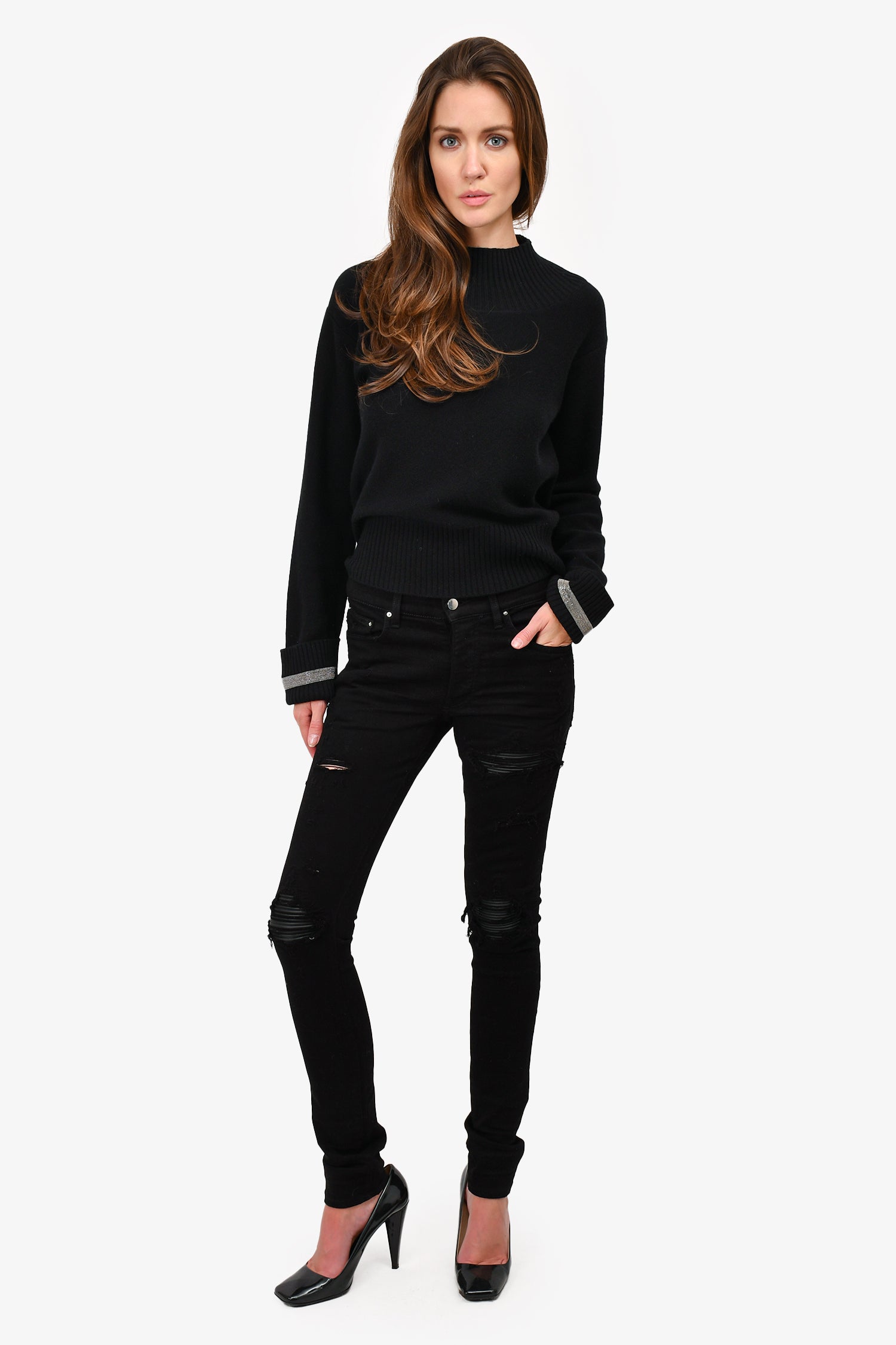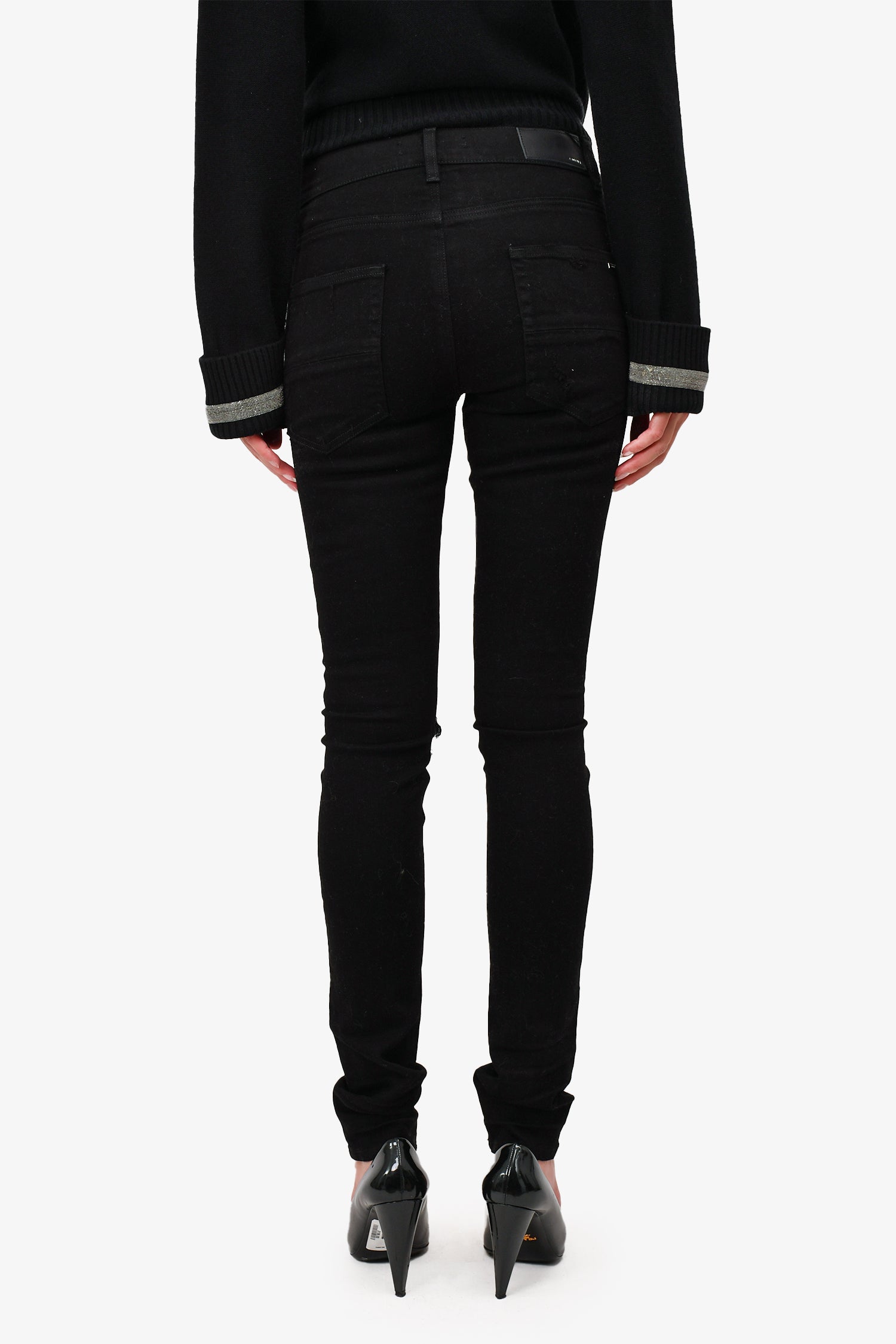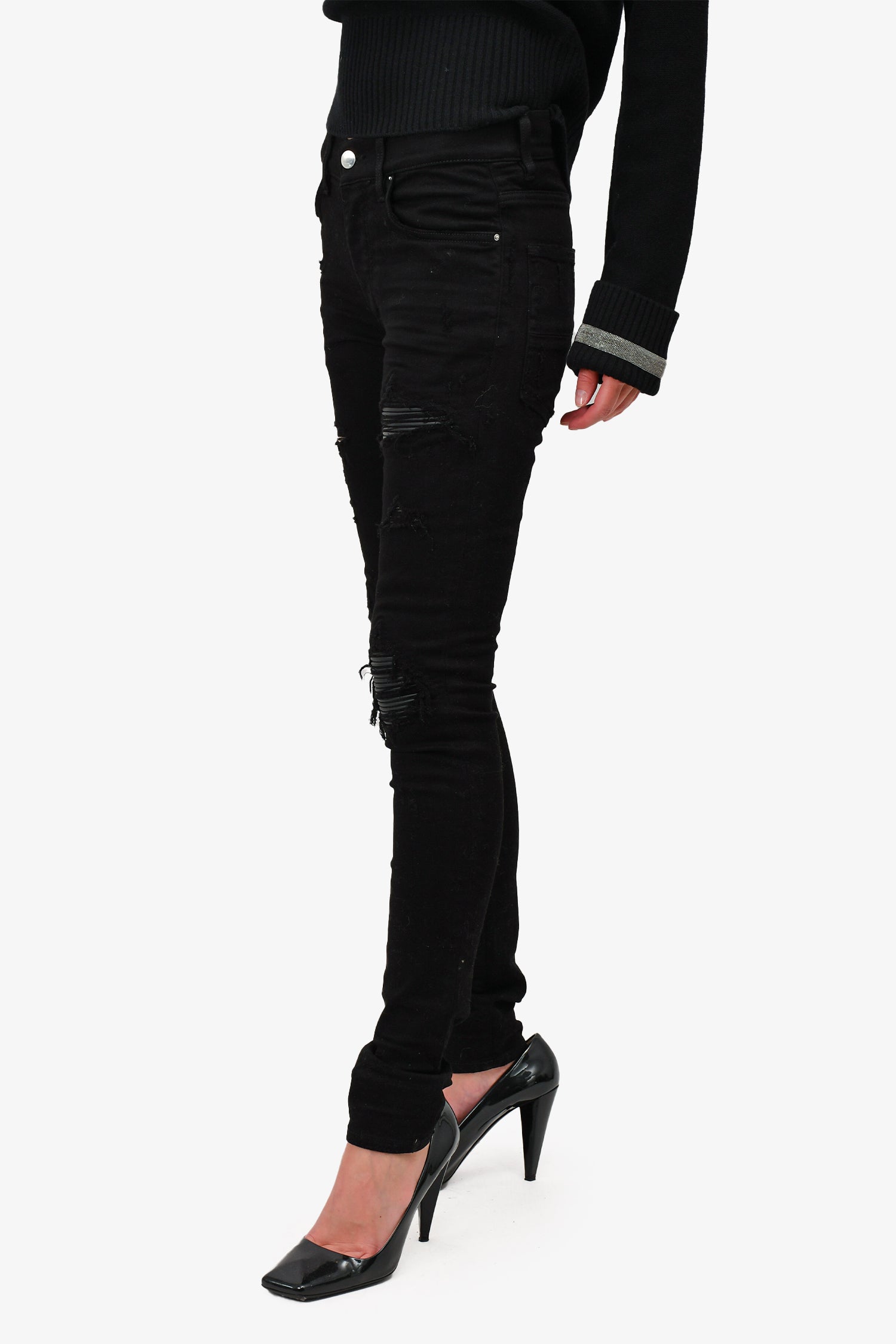 Amiri Black Denim Distressed Leather Patch Skinny Jeans Size 29 Mens