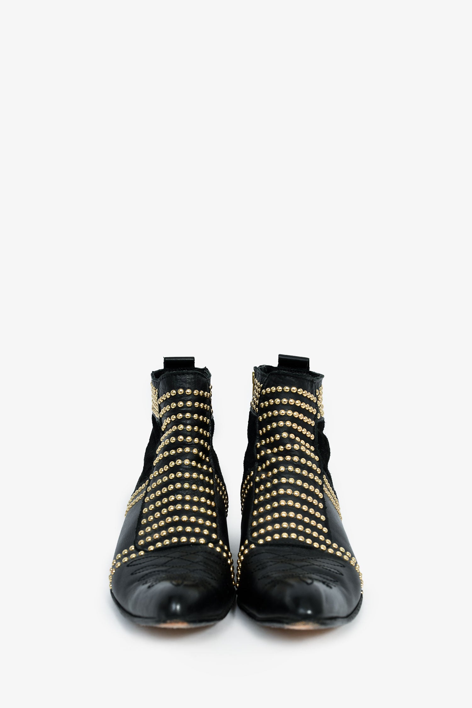 Anine Bing Black Leather Studded Western Ankle Boots Size 37