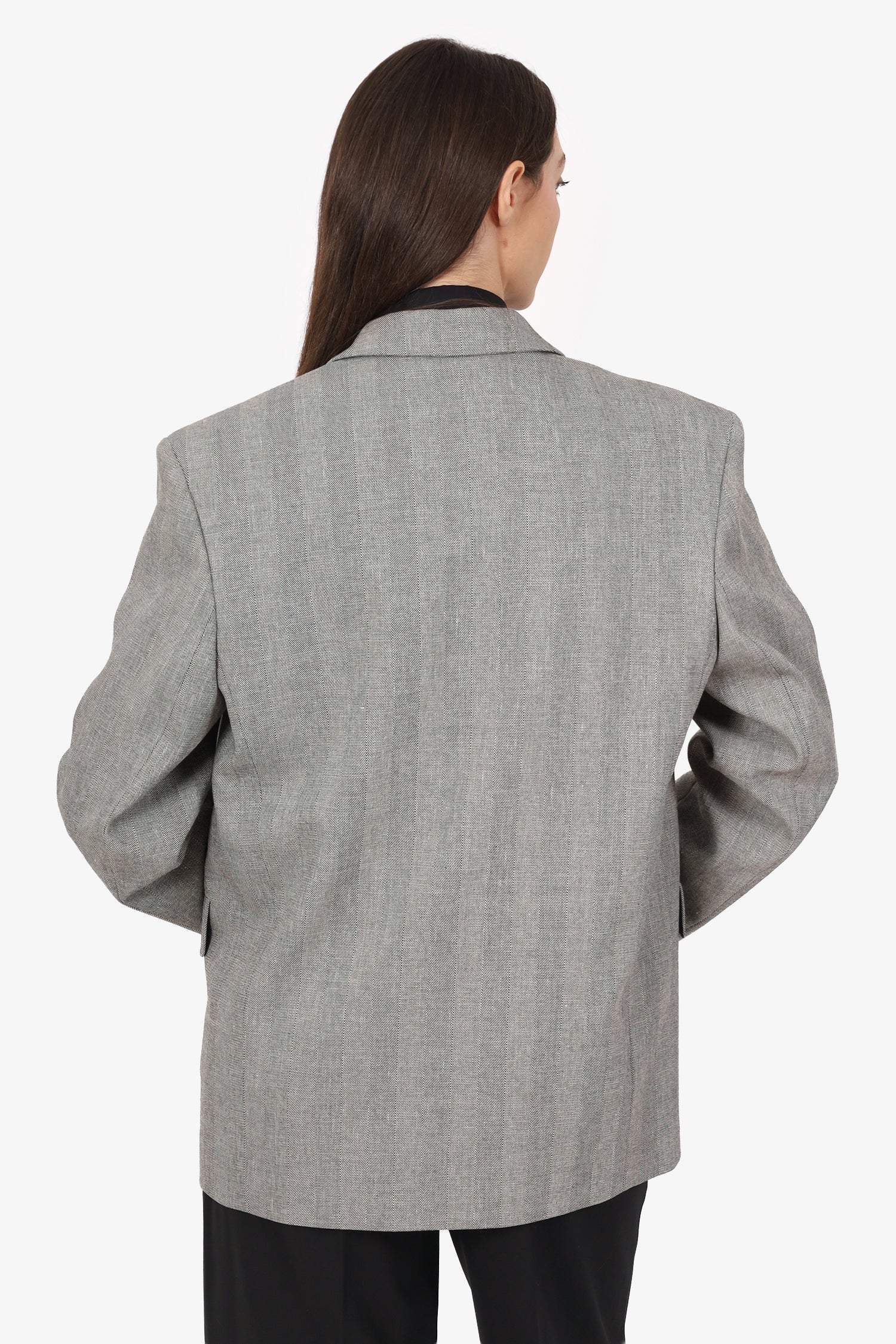 Anine Bing Black/White Herringbone Blazer Size M