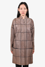 Annette Gortz Tan Lambskin Leather Check Detail Coat Size S