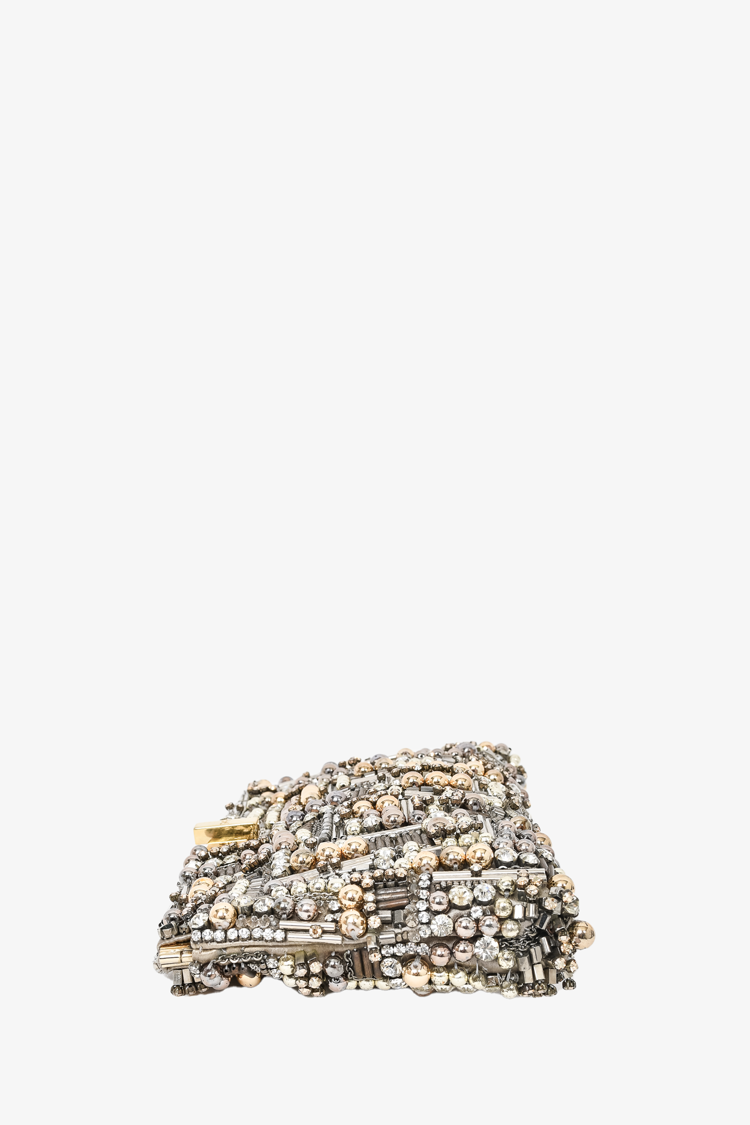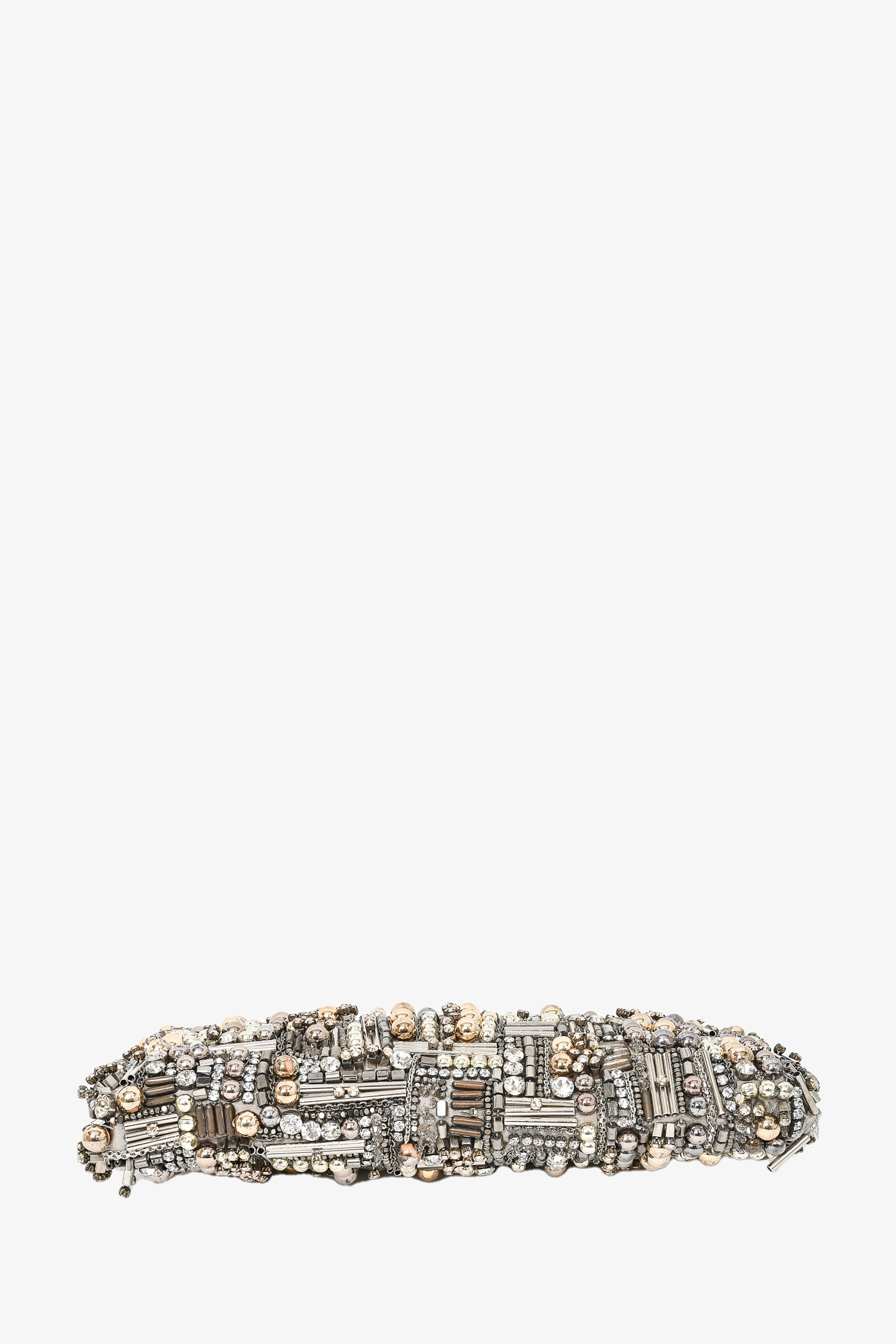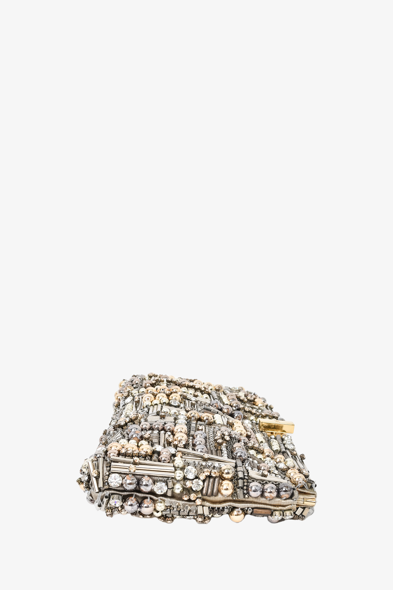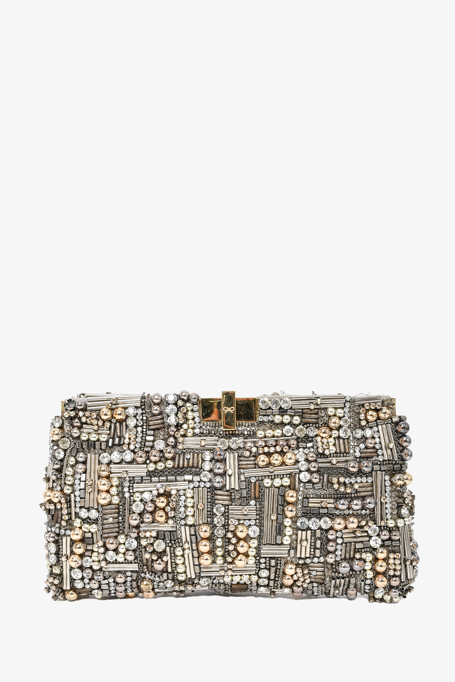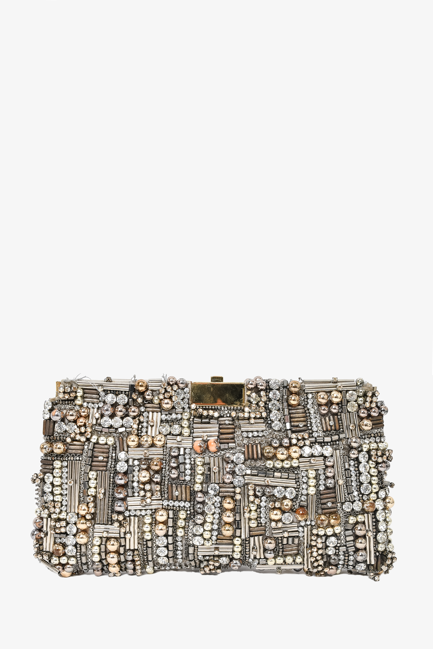 Refresh availabilityAnya Hindmarch Beaded Clutch. Twist top closure. One interior slip pocket. Gold-toned hardware. Tonal stitching.