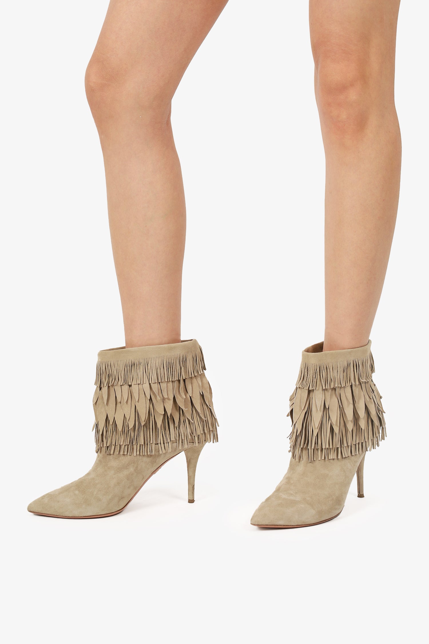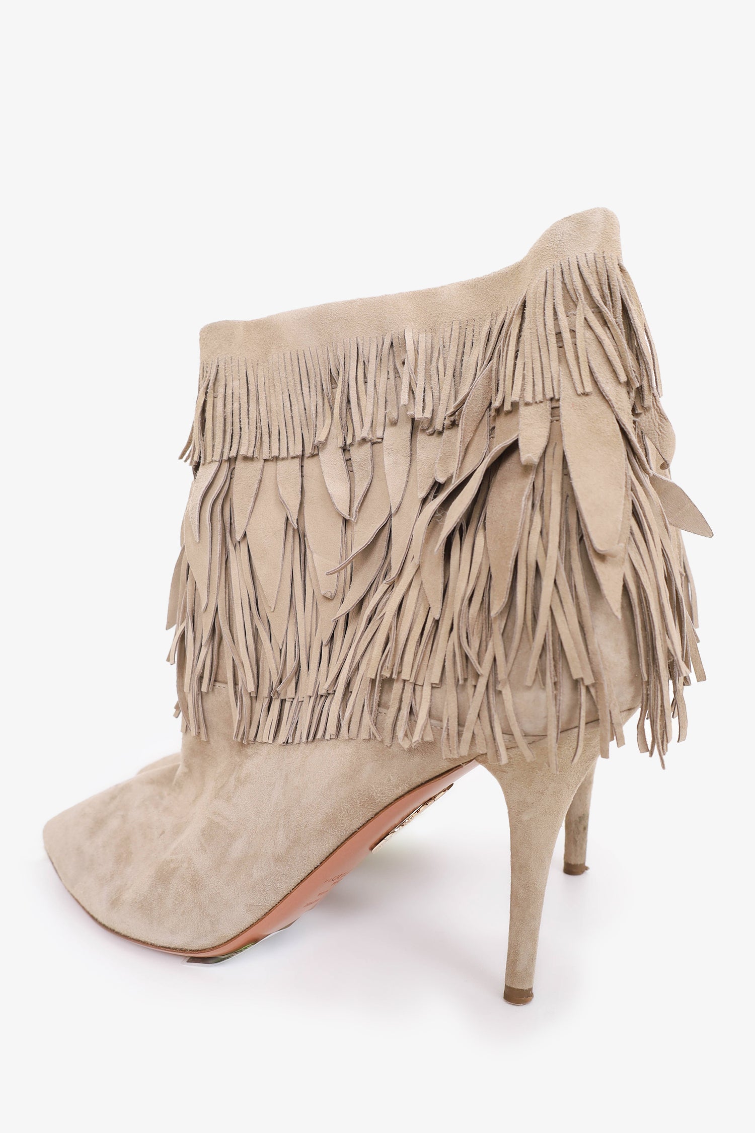Aquazurra Taupe Suede Fringe Ankle Boots Size 40