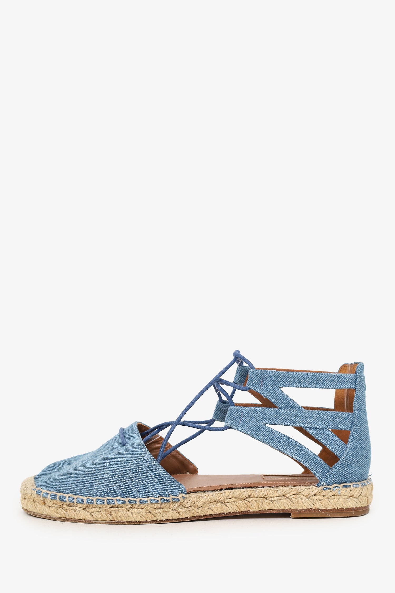 Aquazzura Blue Denim Cutout Tie Espadrilles Size 38