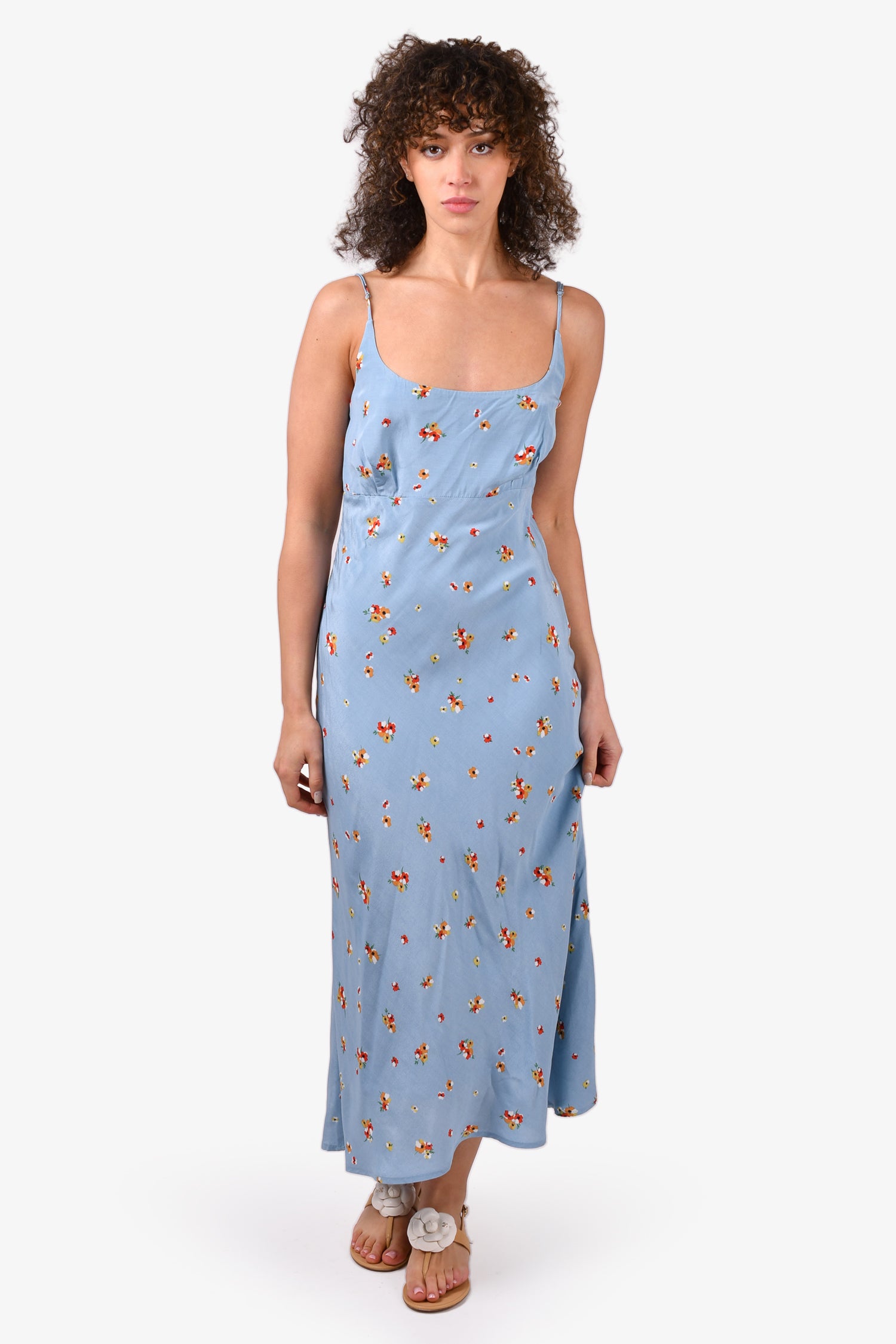 Refresh availabilityASTR The Label Blue/Yellow Floral Sleeveless Maxi Dress. Side zip and hook closure. Lined. Adjustable straps. Tonal stitching.