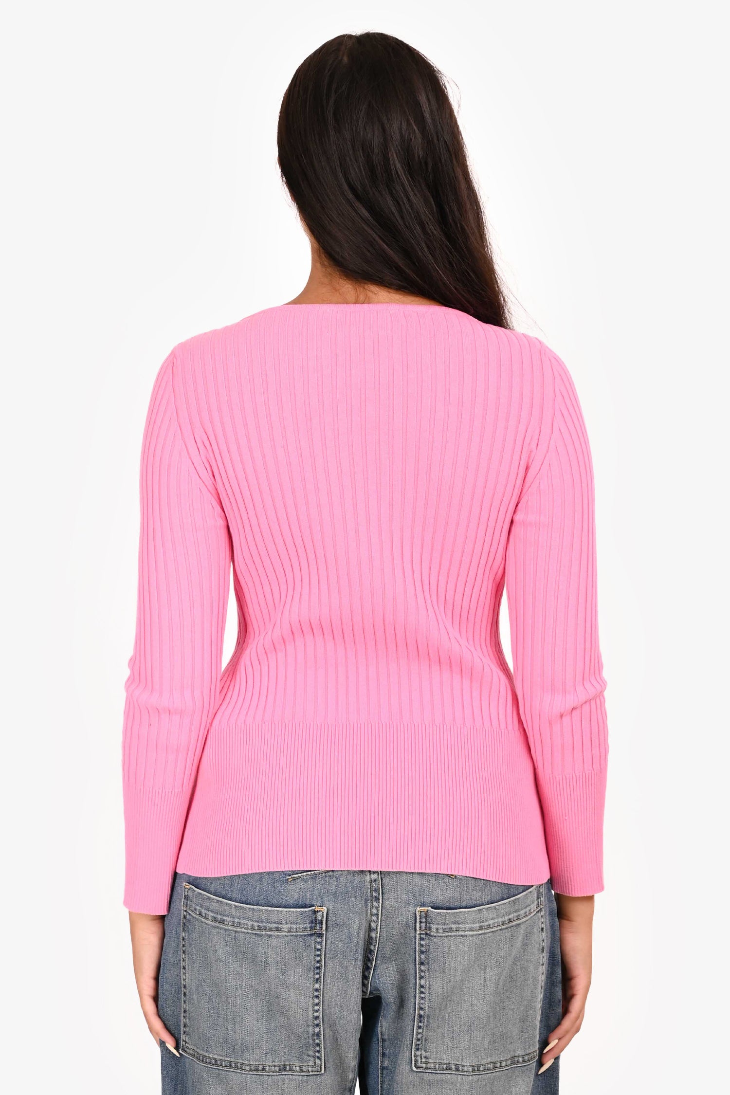 Refresh availabilityAttire: The Studio Pink Ribbed Cotton Buttoned Cardigan Top. Pink-tone buttons. Tonal stitching.