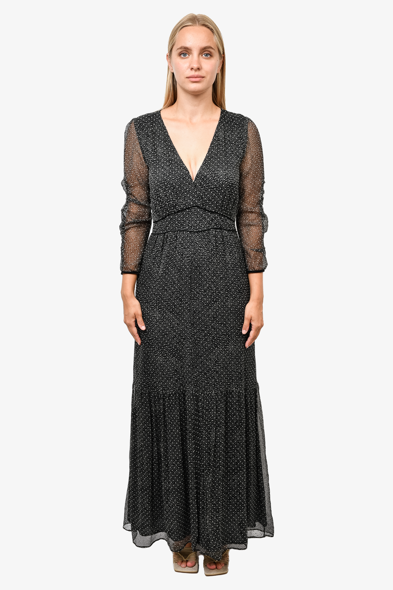 Ba&sh Black Printed V-Neck Maxi Dress Size 1