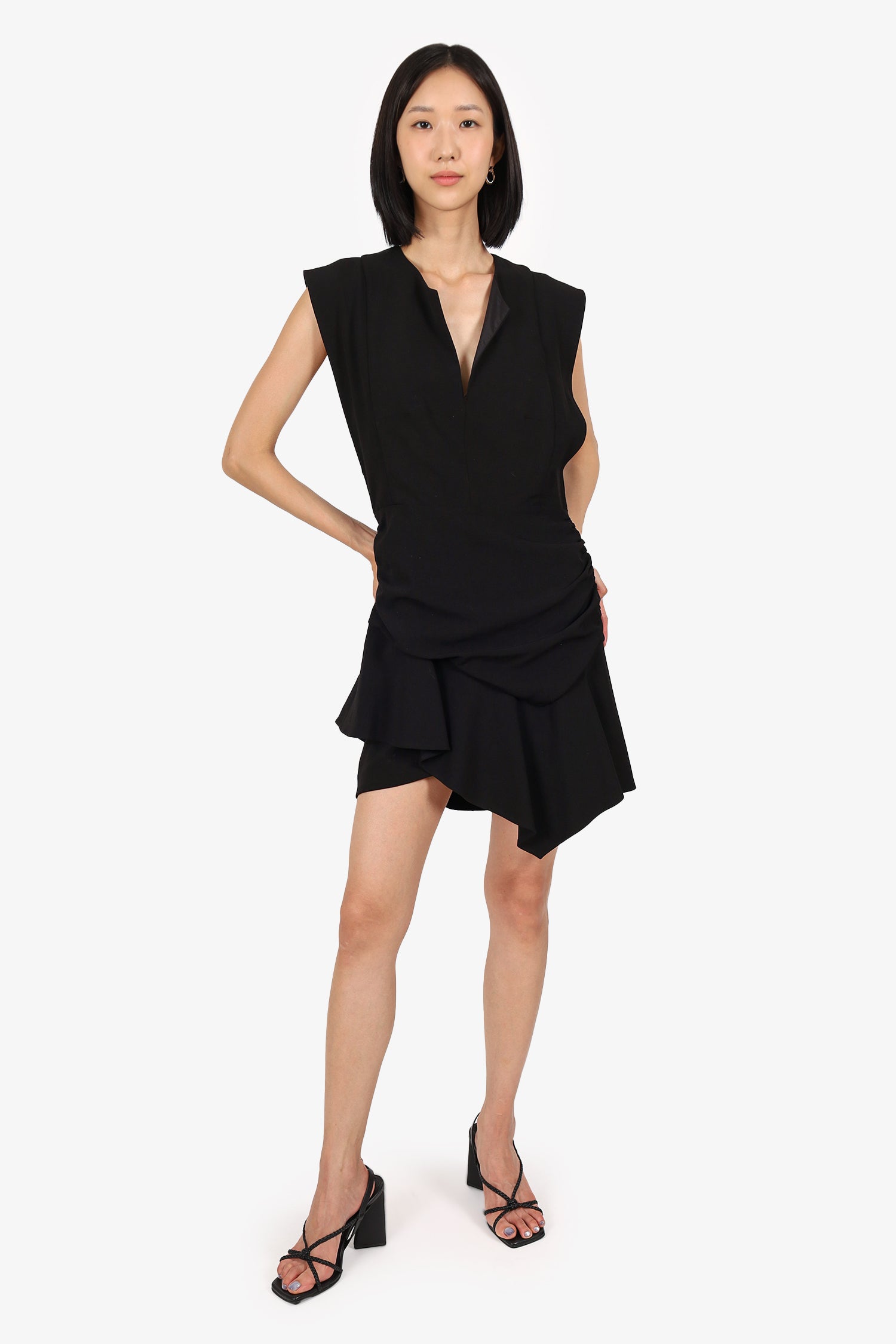 Refresh availabilityBa&sh Black Sleeveless Ruched Mini Dress. Slip-on. V-neckline. Rear zip closure. Side ruching. Tonal stitching.