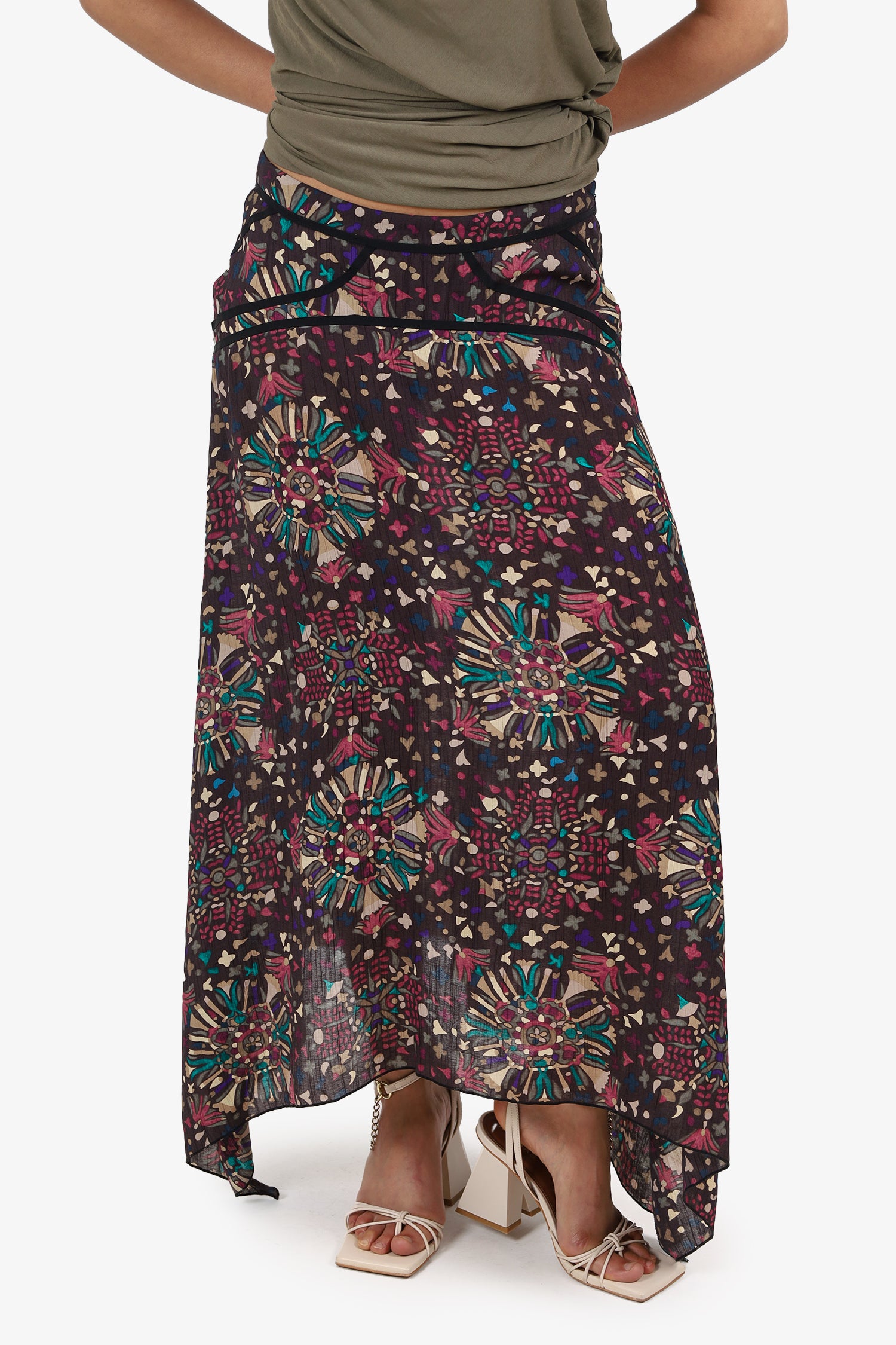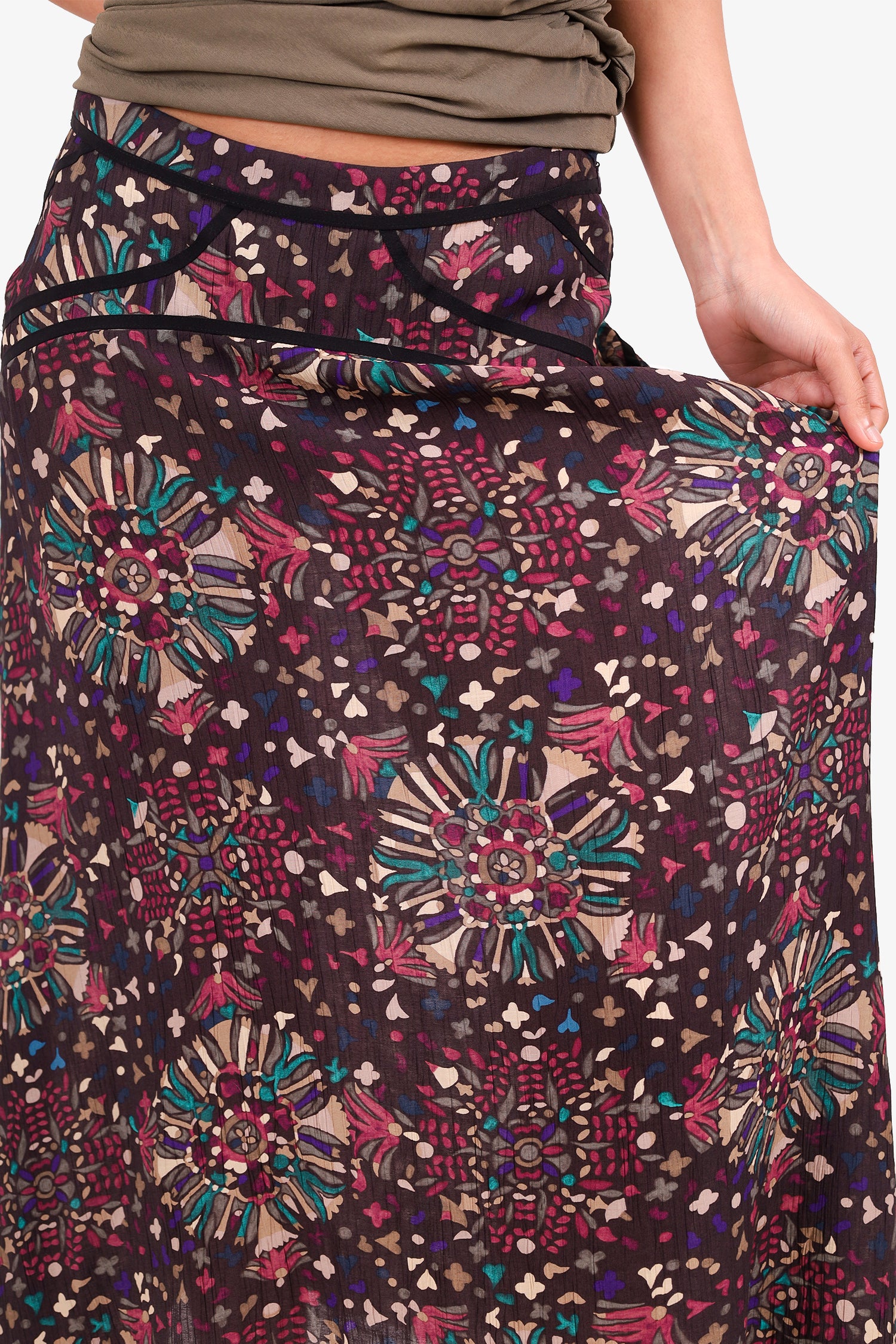 Refresh availabilityBa&sh Brown/Purple Floral Printed Midi Skirt. Slip-on. Side zip and hook closure. Unlined. Tonal stitching.