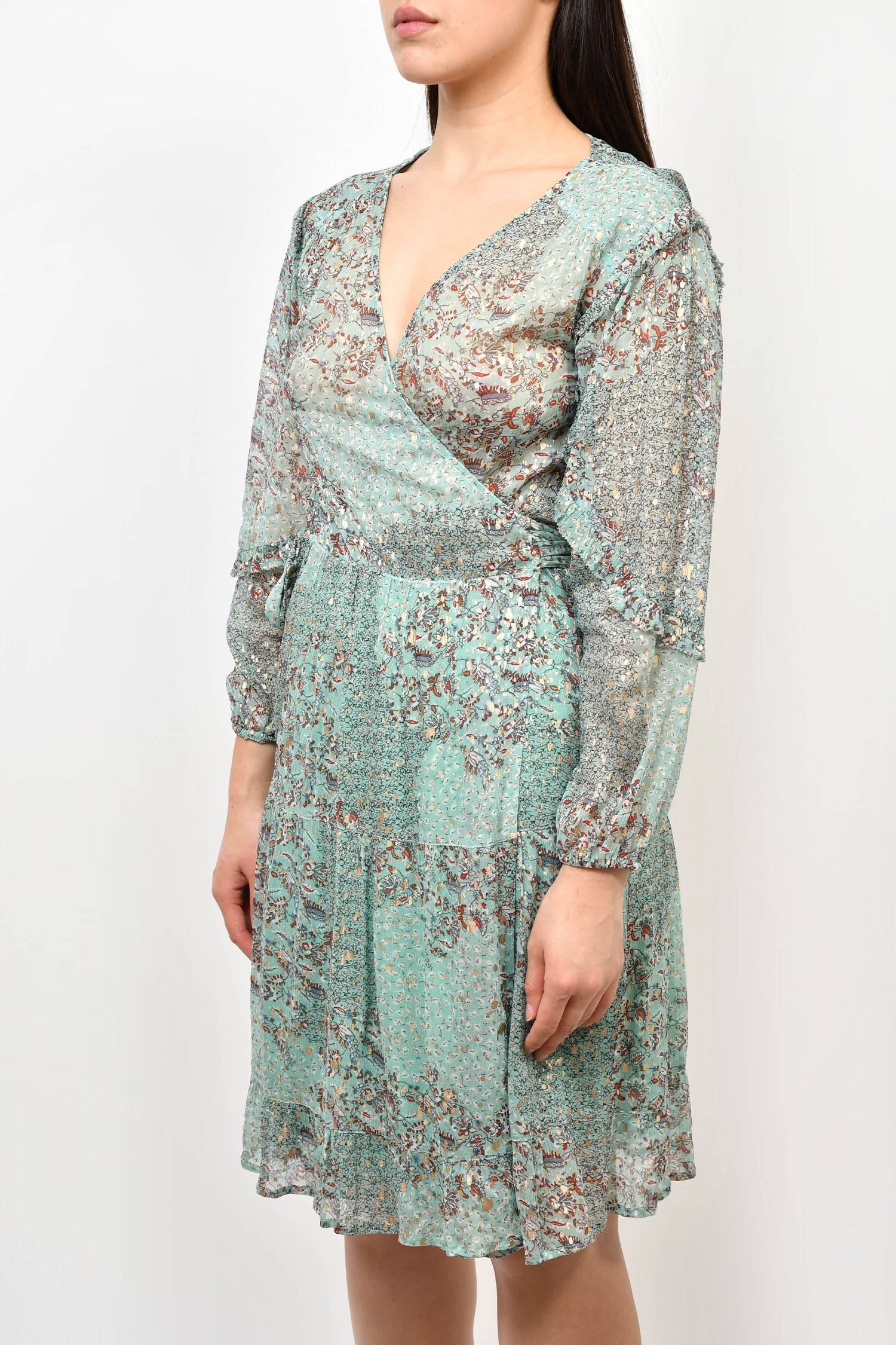 Refresh availabilityBa&sh Green Floral Wrap Dress. Long sleeves Wrap closure. V neckline. Partial interior lining. Tonal stitching.