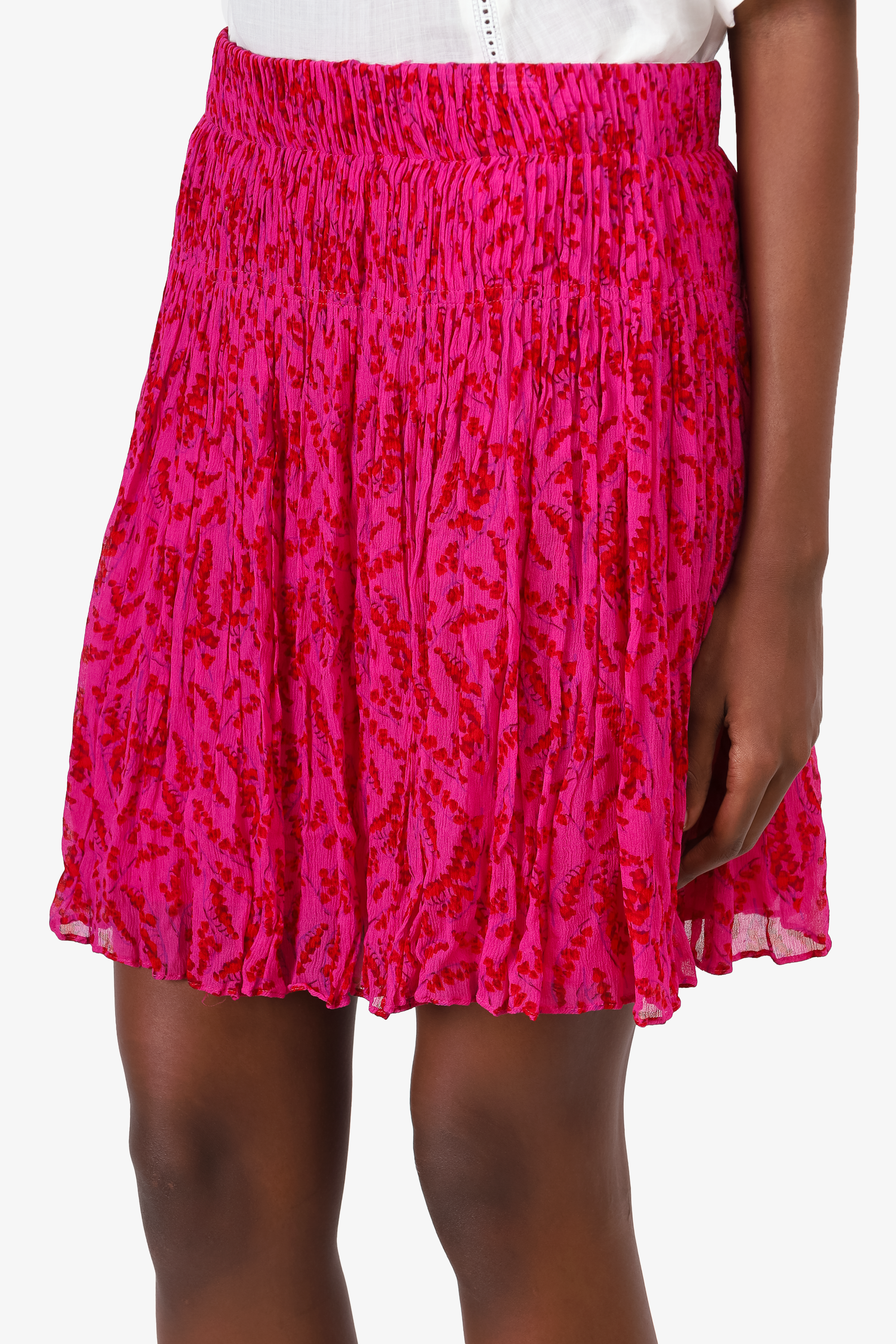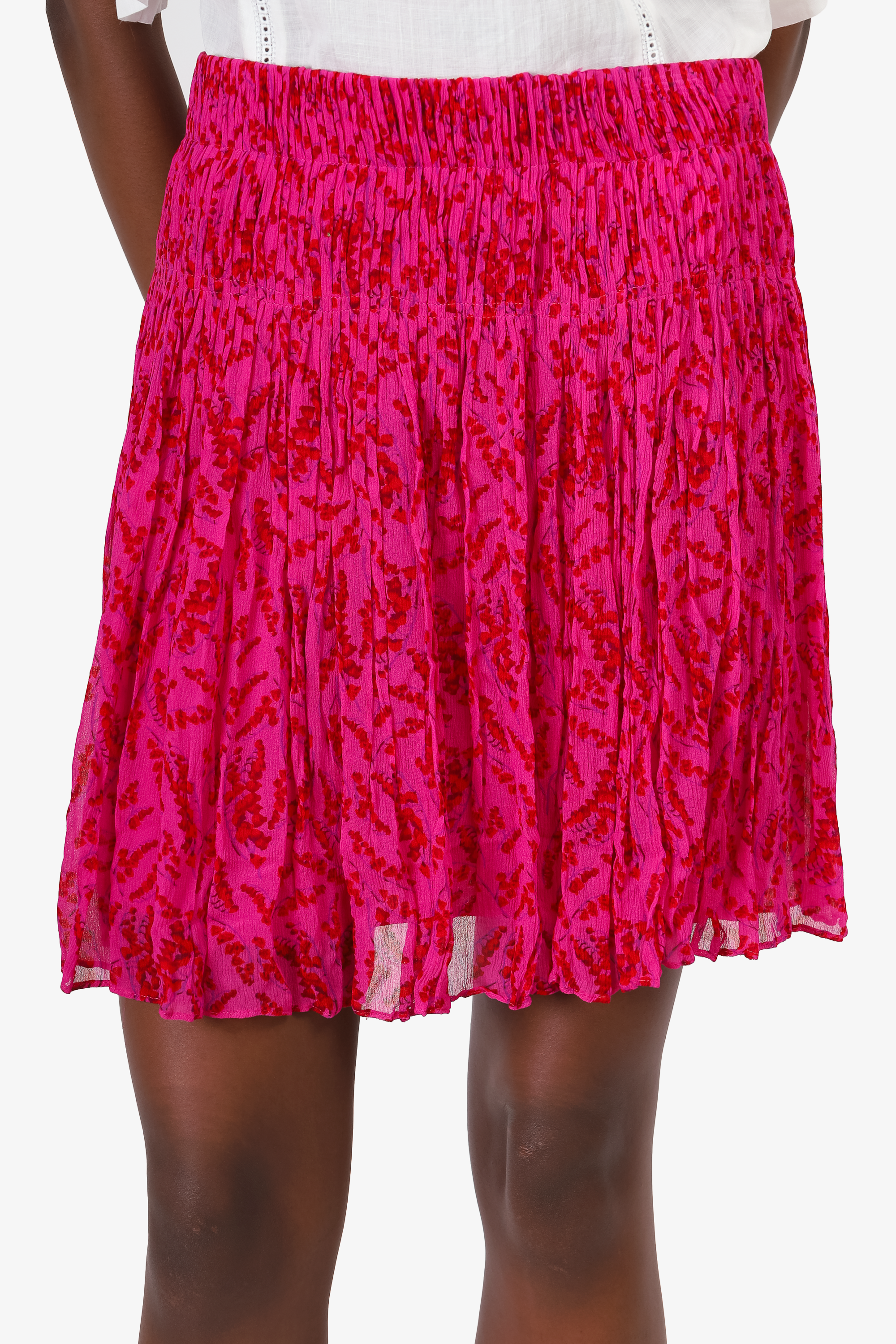 Refresh availabilityBa&sh Hot Pink Floral Pleated Mini Skirt. Slip on. Lined. Tonal stitching.