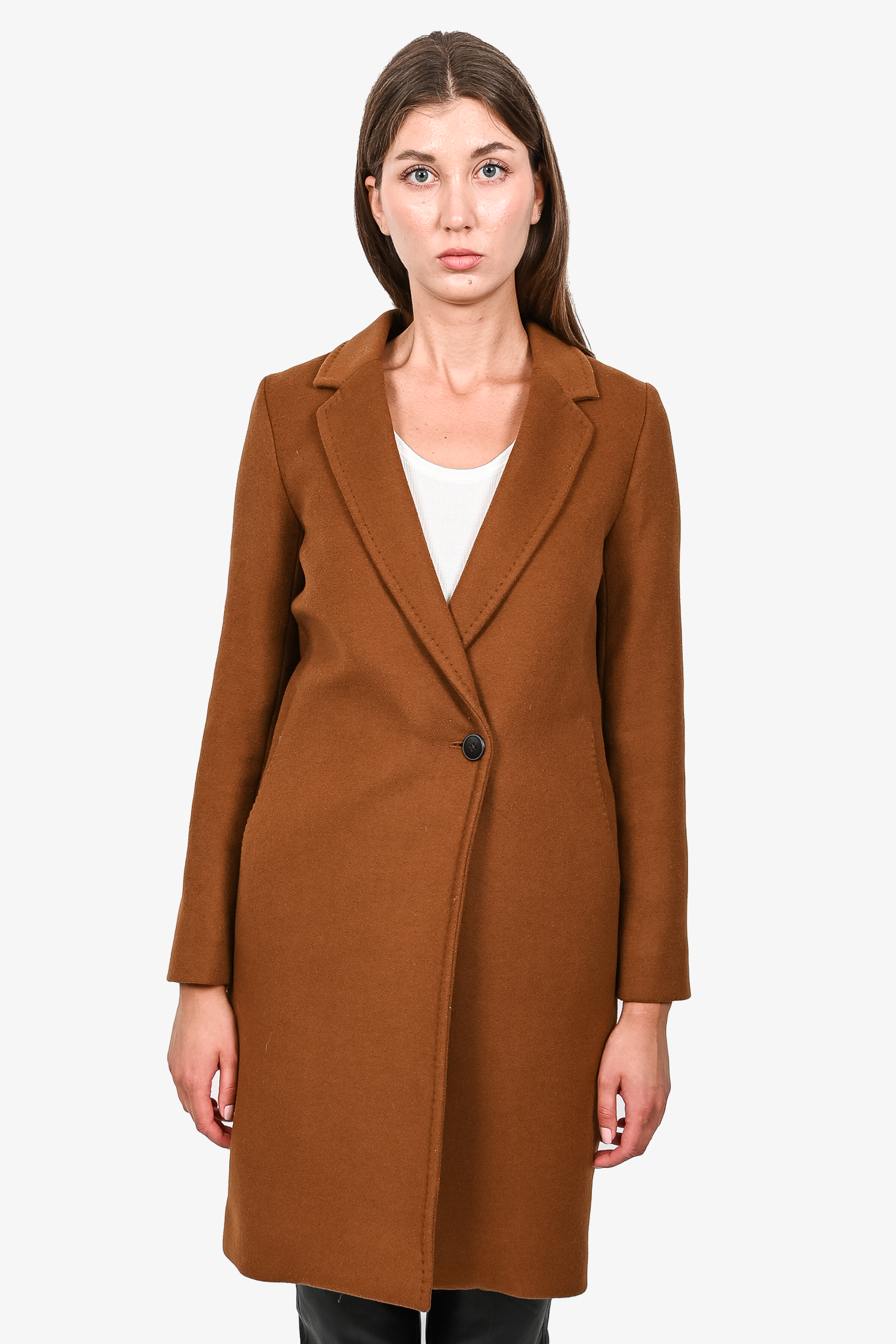 Refresh availabilityBabaton Brown Wool 'Stedman' Coat. Notch lapels. Double breasted single button closure. Two front slash pockets. Lined. Tonal stitching.