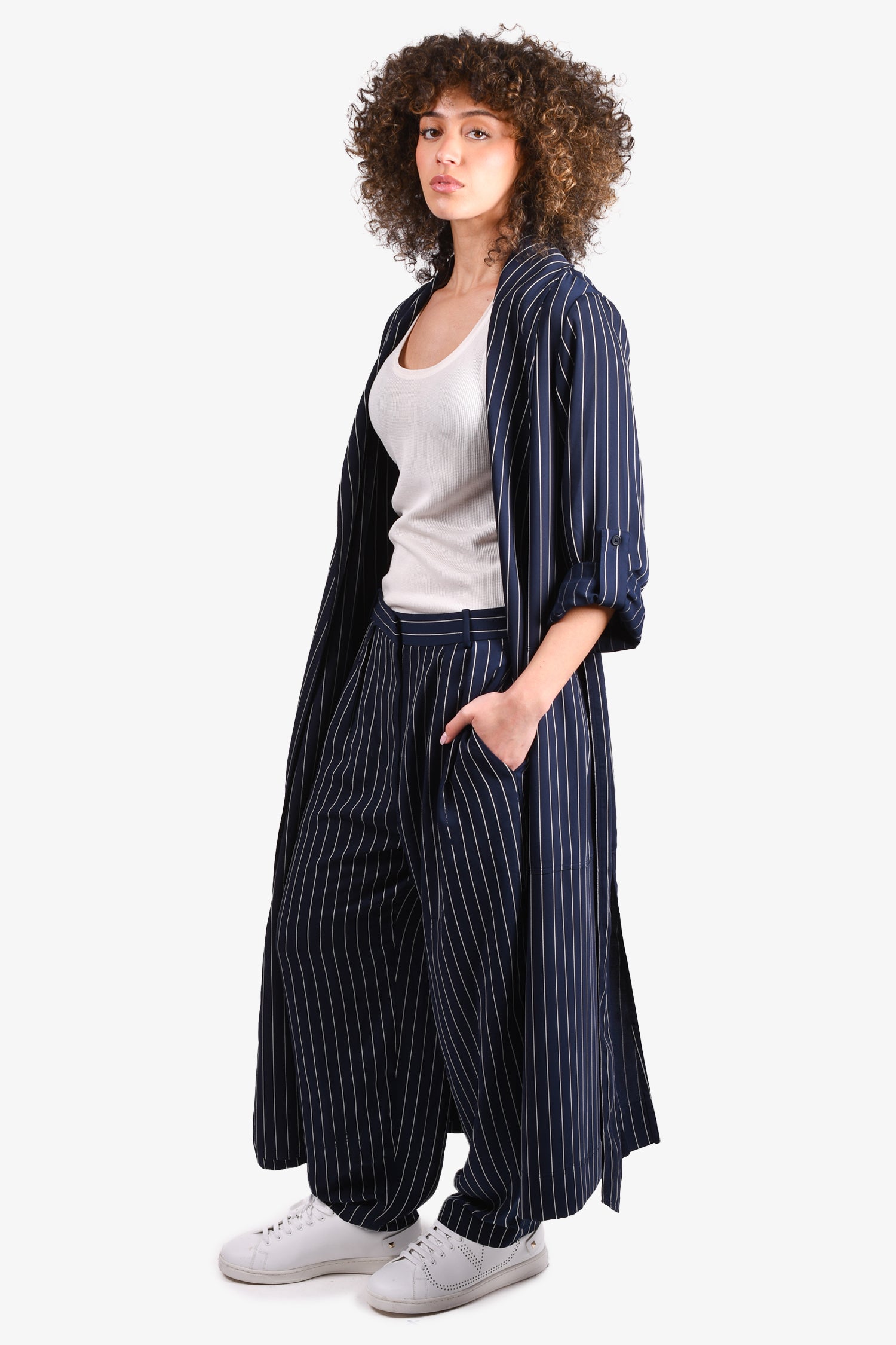 Babaton Navy/White Striped Robe with Tie Size M + Wide Leg Trousers Size 12 Set
