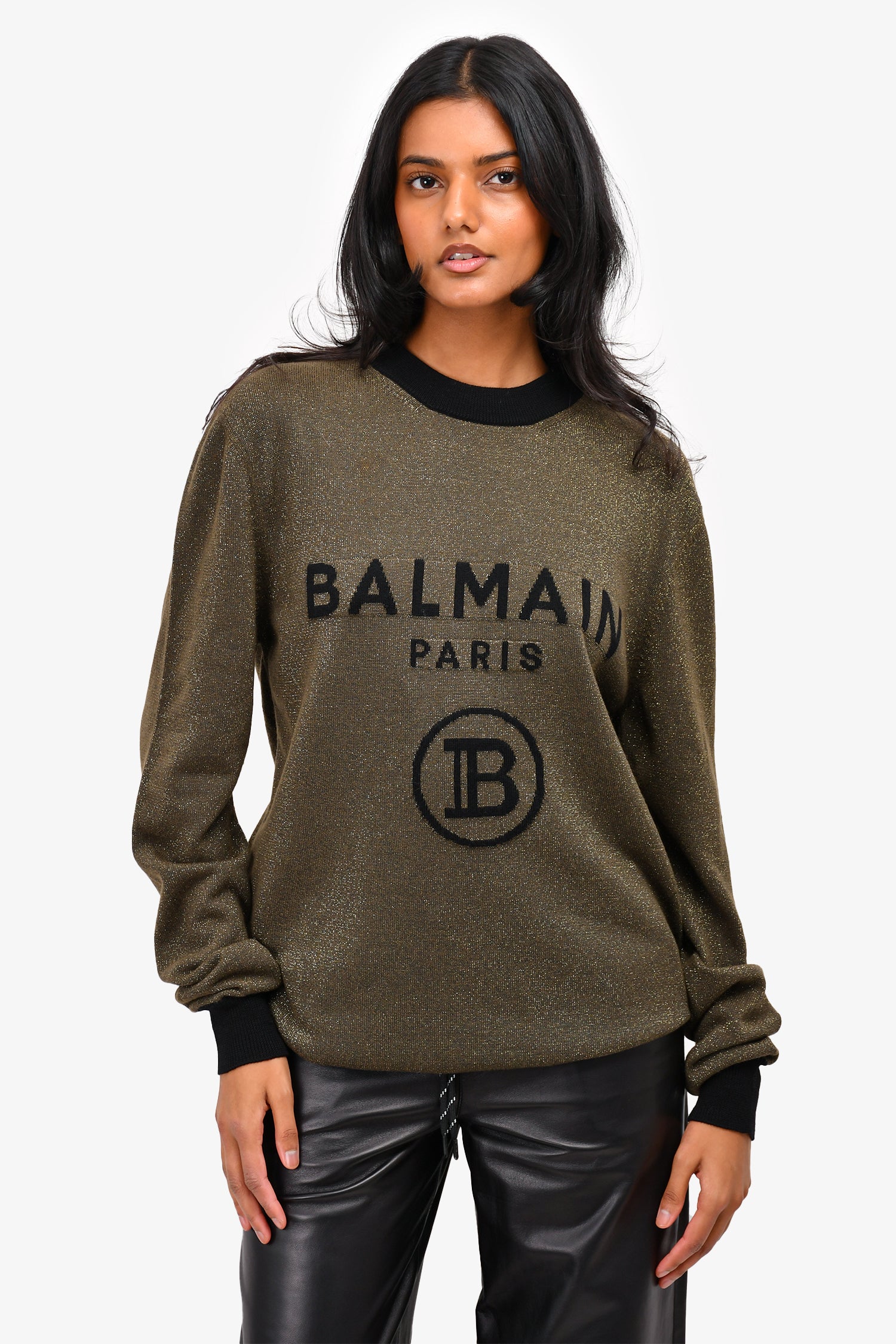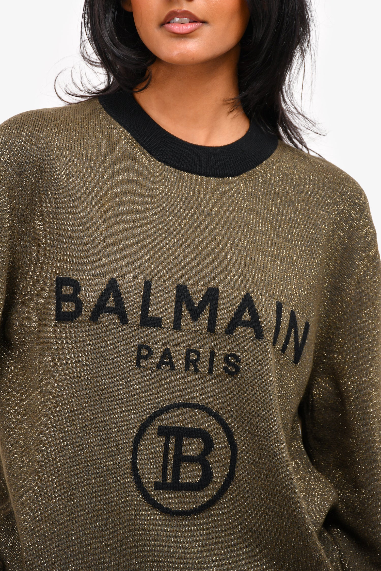 Balamin Green Wool Sparkle Logo Crewneck Sweater Size 36