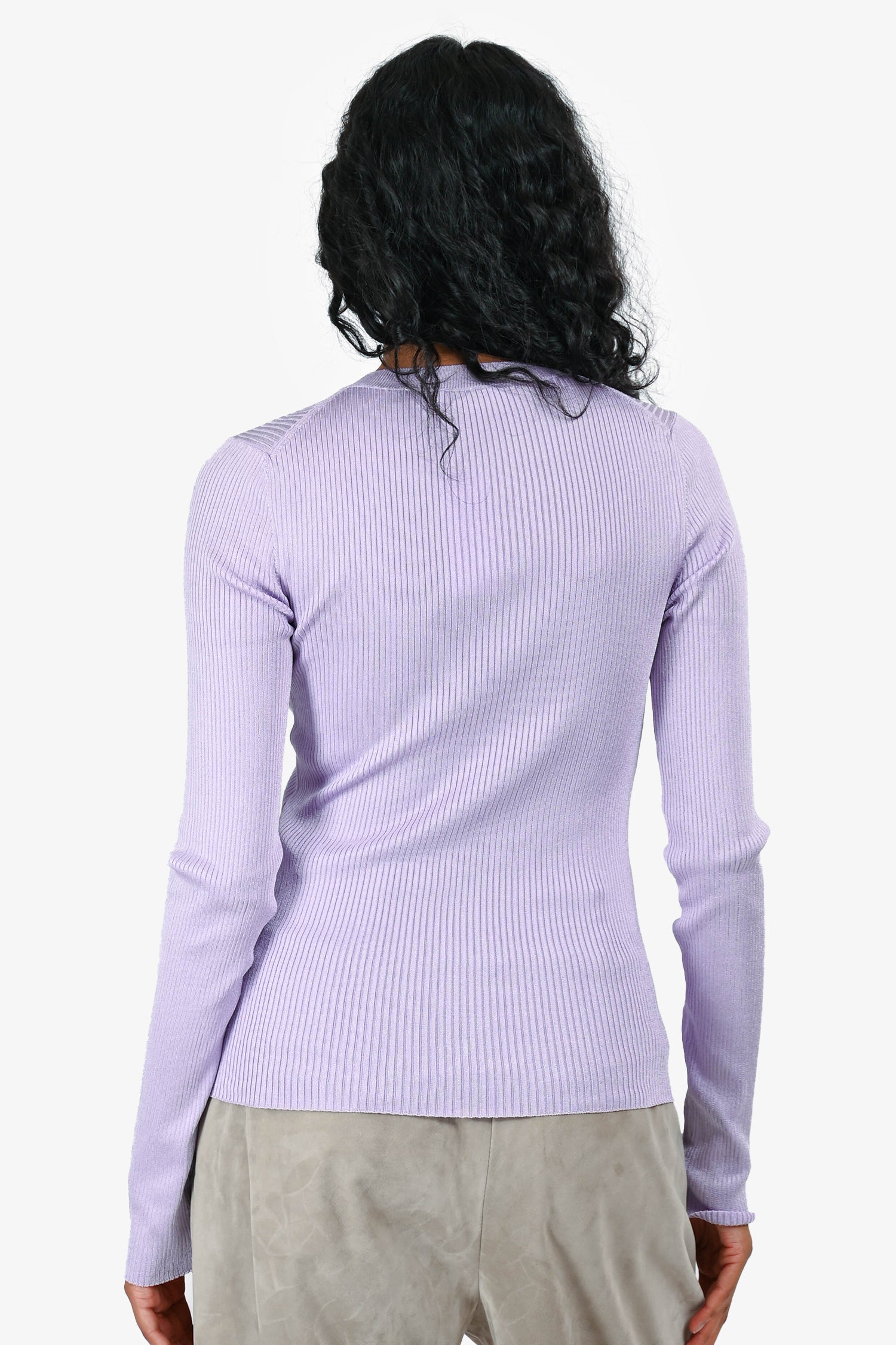 Balenciaga 2021 Purple Metallic Ribbed Knit Logo Long Sleeves Top Size S