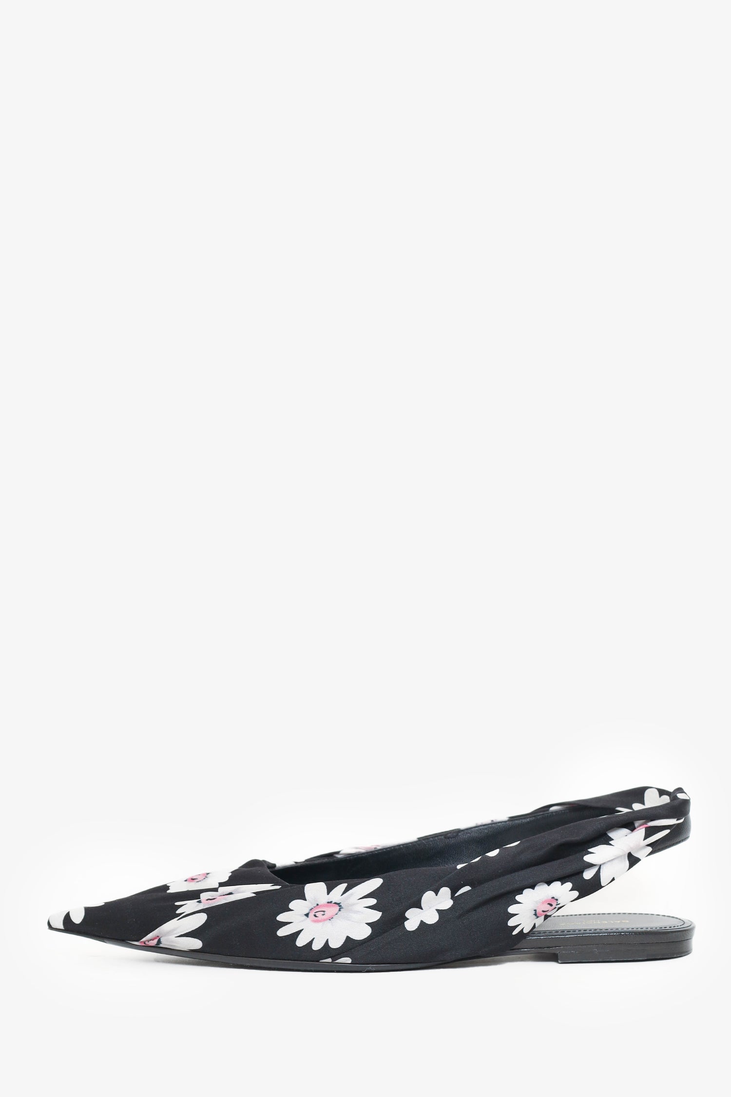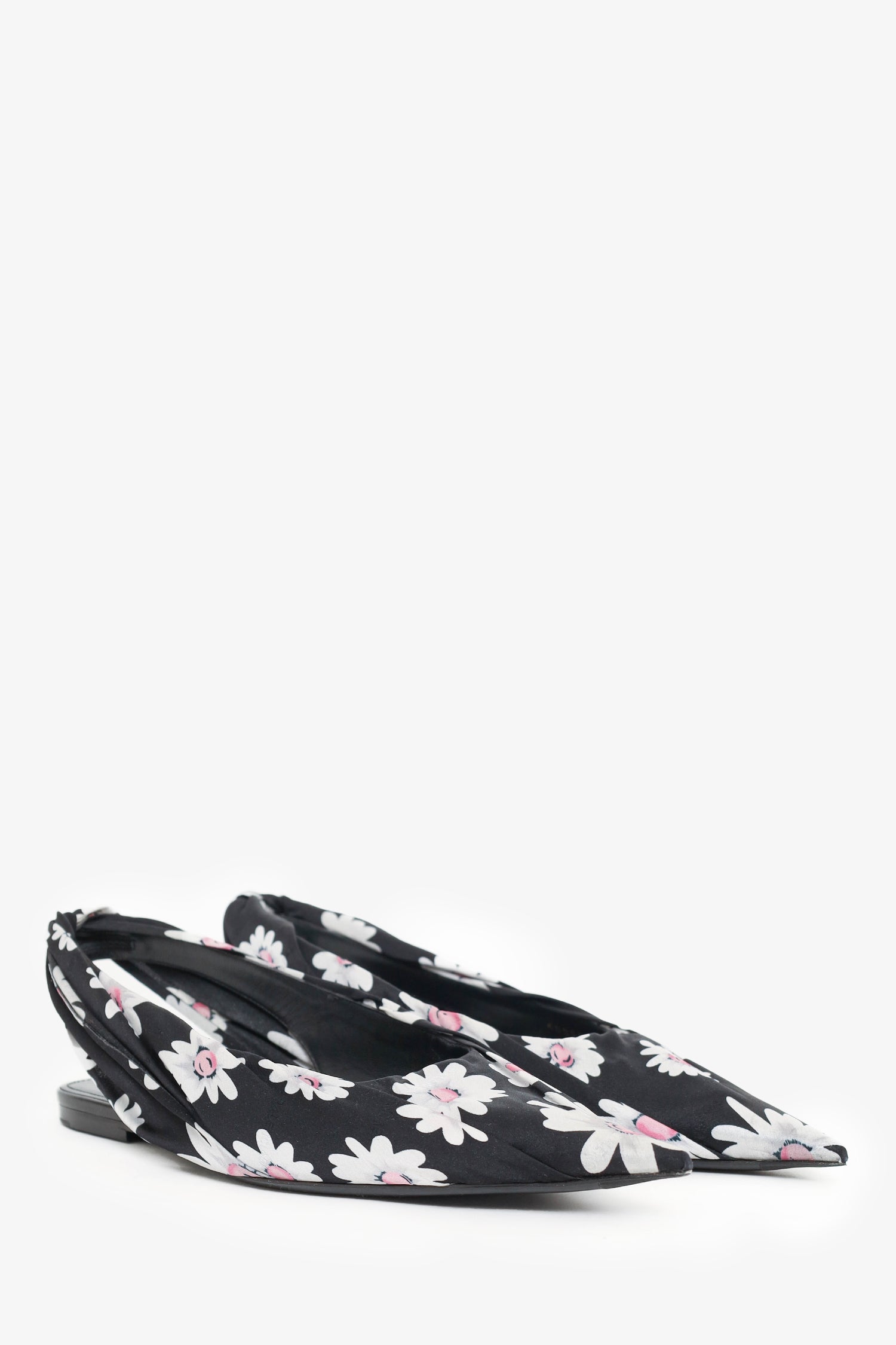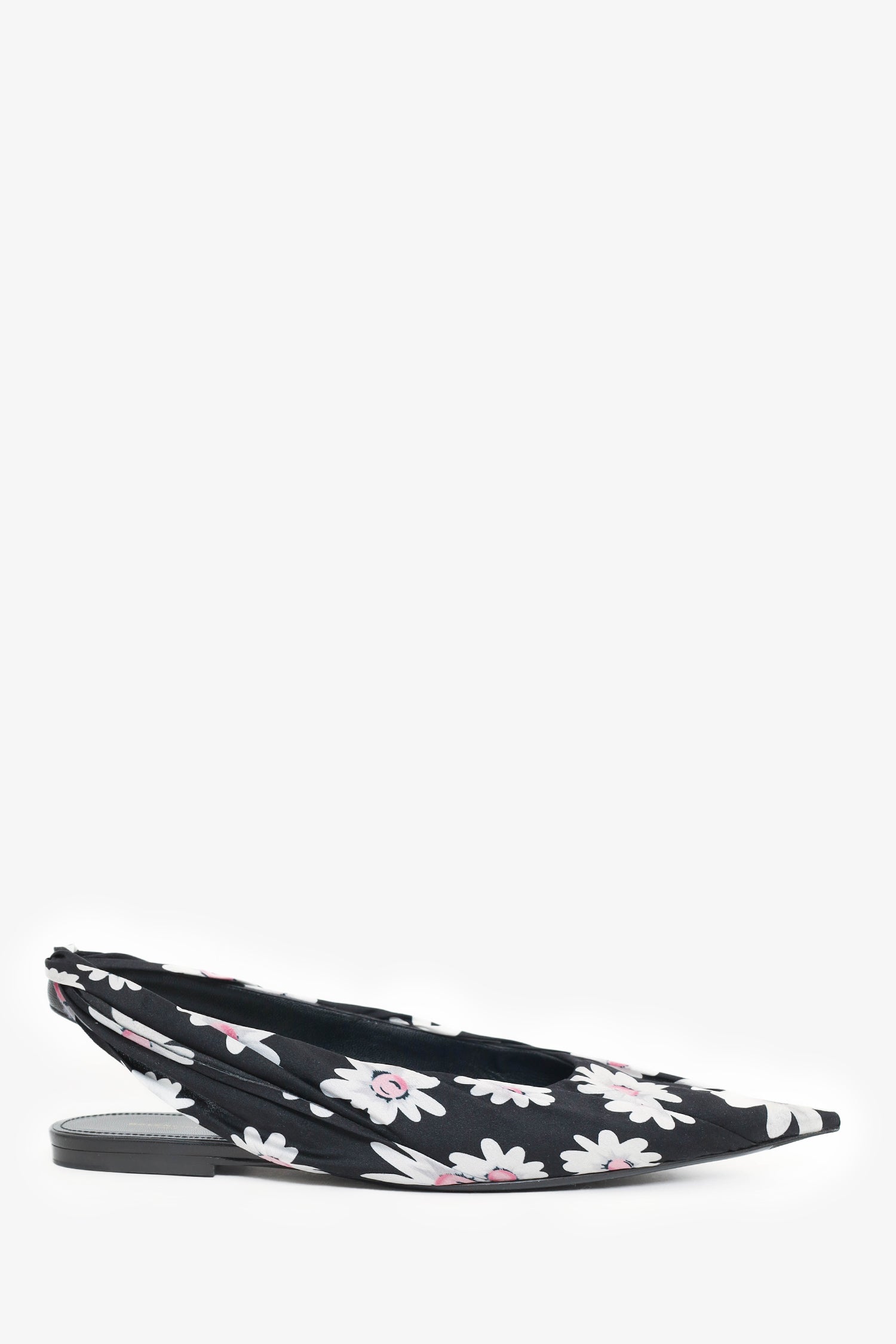 Refresh availabilityBalenciaga Black Floral Pointed-Toe Slingback Flats. Slip-on. Pointed toe. Tonal stitching.