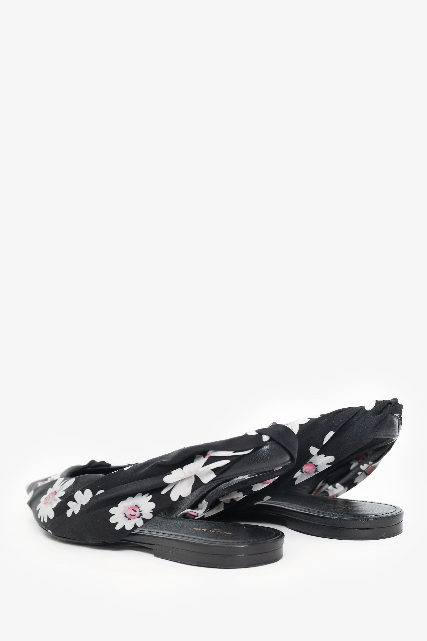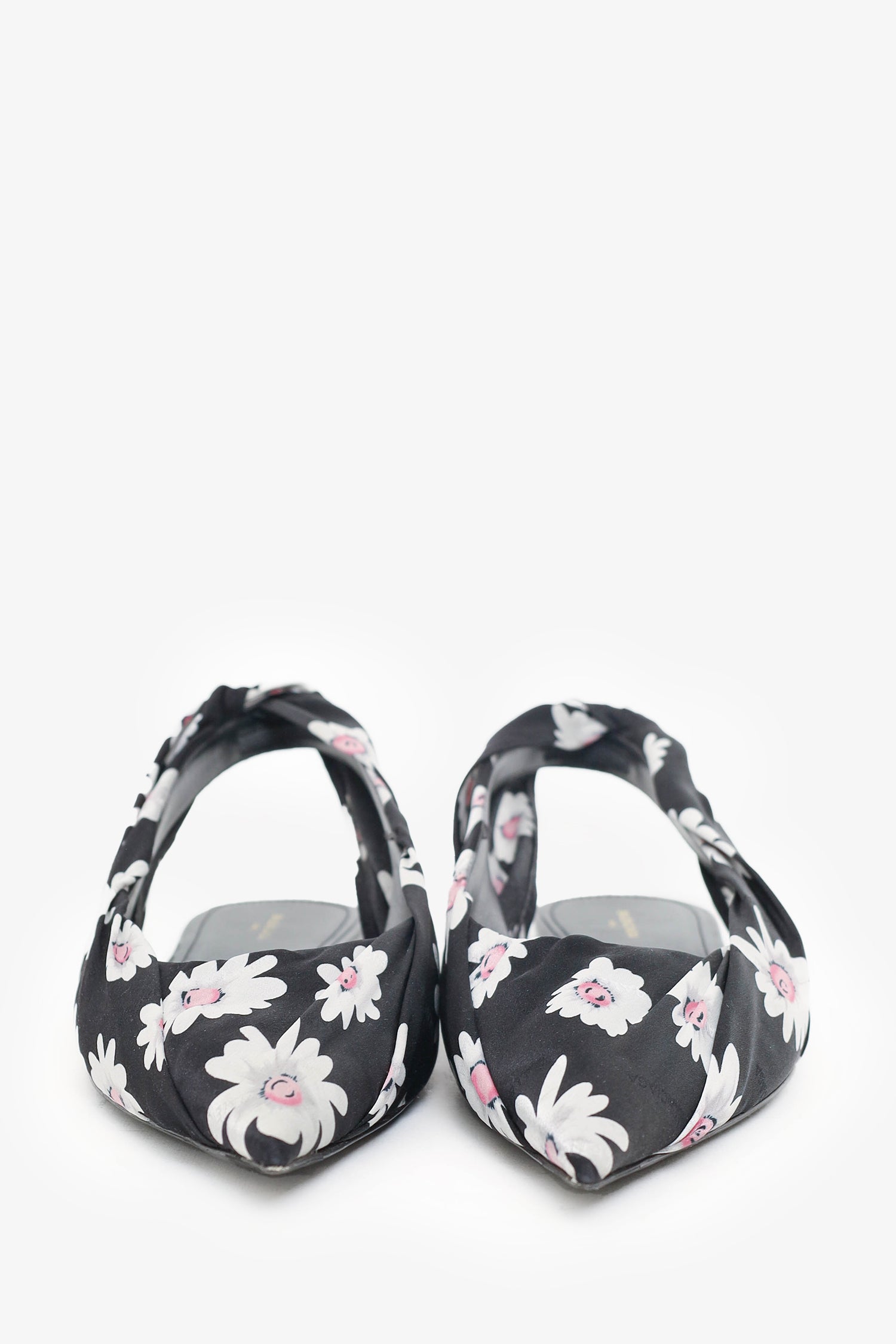 Balenciaga Black Floral Pointed-Toe Slingback Flats Size 40