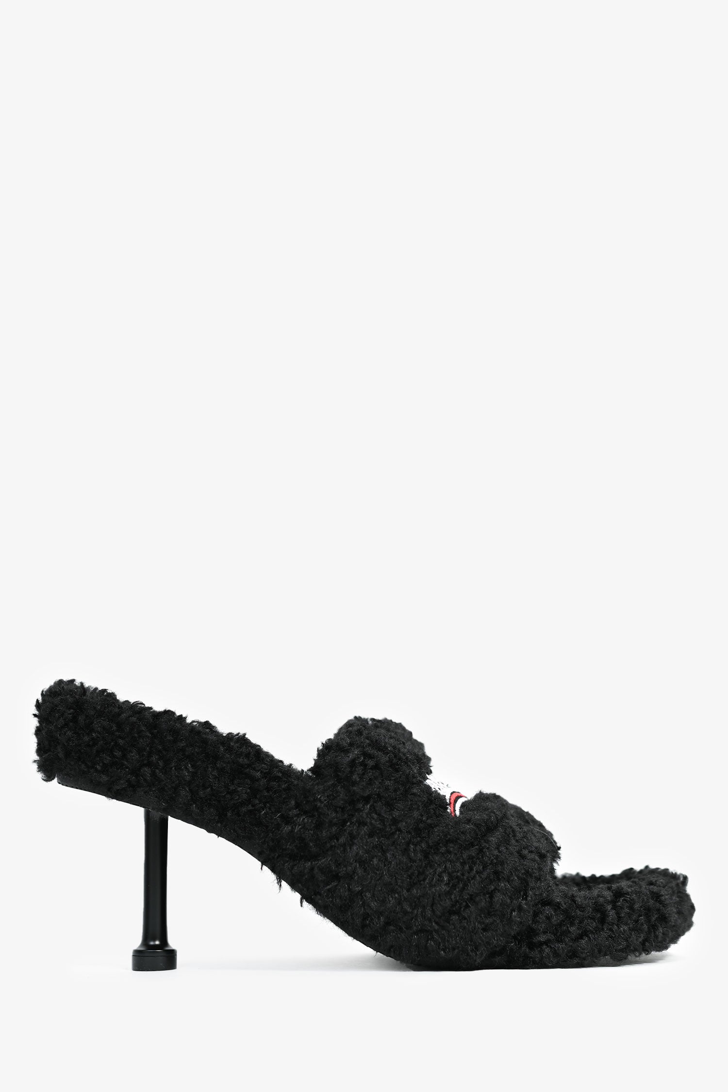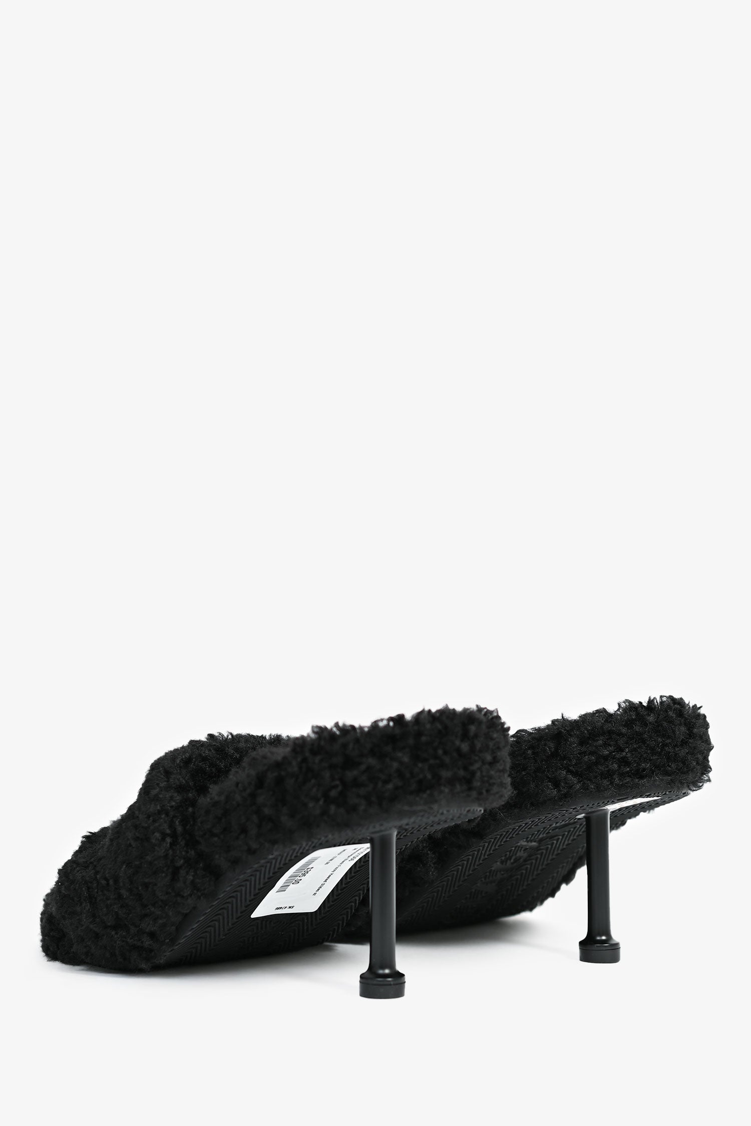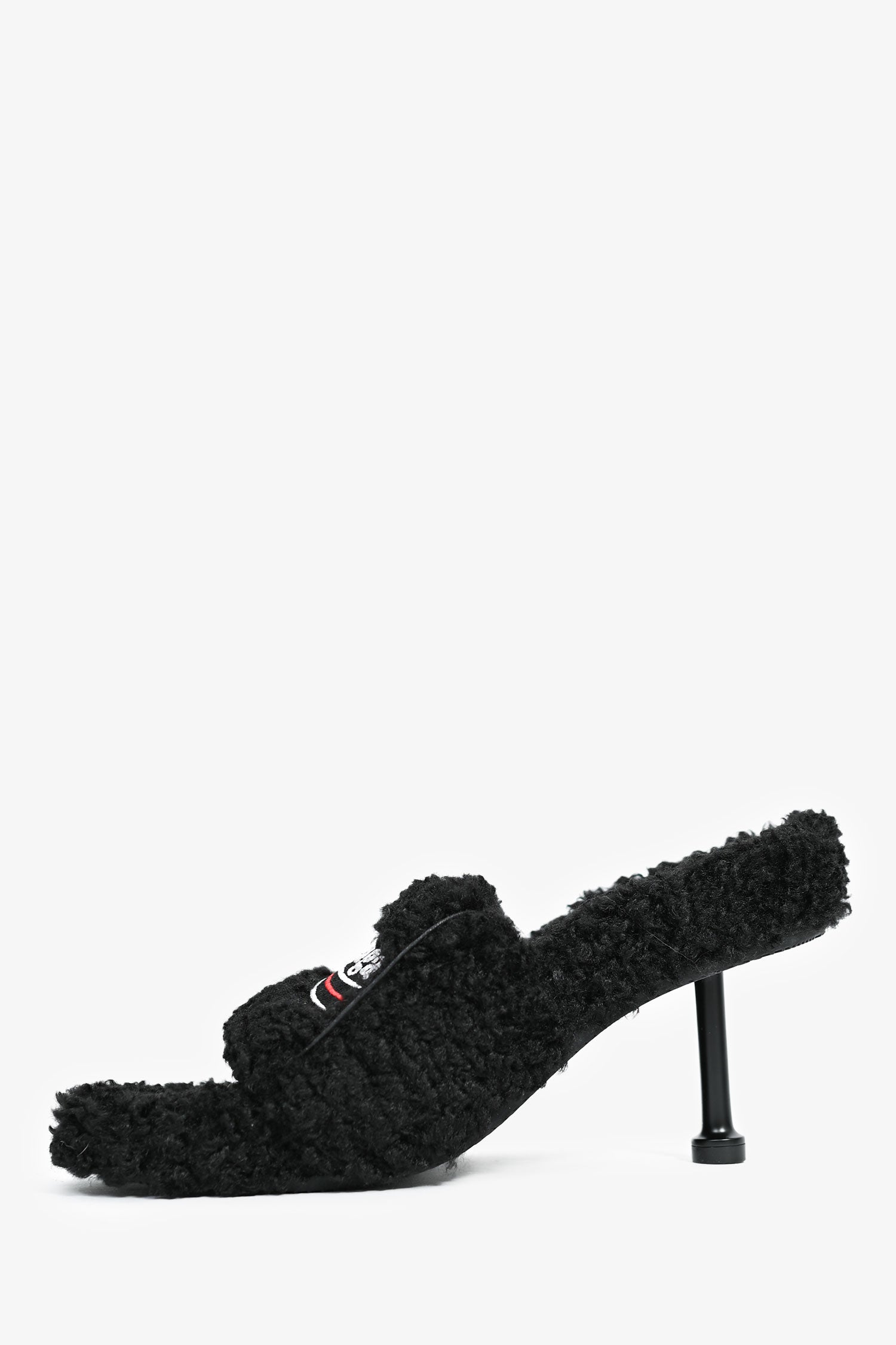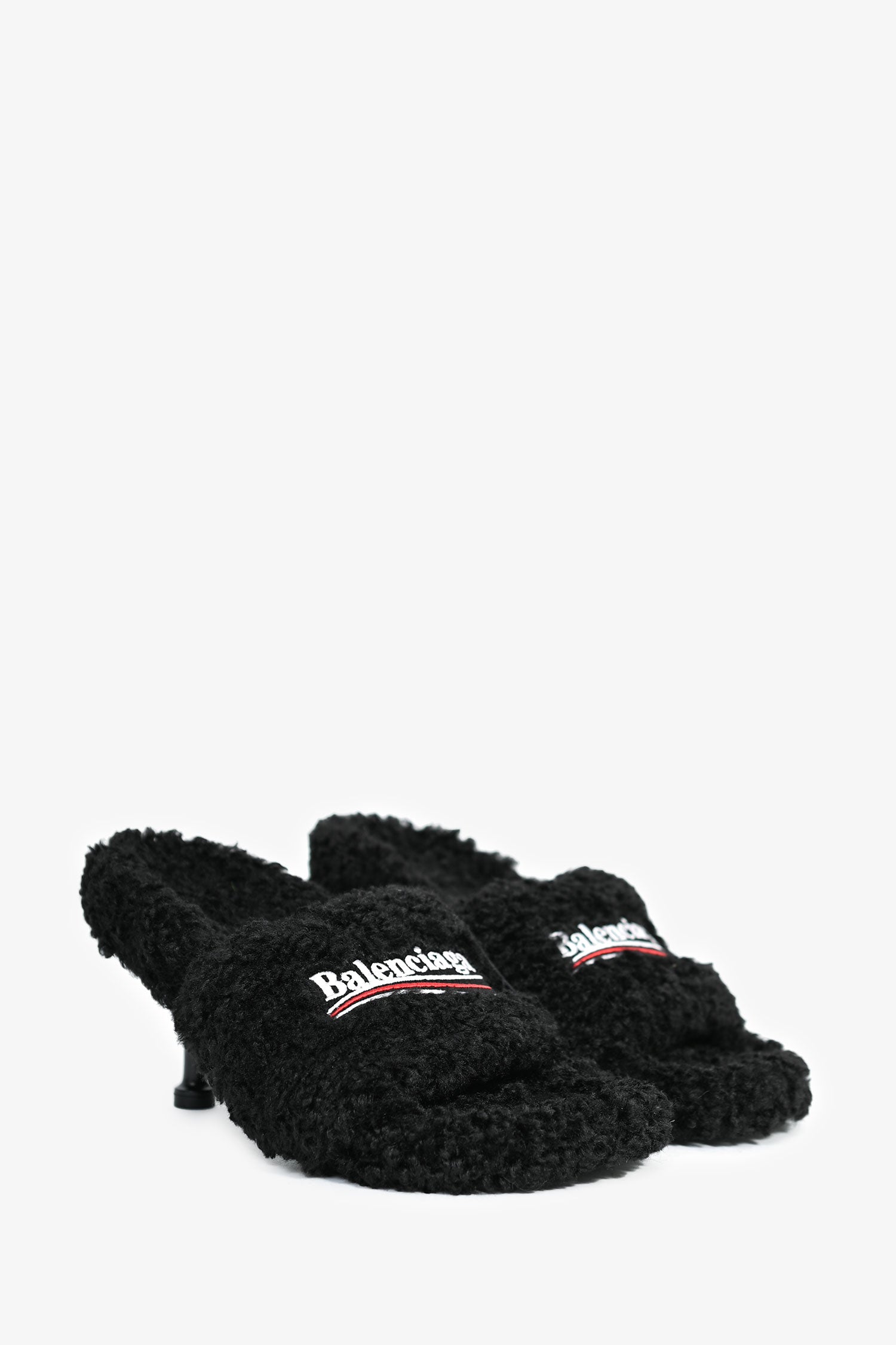 Refresh availabilityBalenciaga Black Fuzzy Heeled Slides. Open-toe. Slip-on. Tonal stitching.