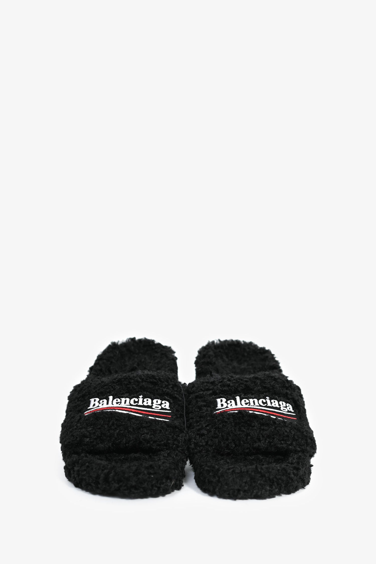 Balenciaga Black Fuzzy Heeled Slides Size 38