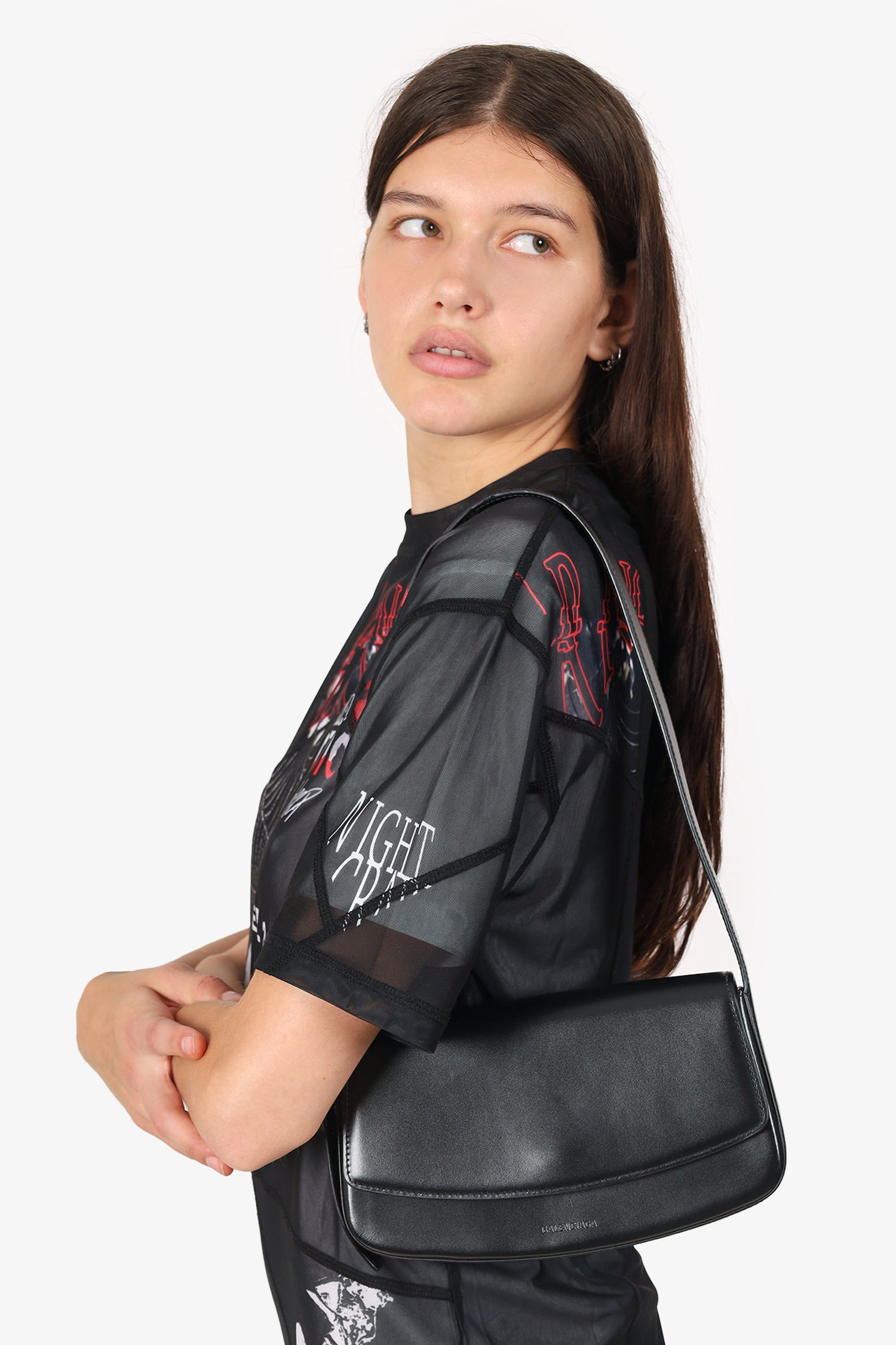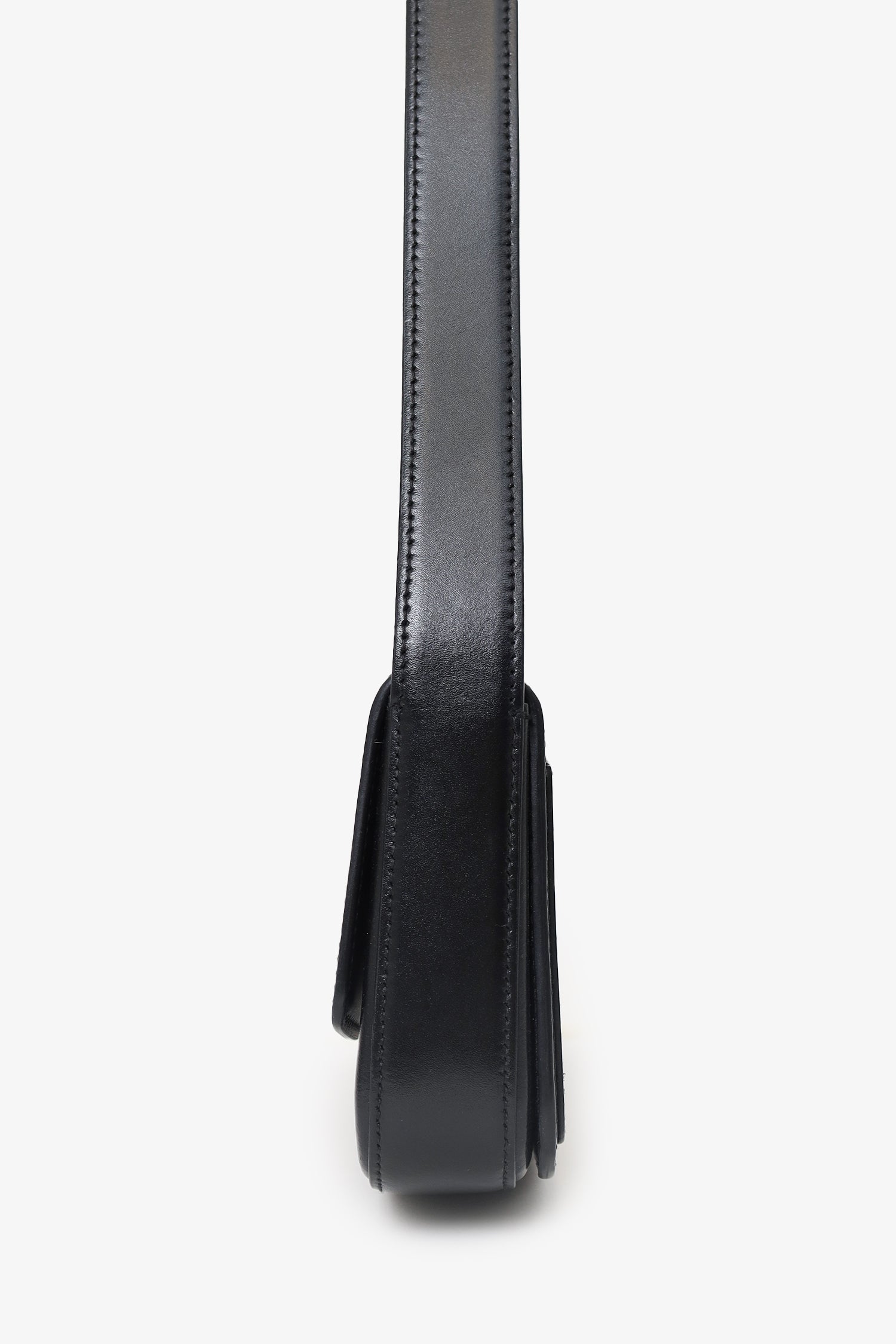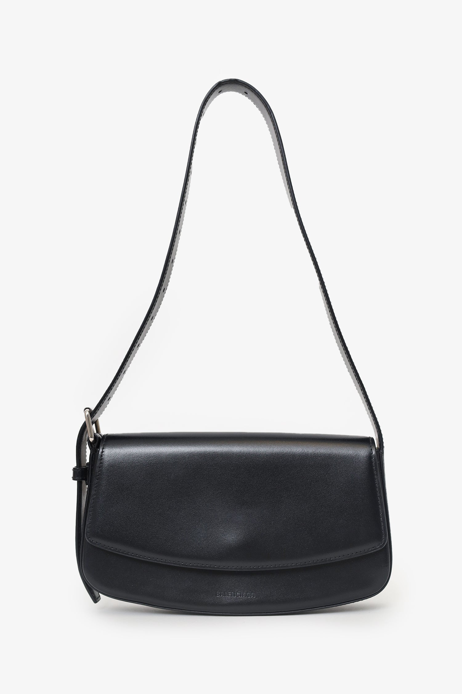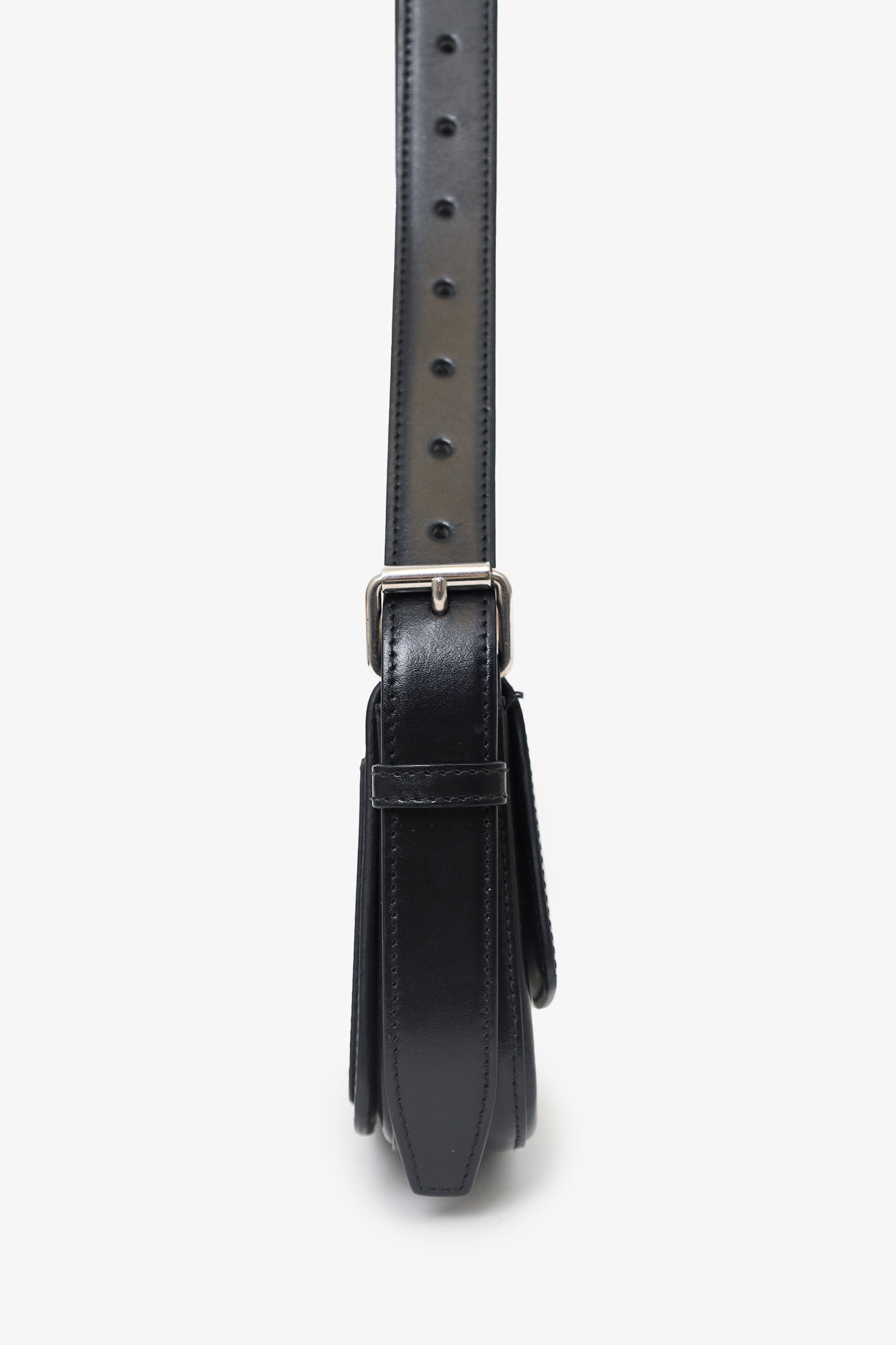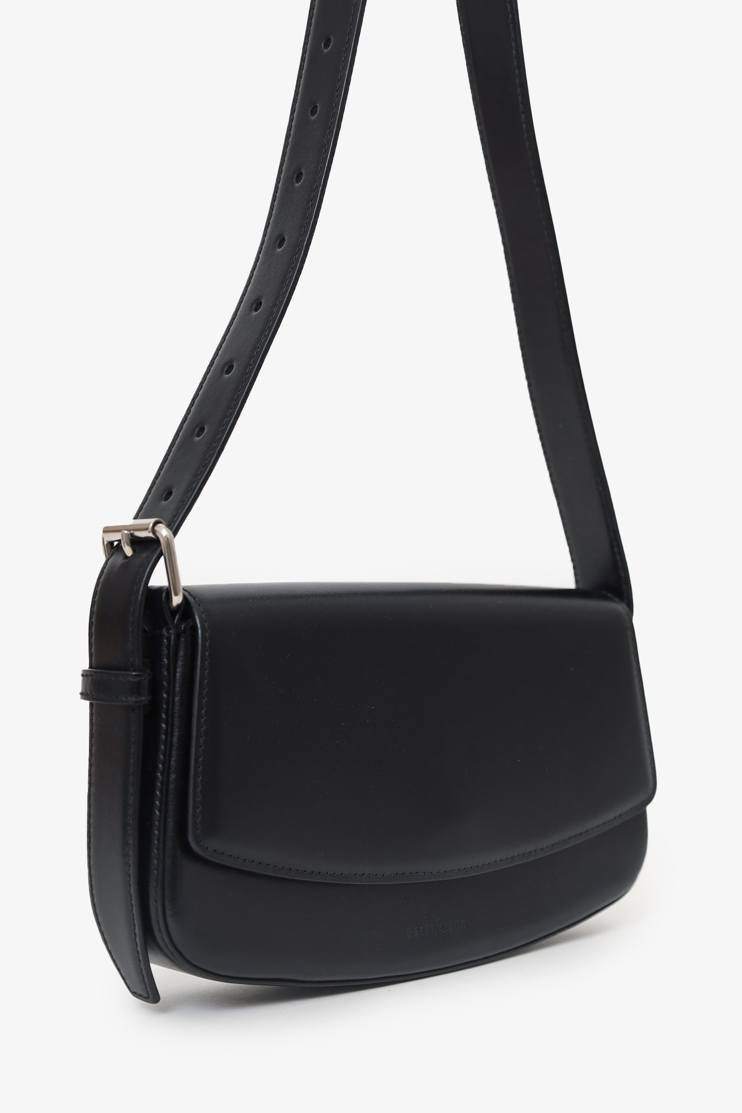 Refresh availabilityBalenciaga Black Leather Ghost Sling Bag. Front fold-over flap with pinch-lock closure. Adjustable shoulder strap with buckle closure. Exterior rear slip pocket. Leather interior. 2 interior pockets; 4 front card slots, and 1 rear zip. Silver-tone hardware. Tonal stitching.