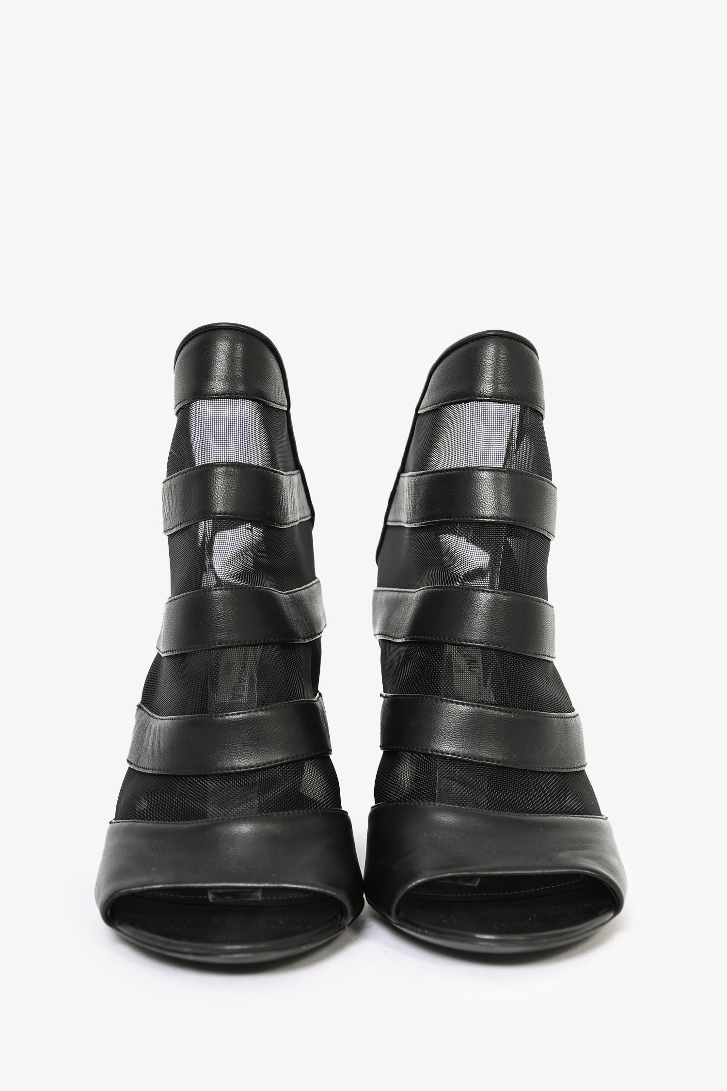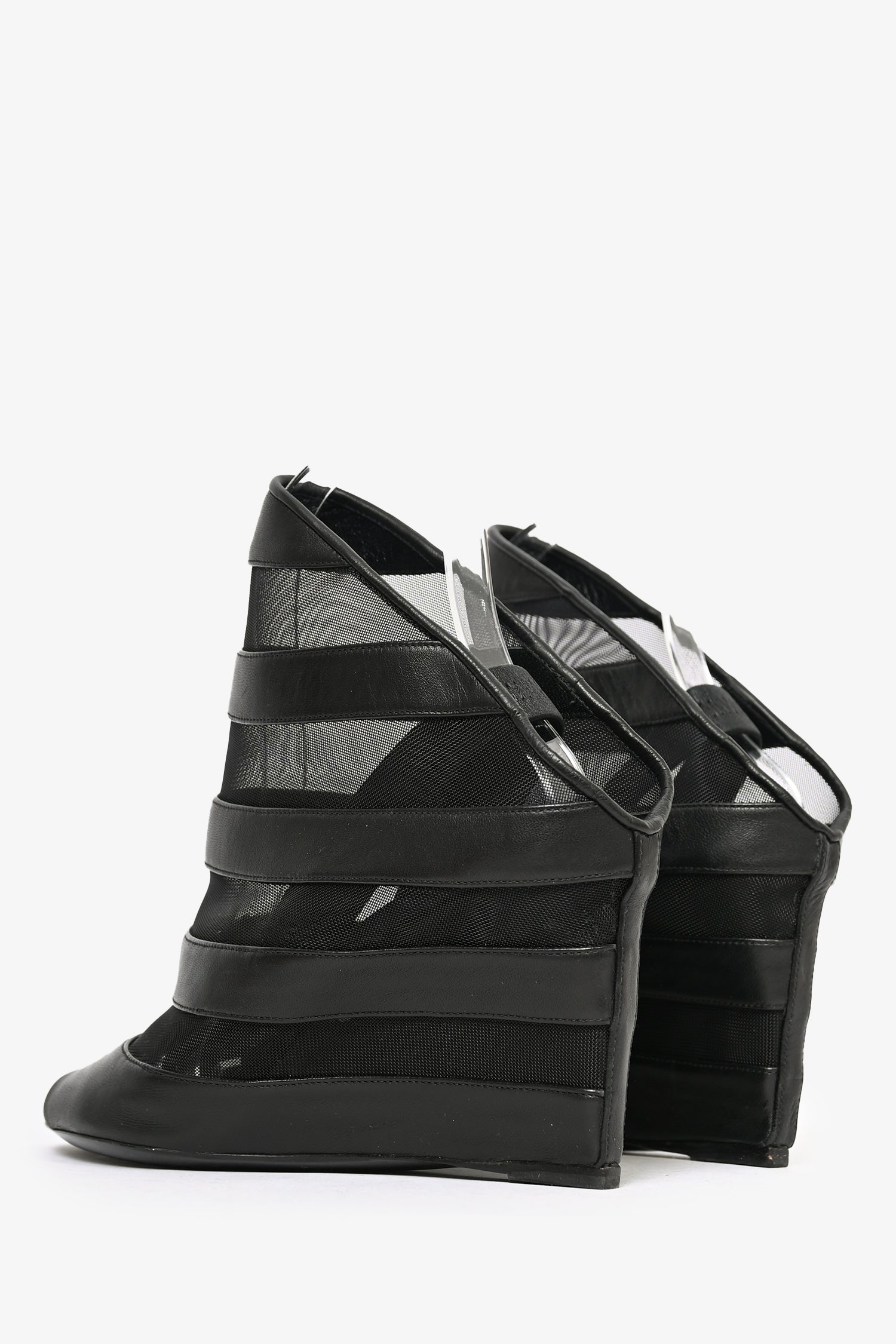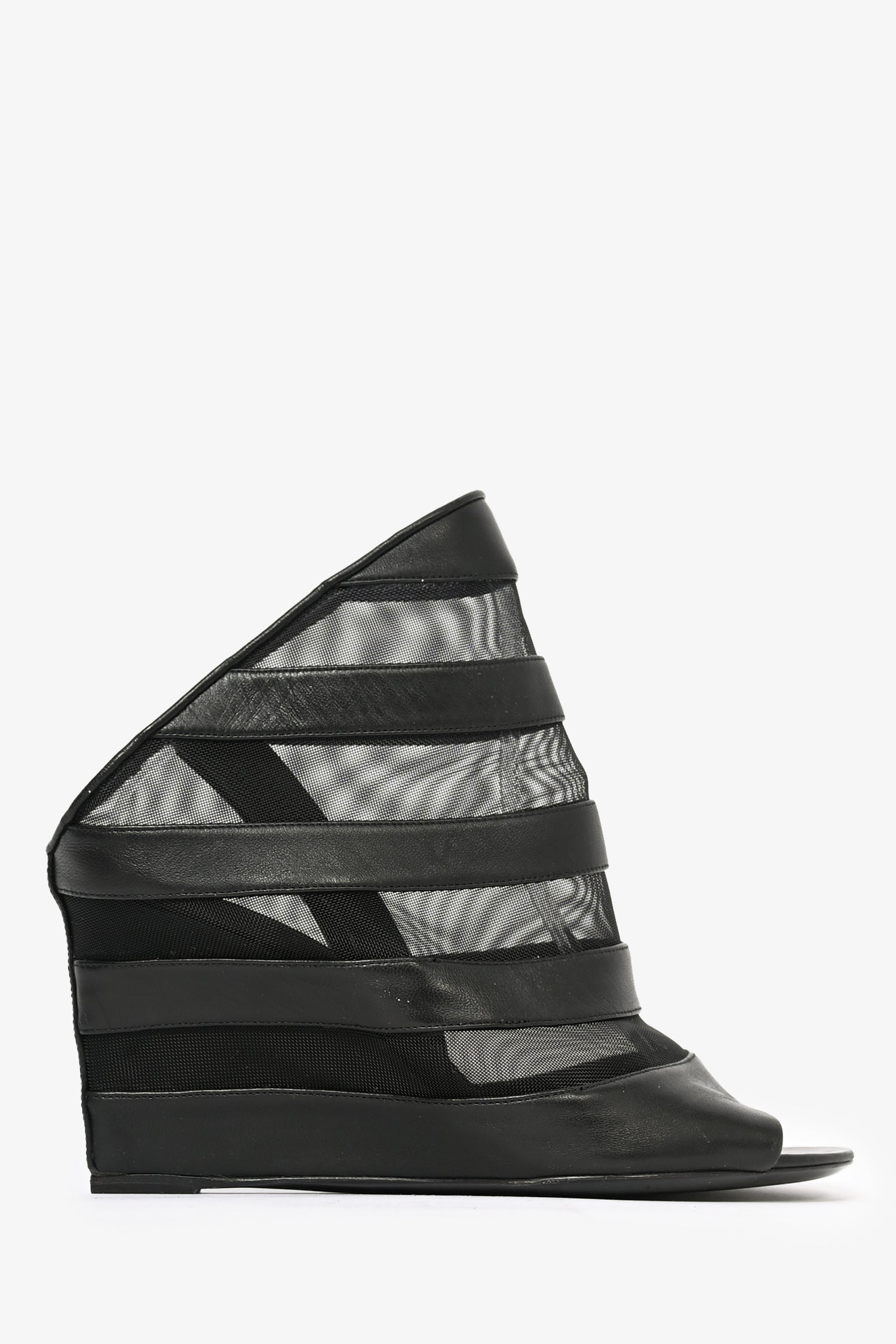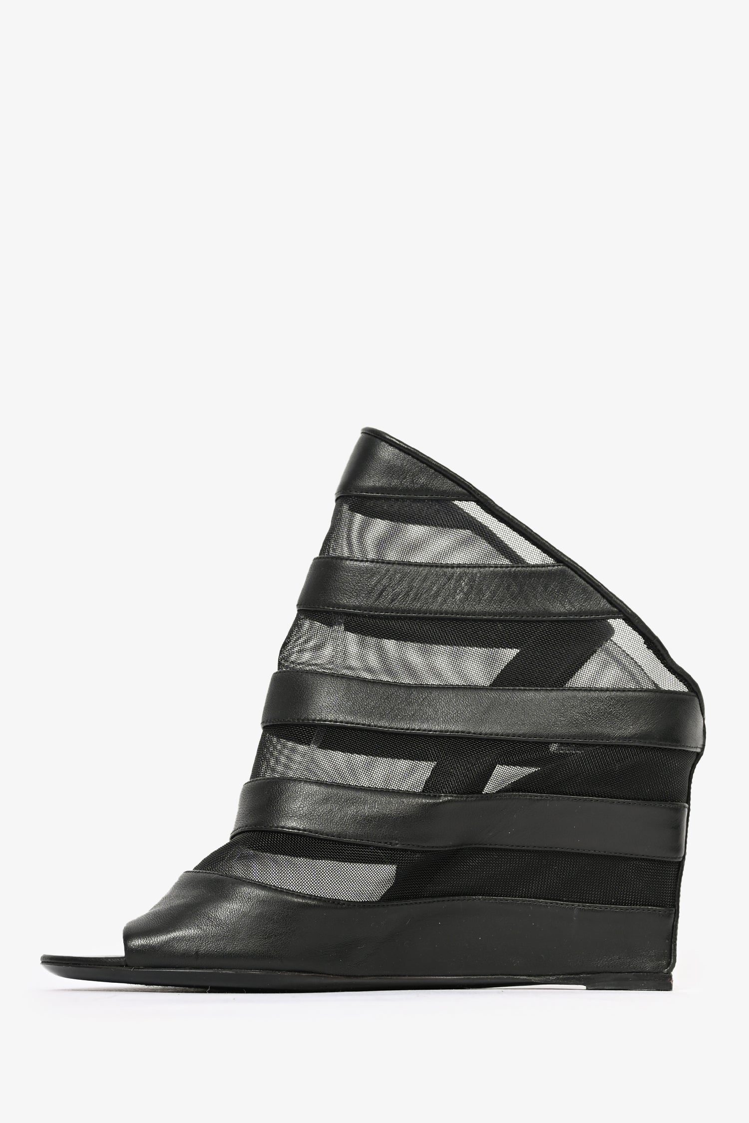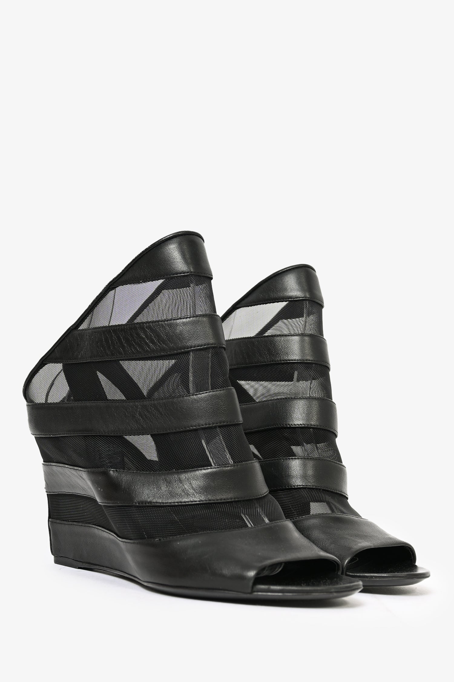 Refresh availabilityBalenciaga Black Leather/Mesh Open-Toe Glove Wedge Heels. Slip-on. Open back.
