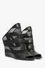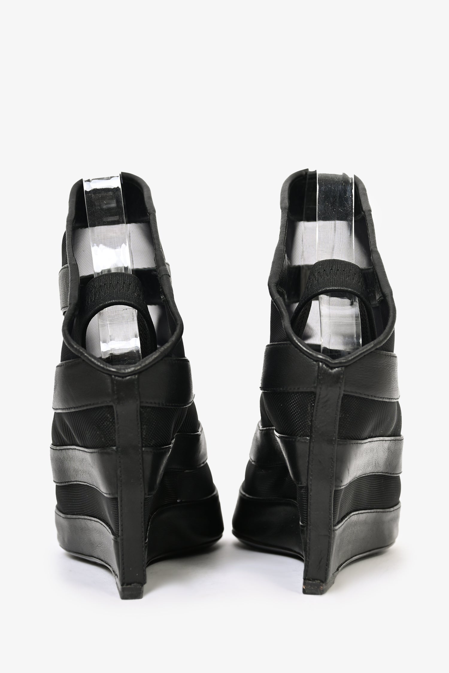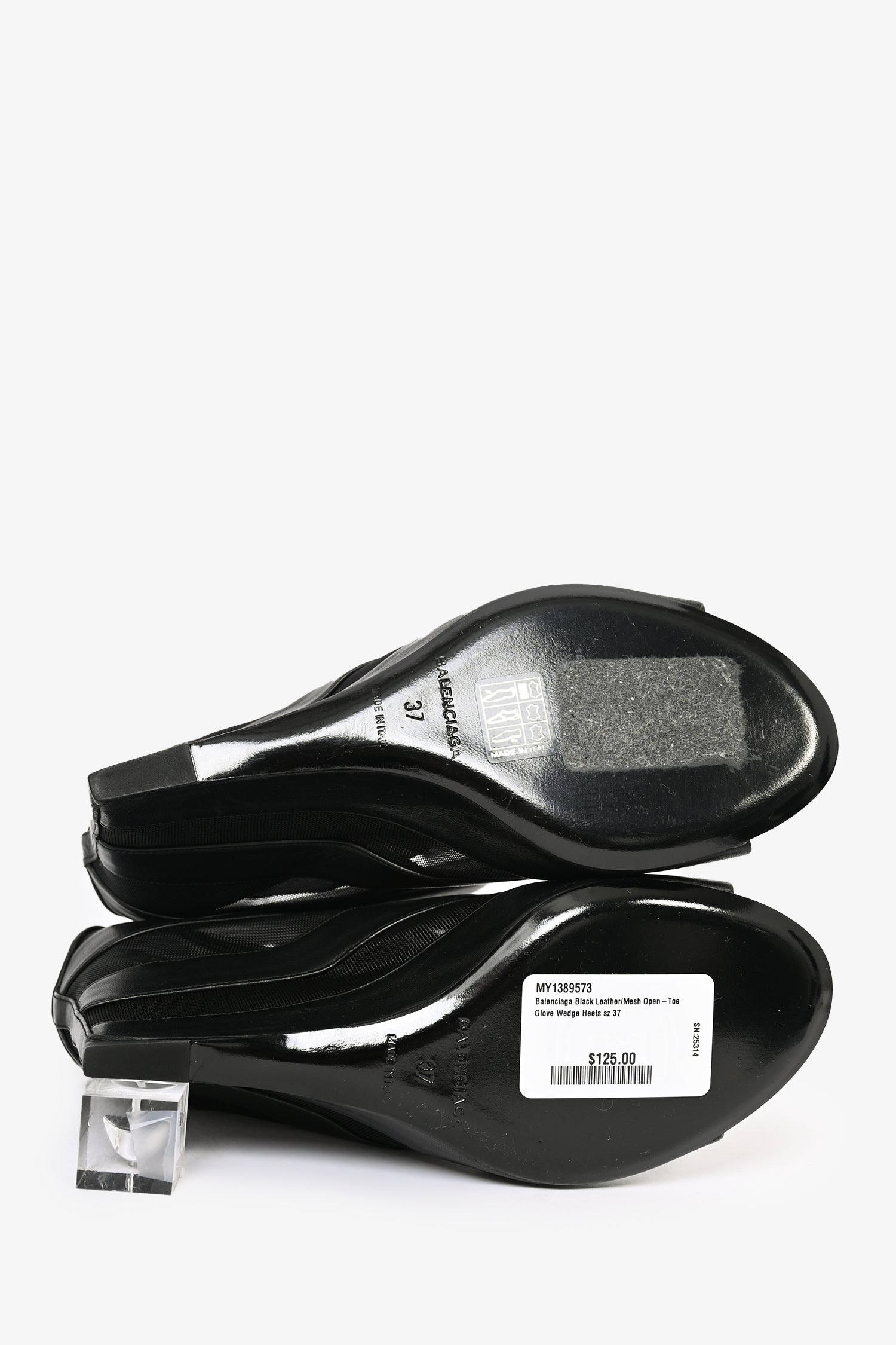 Balenciaga Black Leather/Mesh Open-Toe Glove Wedge Heels Size 37