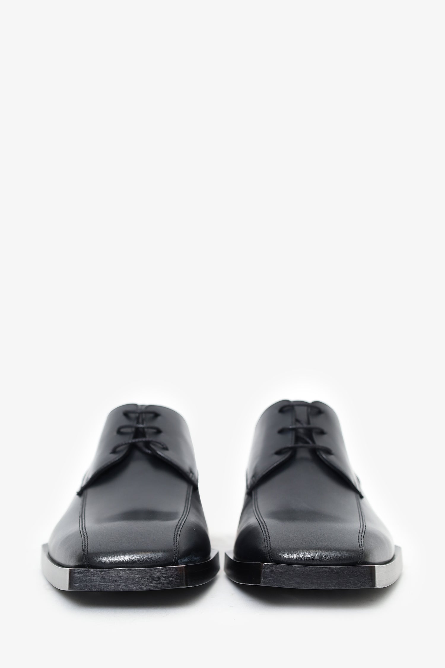 Refresh availabilityBalenciaga Black Leather Square Toe Rim Derby. Slip-on. Square-toe. Front lace-up closure. Tonal stitching.
