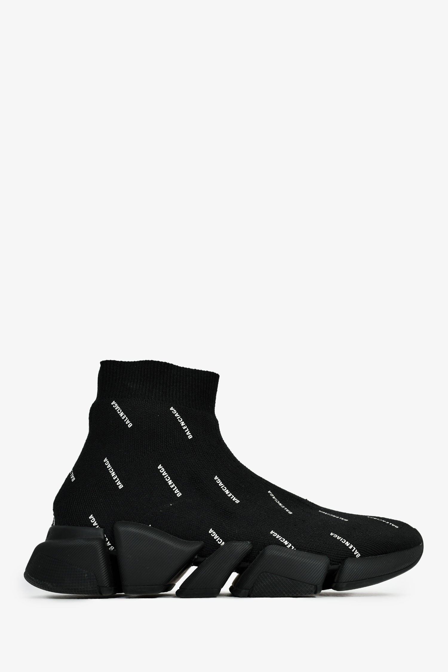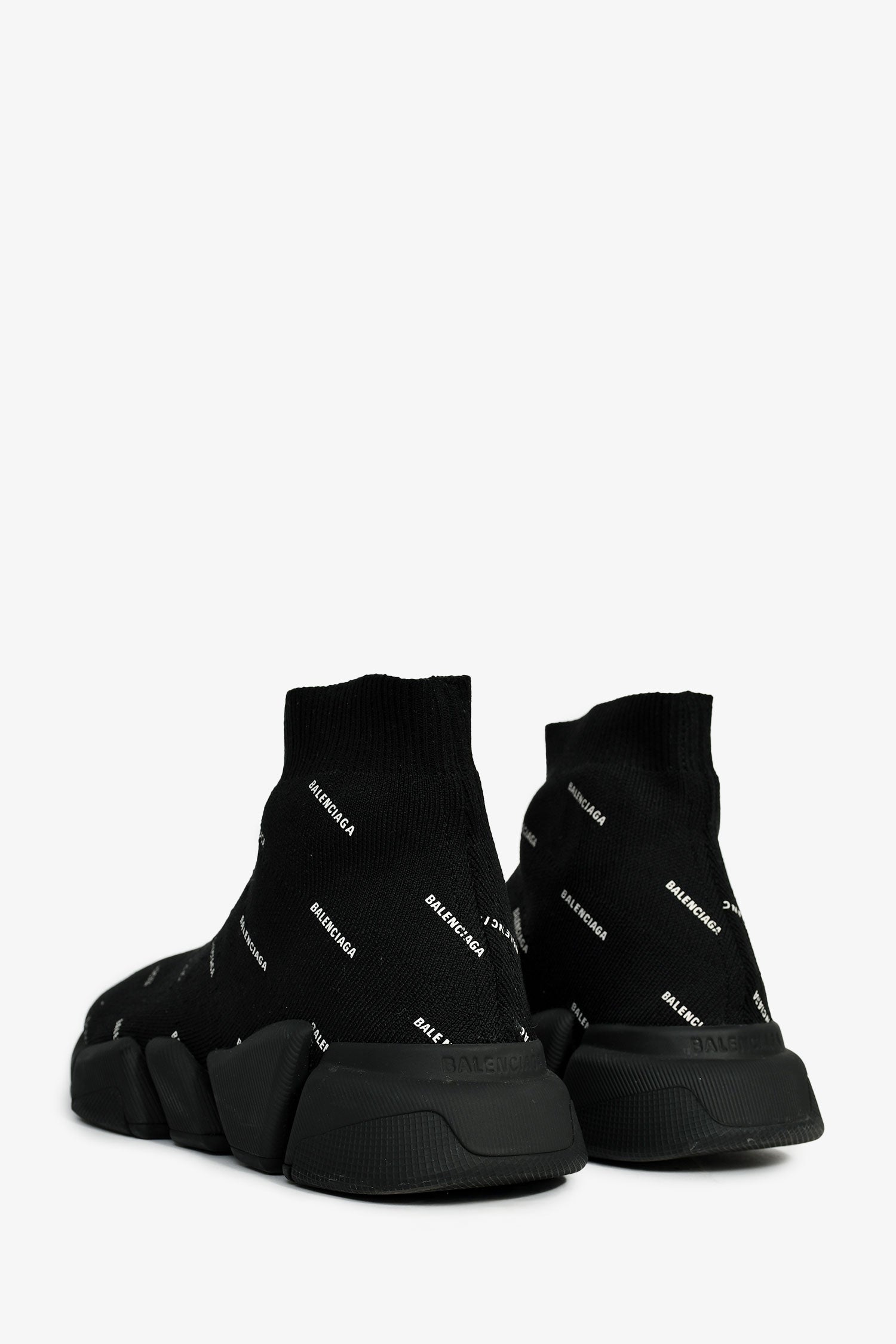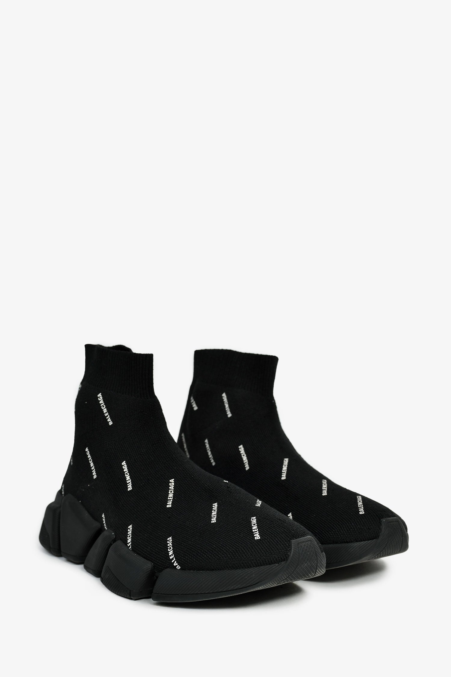 Refresh availabilityBalenciaga Black Logo All Over Speed Sock Sneakers. Slip-on. Rubber soles. Tonal stitching.