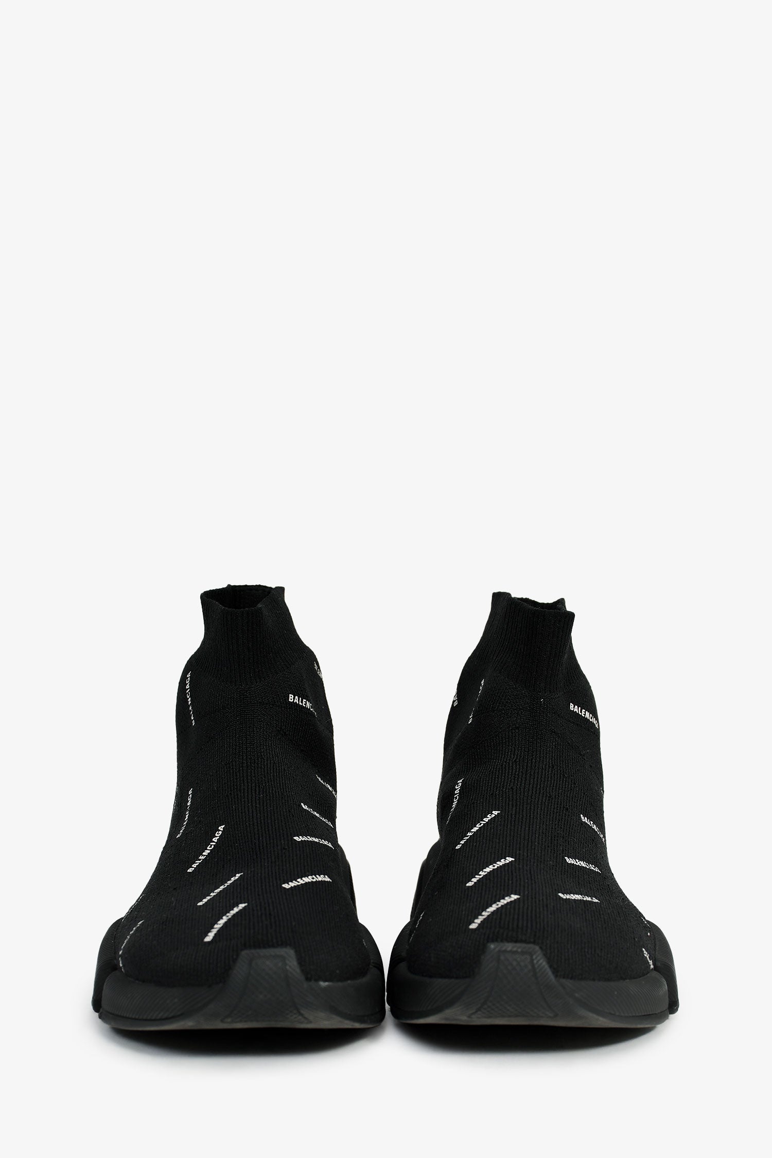 Balenciaga Black Logo All Over Speed Sock Sneakers Size 7