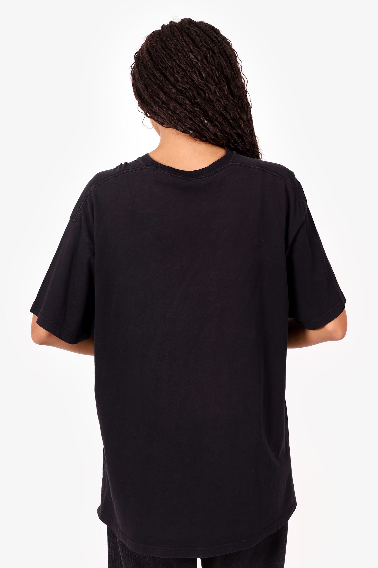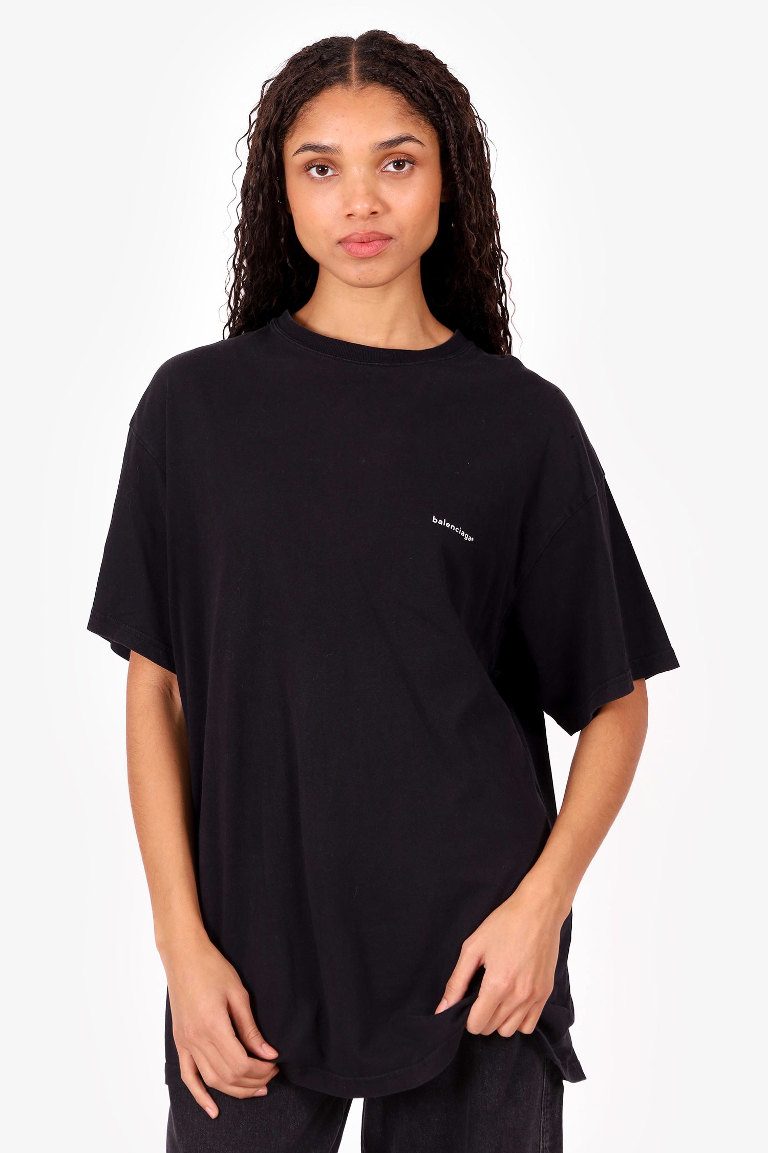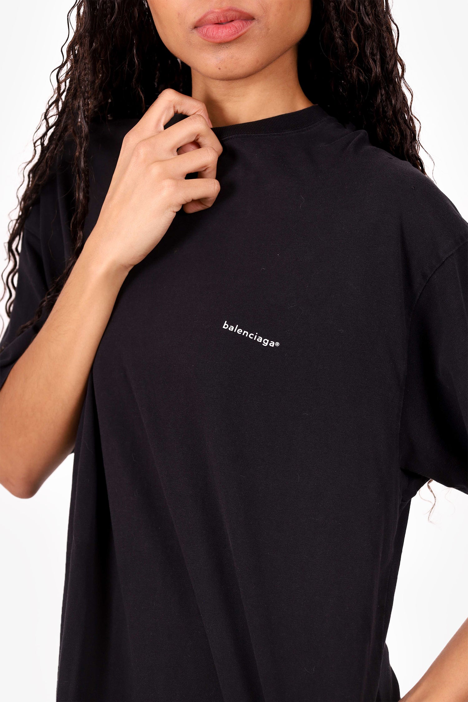 Refresh availabilityBalenciaga Black Logo Print T-shirt. Pull-on. Round-neckline. Tonal stitching.