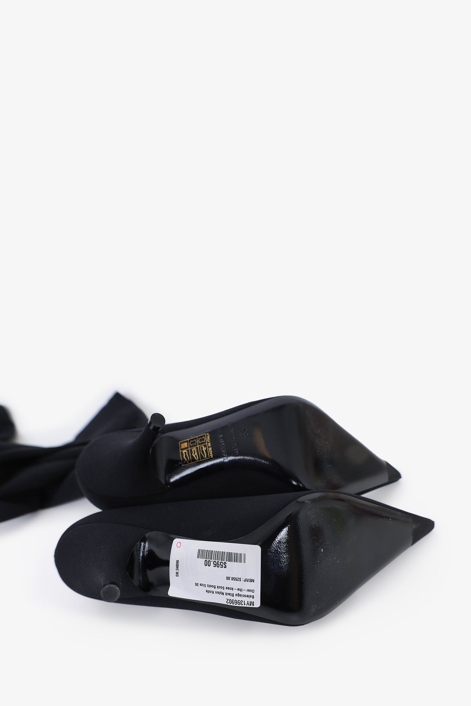 Refresh availabilityBalenciaga Black Nylon Knife Over-the-knee Sock Boots. Pointed toe. Tonal stitching.