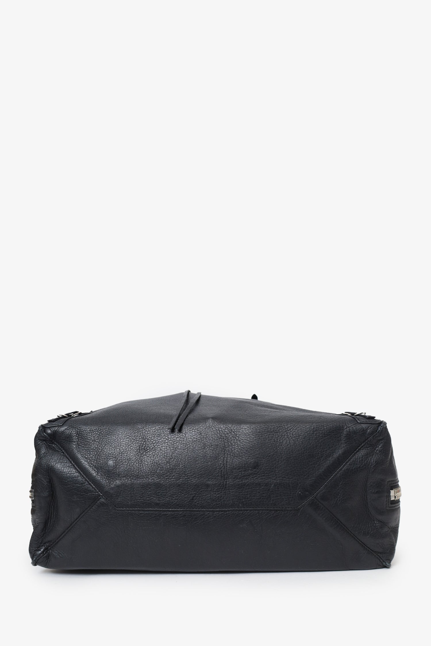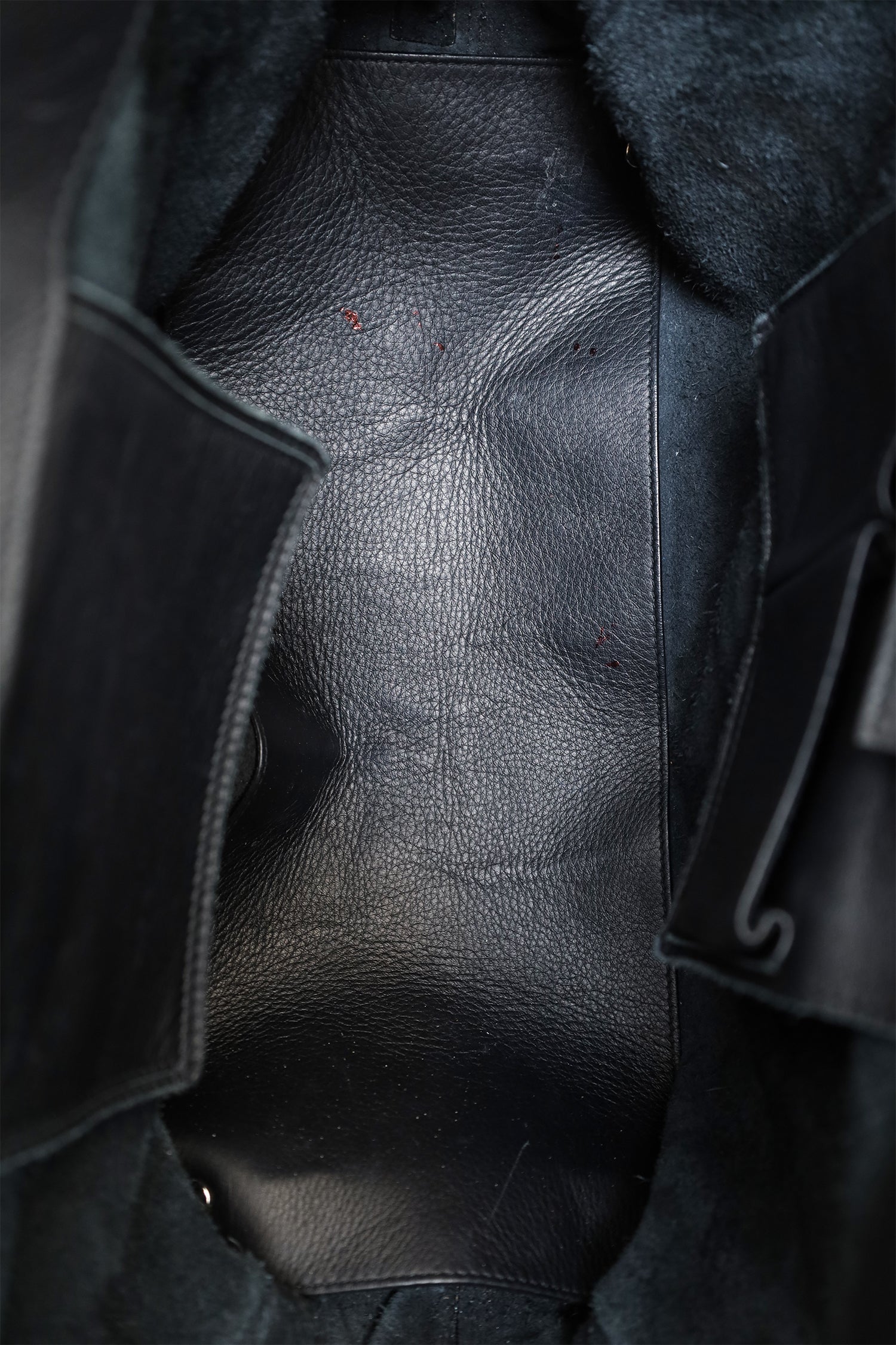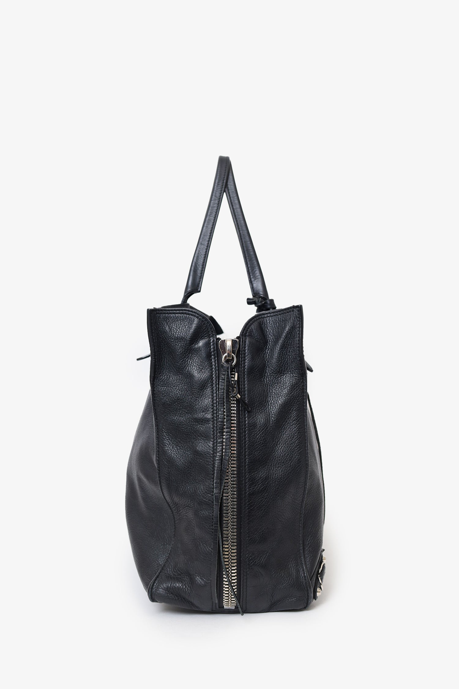 Refresh availabilityBalenciaga Black 'Papier' Medium Tote Bag. Top open. Adjustable twin top handle with buckle closure. Single exterior zip pocket. Exterior expandable side zip closure. Lined interior. 2 rear interior slip pockets. Removable bag tag with mirror. Silver-tone hardware. Tonal stitching.