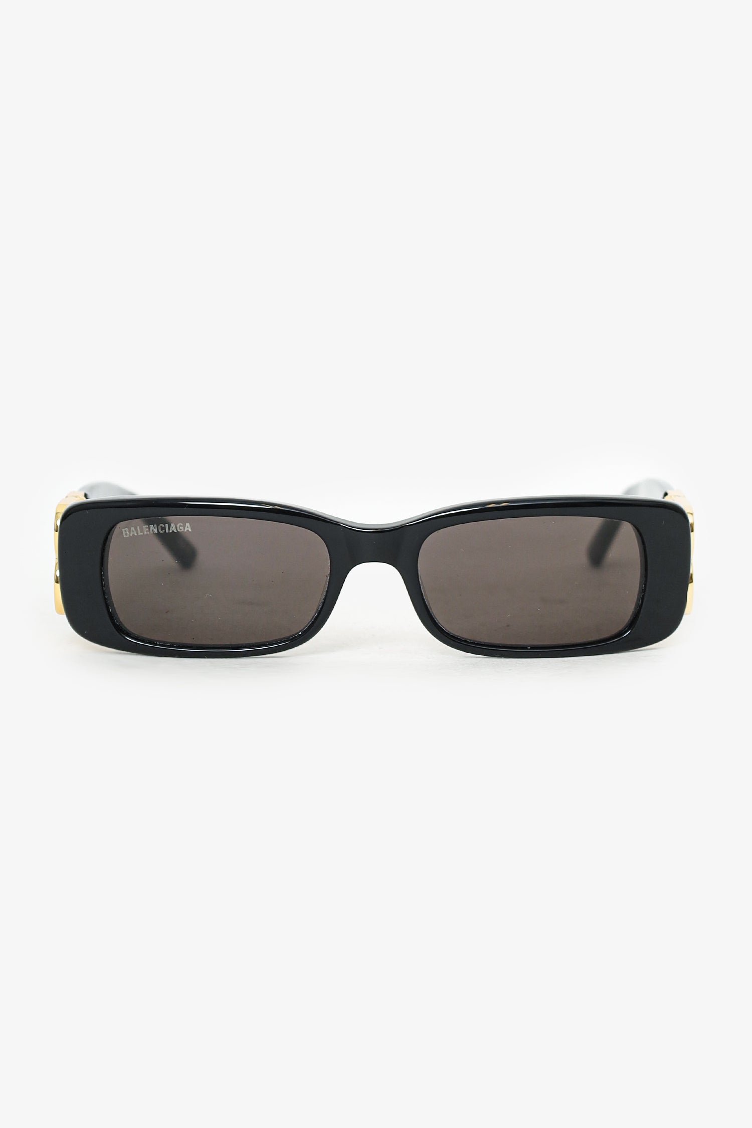 Refresh availabilityBalenciaga Black Rectangular Frame BB Handle Sunglasses. Built-in nose pads. Gold-tone hardware.