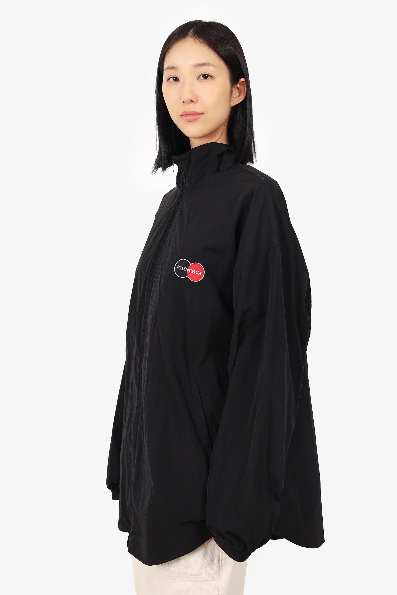 Balenciaga Black/Red Nylon Logo Windbreaker Size 46 Mens