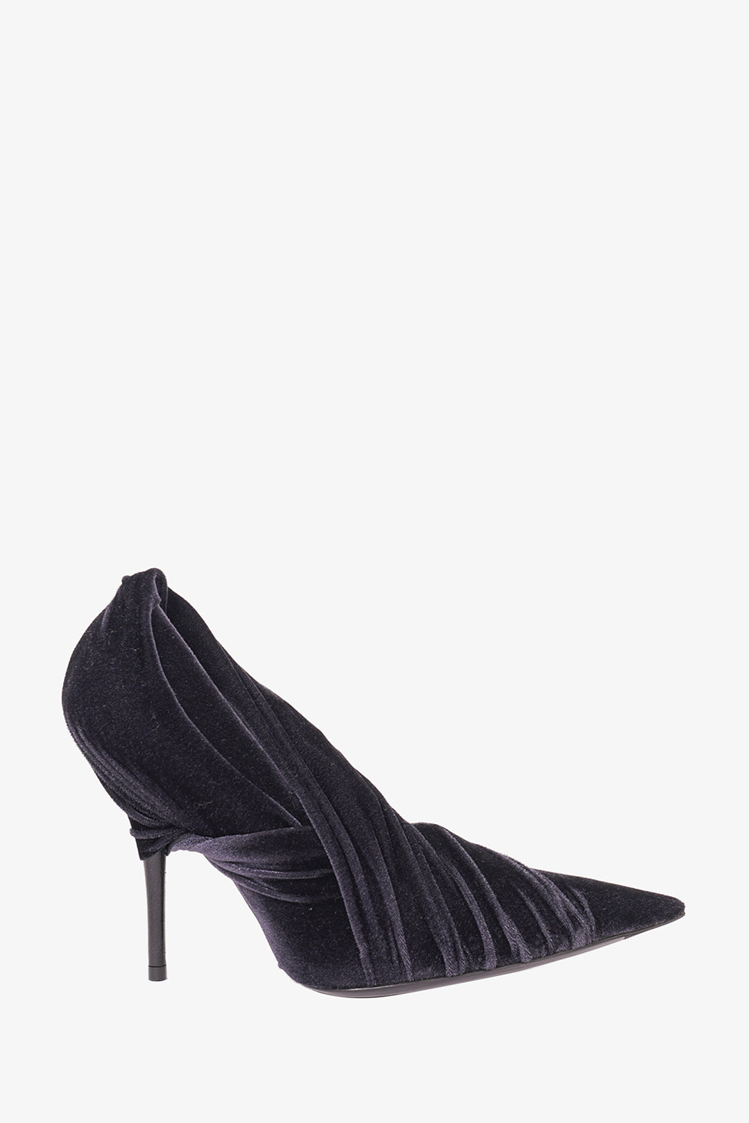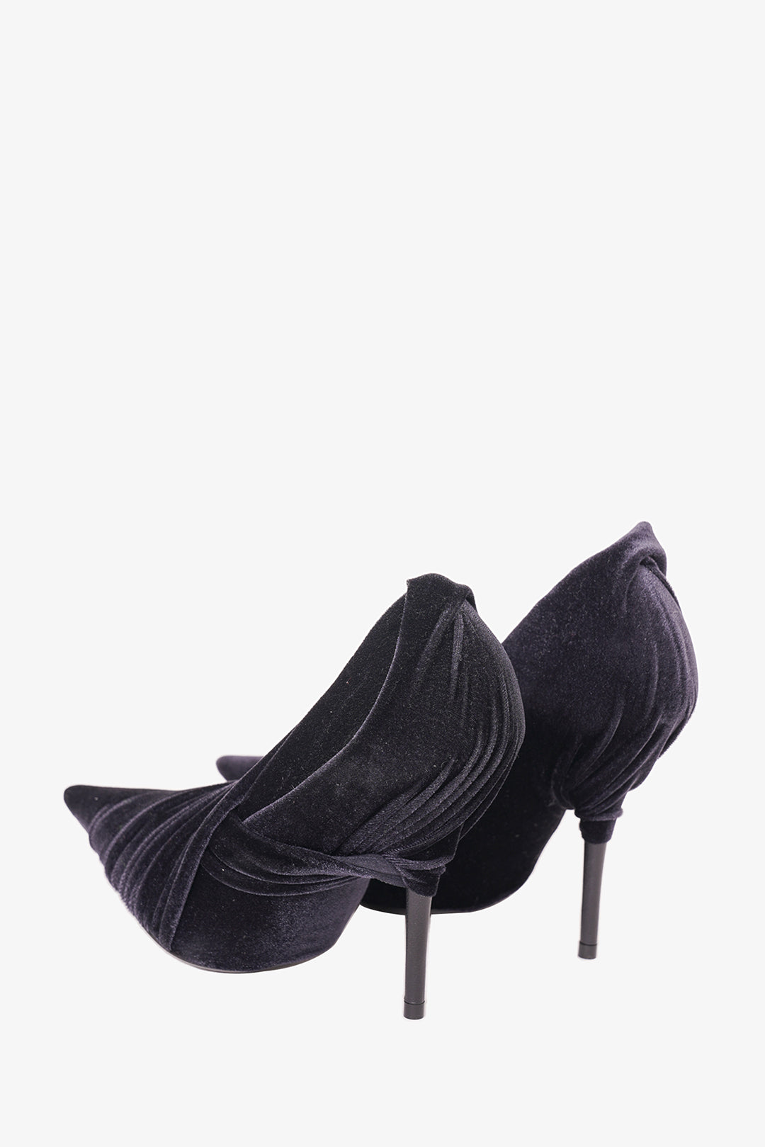Refresh availabilityBalenciaga Black Velvet Drape Knife Pumps. Pointed toe. Stiletto heel. Tonal stitching.