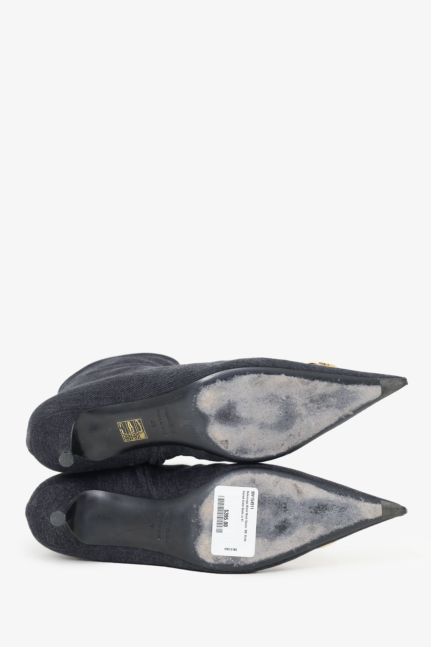 Balenciaga Black Wash Denim 'BB' Knife Heeled Ankle Boots Size 41