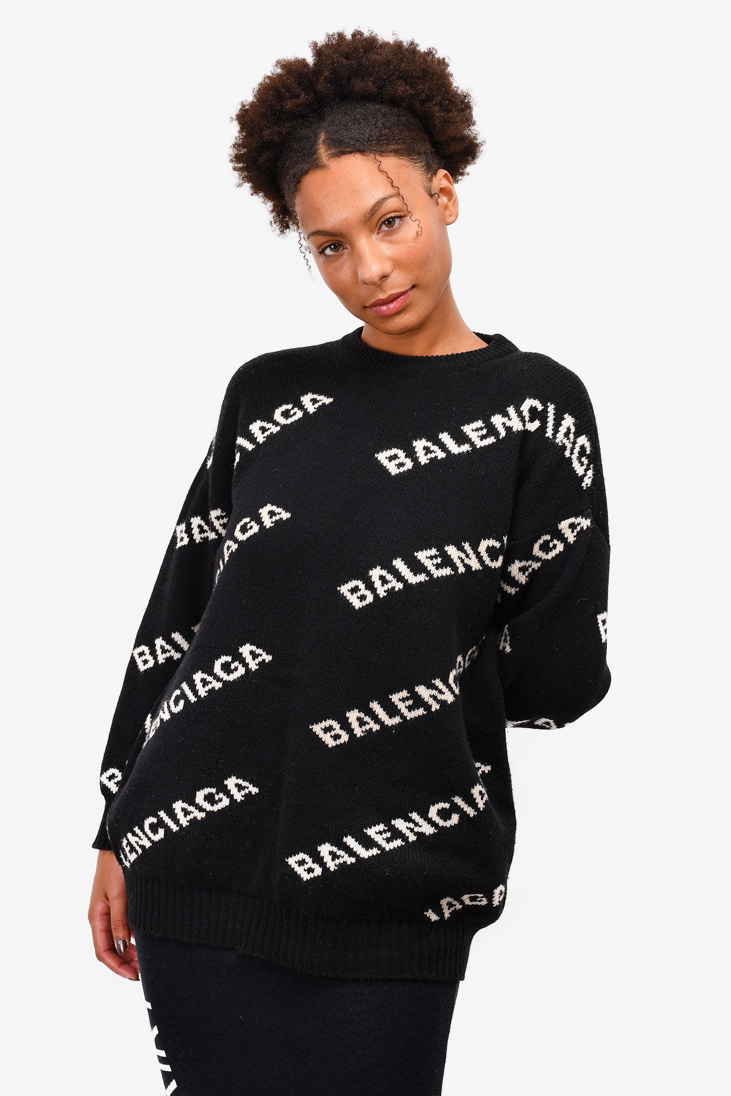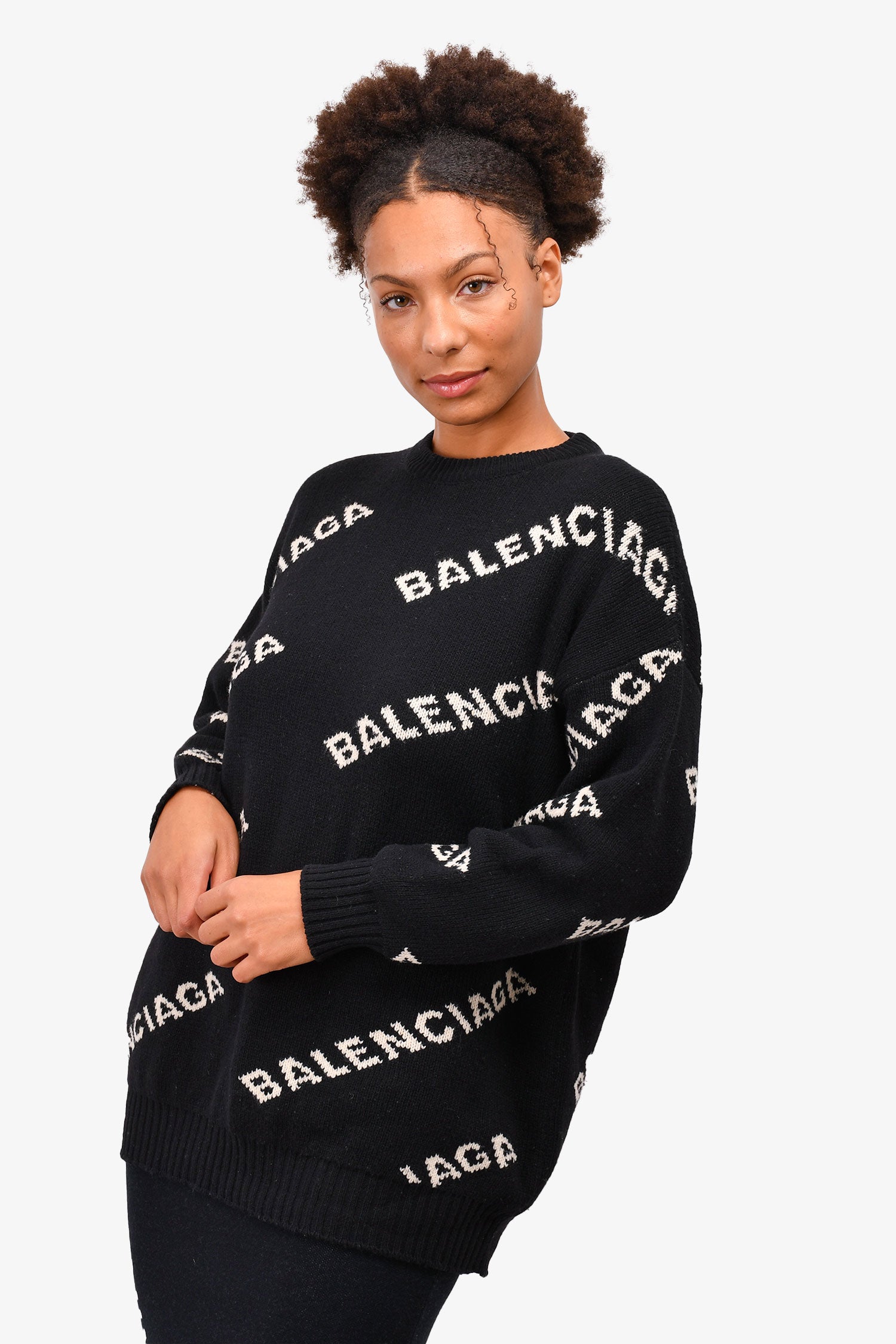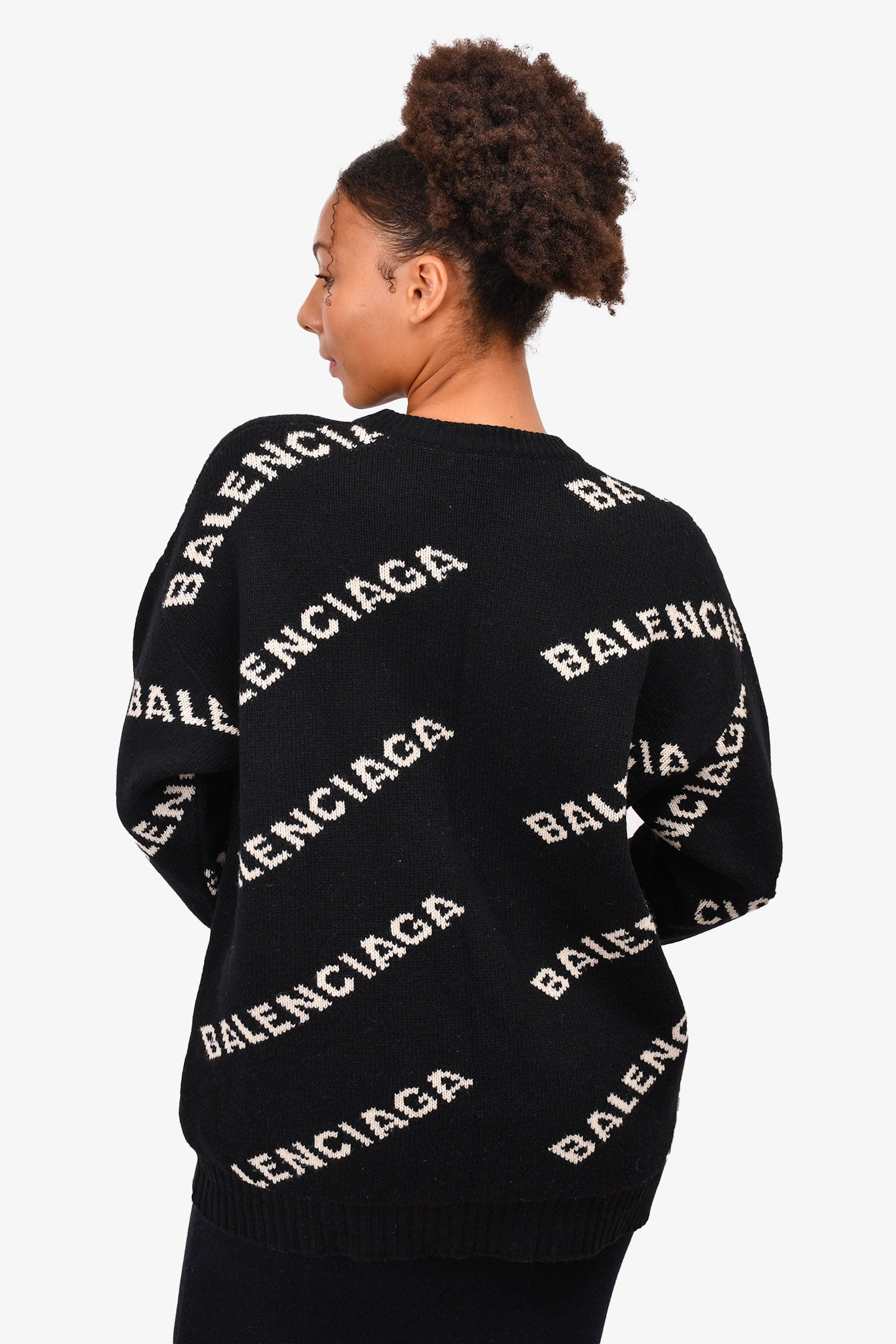 Balenciaga Black/White Logo All Over Sweater Size XS