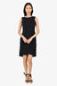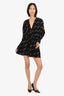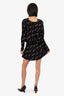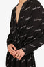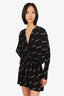 Balenciaga Black/White Logo V-Neck Long Sleeve Mini Dress Size 36