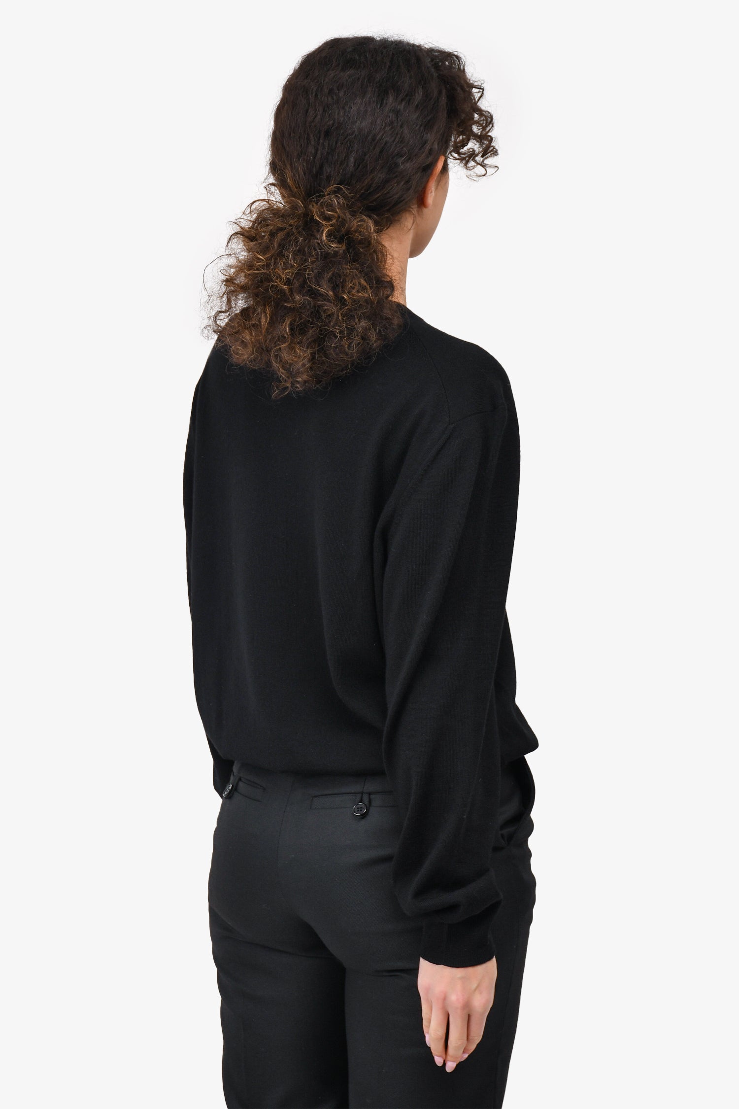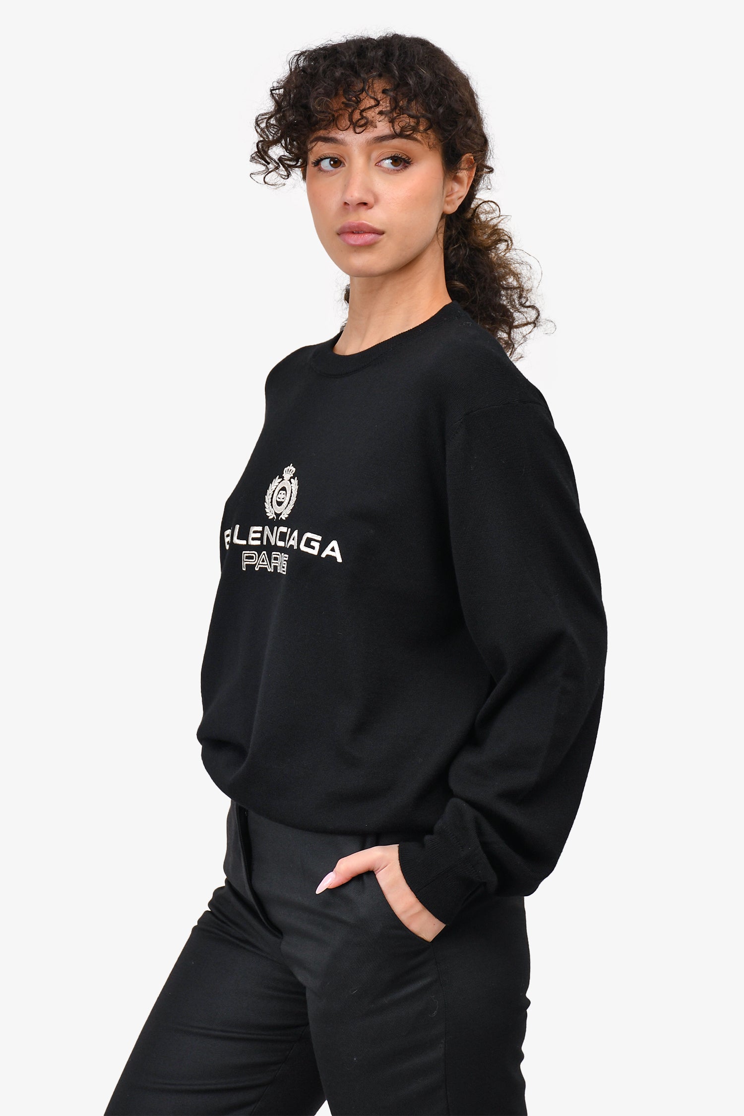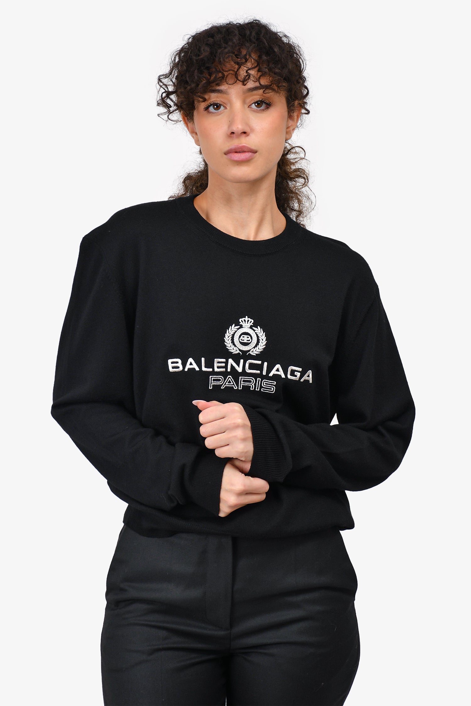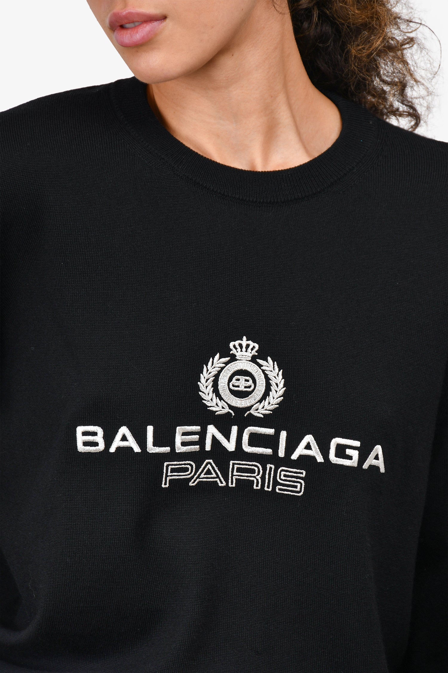 Refresh availabilityBalenciaga Black Wool Logo Sweater. Ribbed collar, cuffs, and waistband. Tonal stitiching.