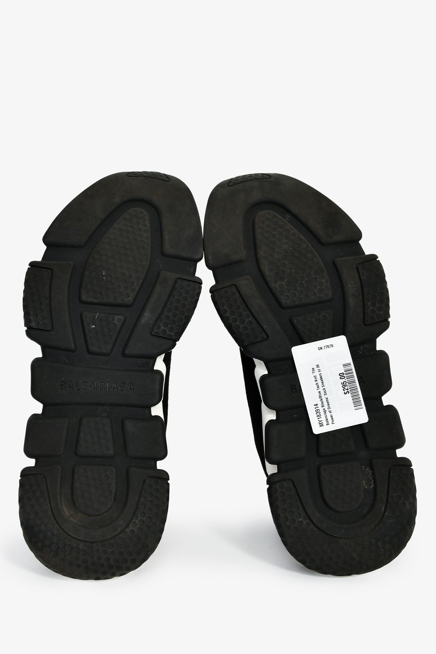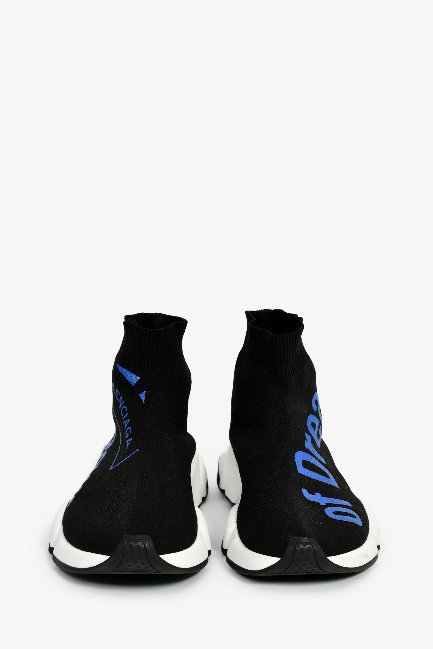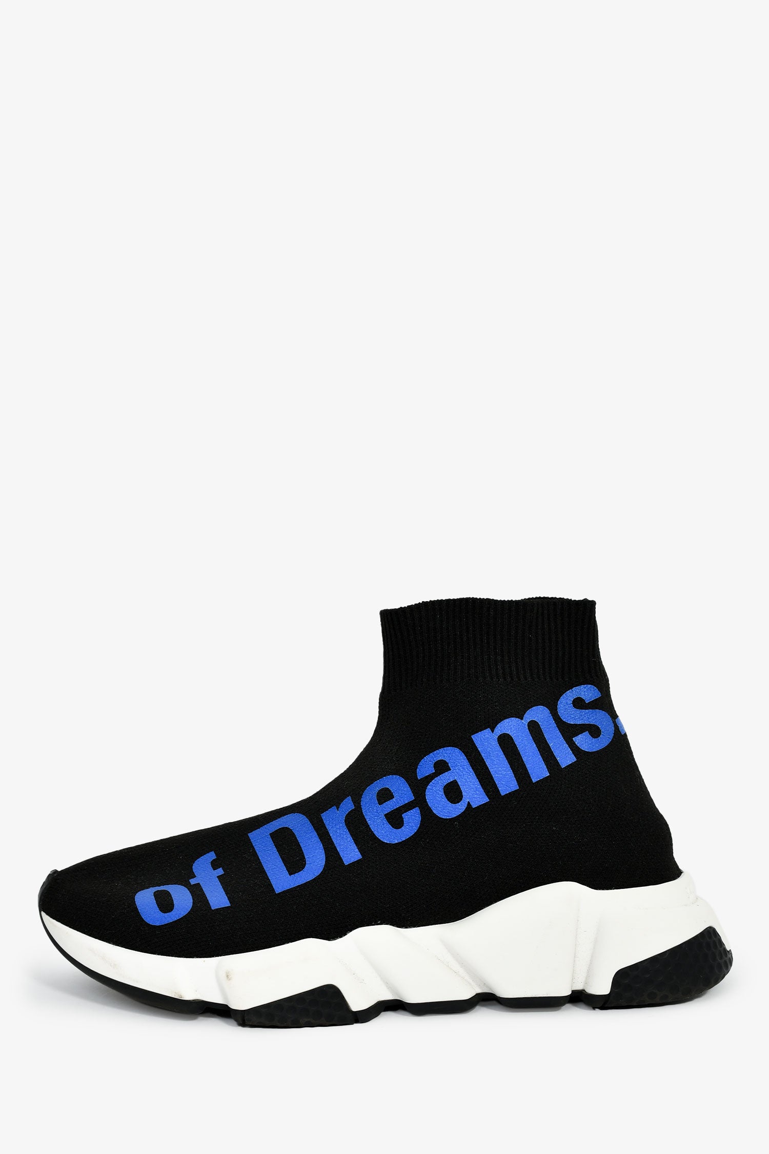 Refresh availabilityBalenciaga Black/Blue Tech Knit 'The Power of Dreams' Sock Sneakers. Pull-on. Round toe. Rubber soles. Tonal stitching.