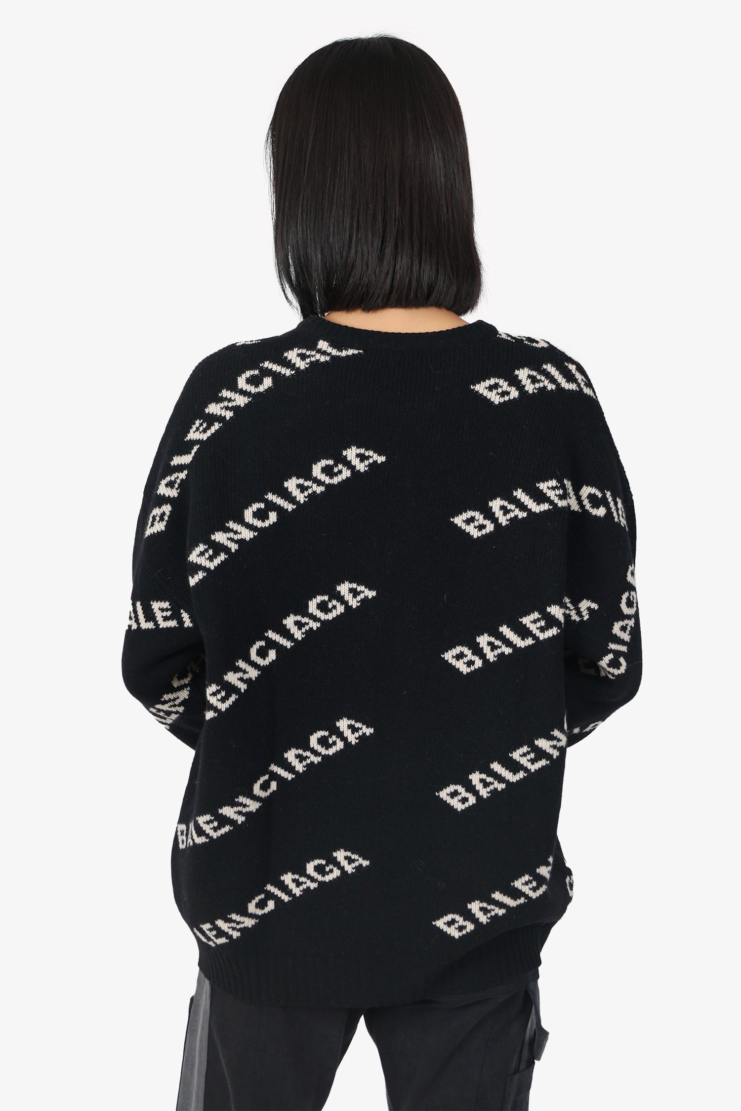 Balenciaga Black/White Logo All Over Sweater Size 38