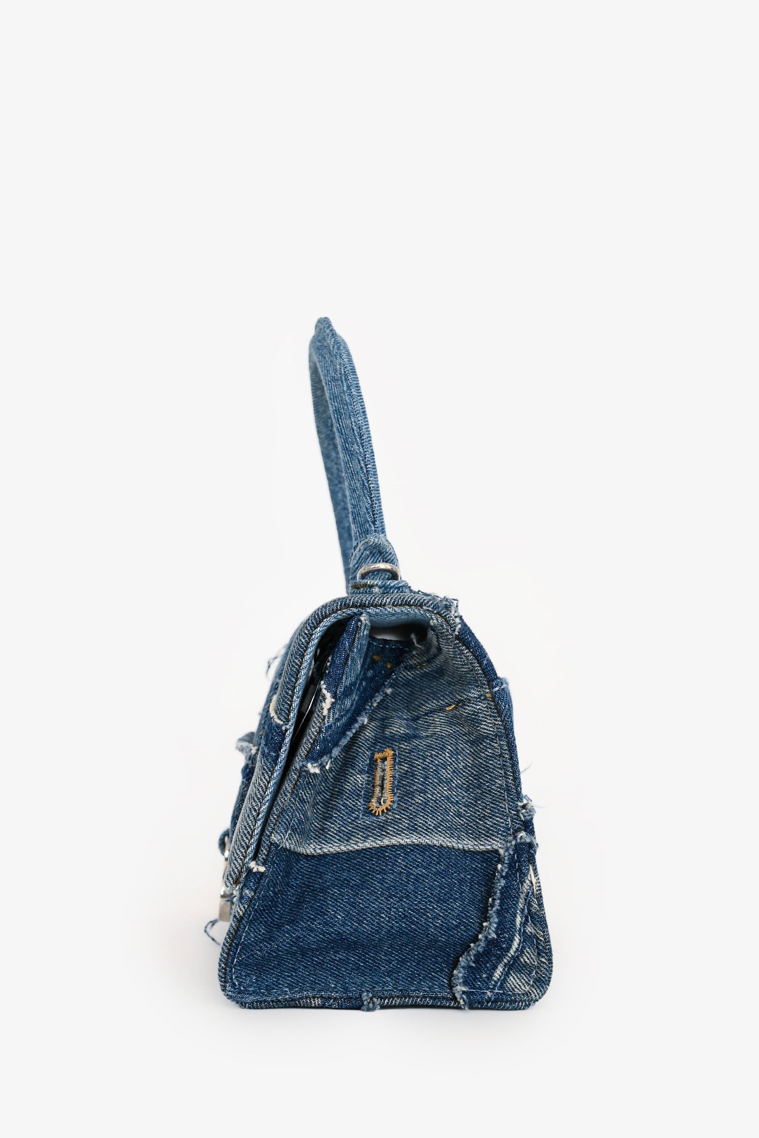Balenciaga Blue Denim Patched Logo Embroidered Hourglass Bag with Strap