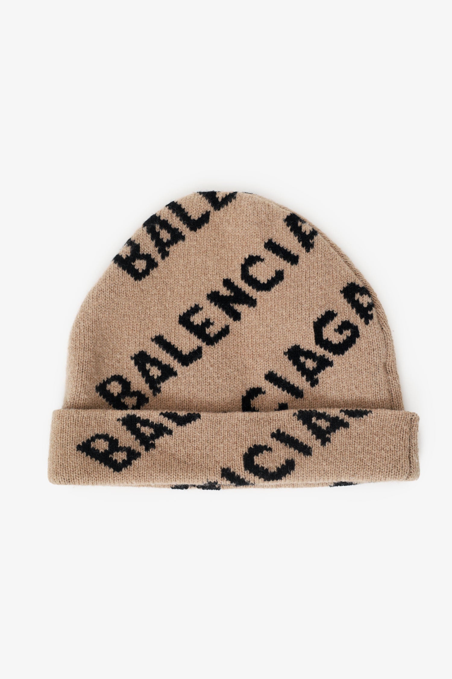 Refresh availabilityBalenciaga Brown/Black Knit Logo Hat. Tonal stitching.