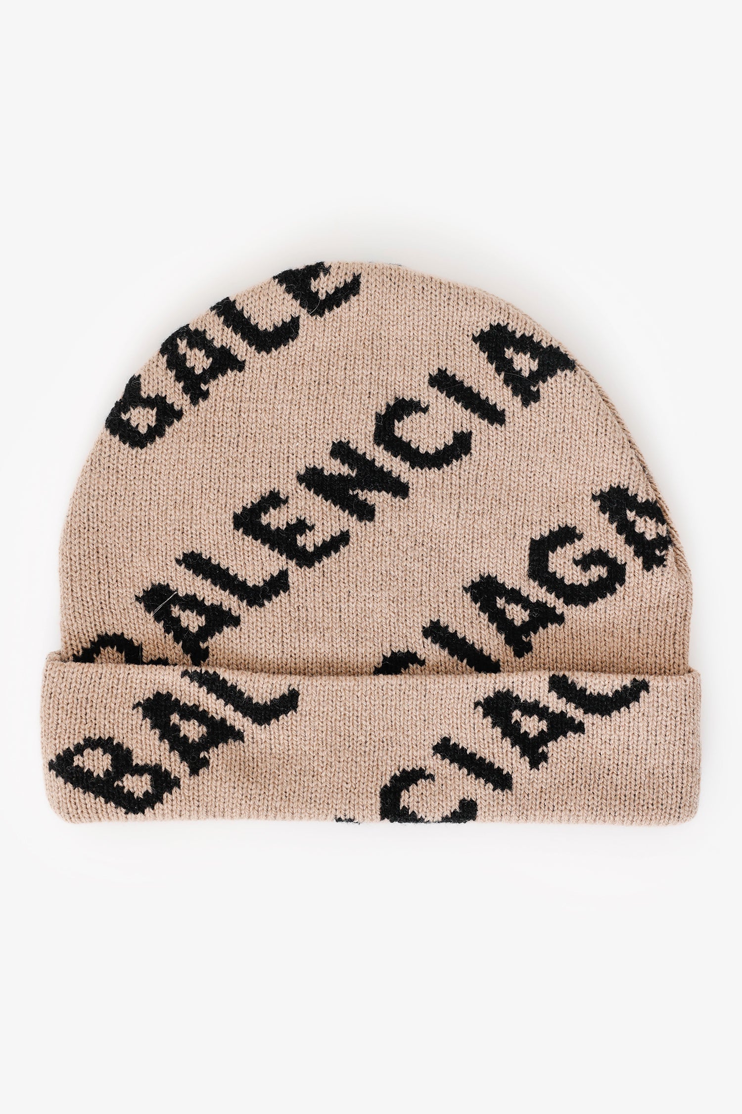 Refresh availabilityBalenciaga Brown/Black Wool Allover Logo Knit Beanie. Tonal stitching.