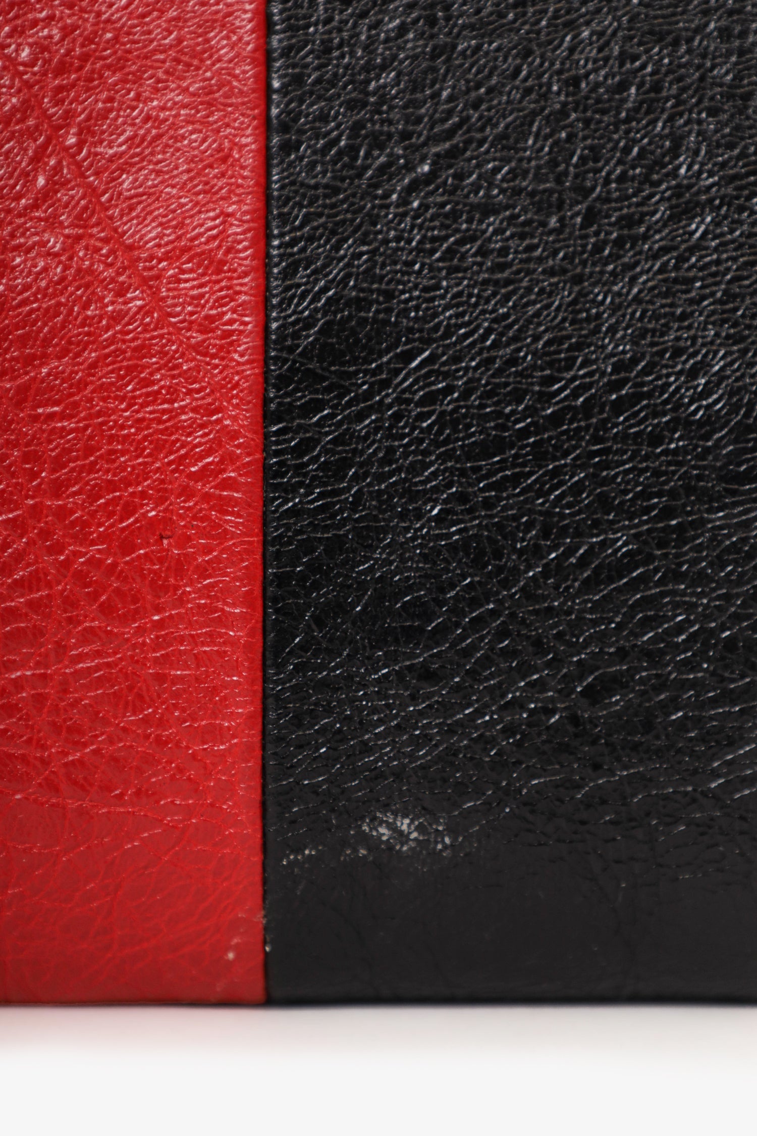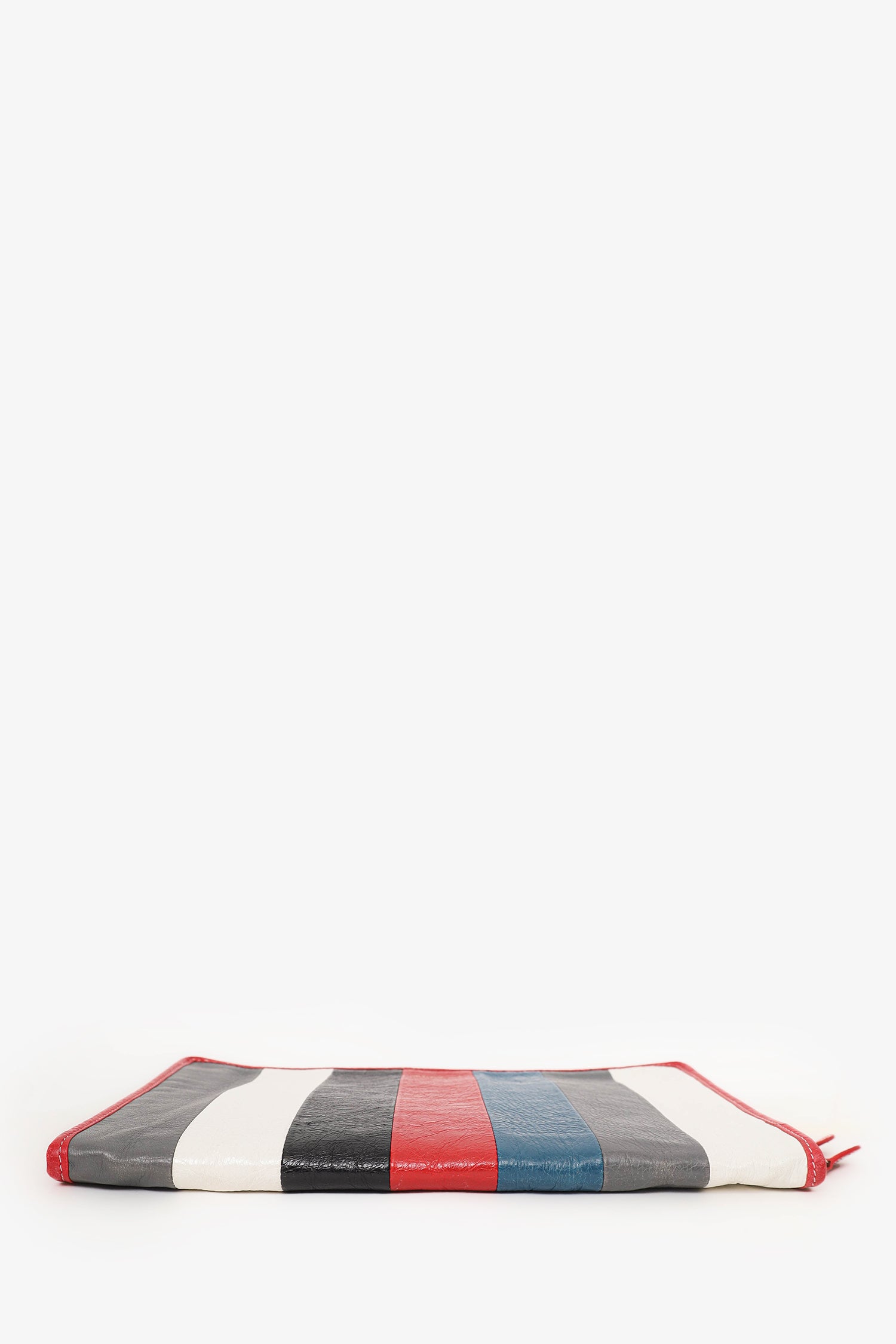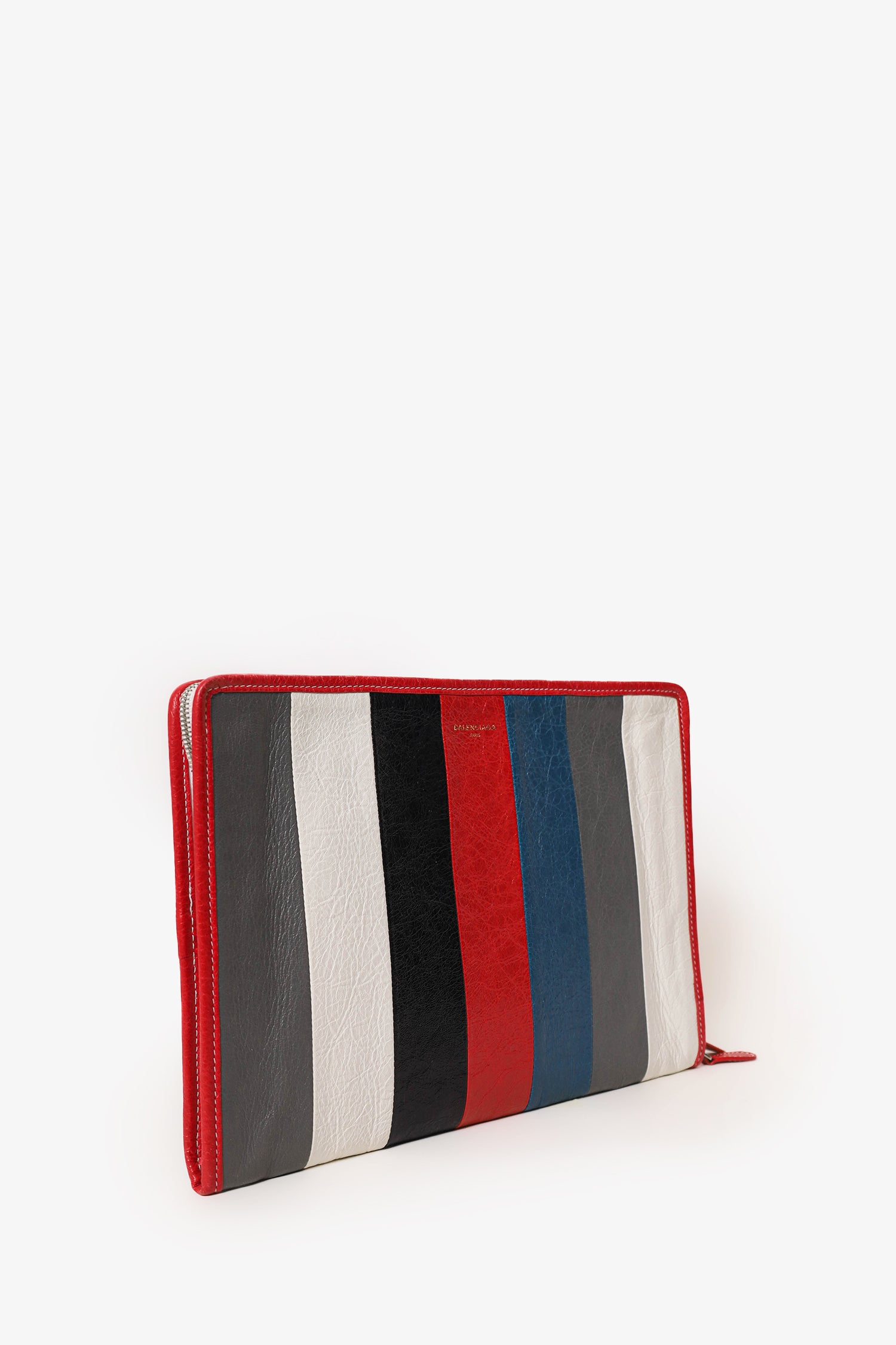 Refresh availabilityBalenciaga Crinkle Leather Striped Laptop Case. Top two-way zip closure. Lined interior. Single interior. Single interior slip pocket. Silver-tone hardware. Contrast stitching.